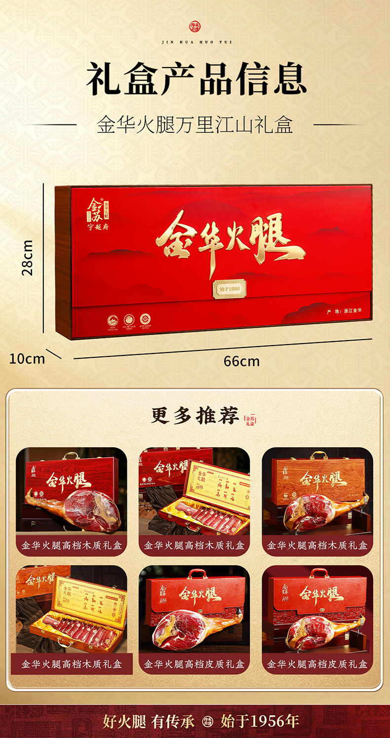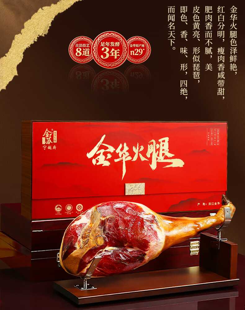 金苏正宗金华火腿整腿年货礼盒 浙江特产 春节礼品送礼企业团购 2.56斤整腿切块礼盒