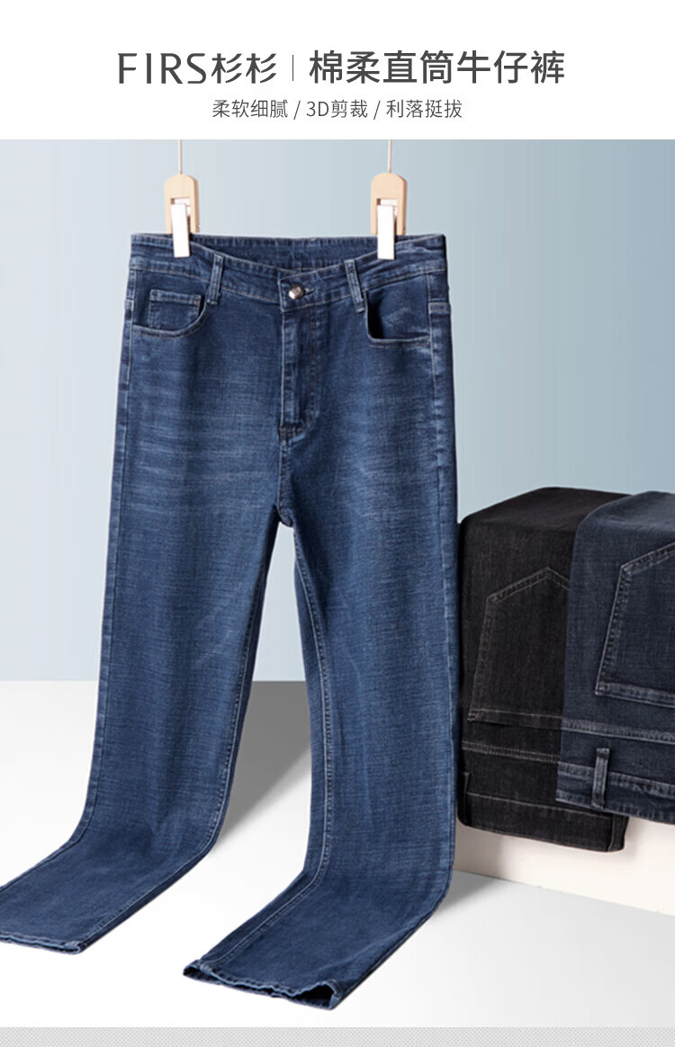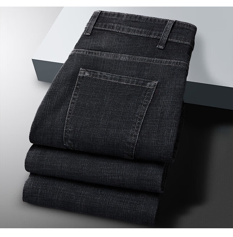 杉杉(FIRS)【凉爽透气】牛仔裤男夏垂顺弹力直筒裤亲肤柔软棉质抗皱修身长裤 黑色 29 (170/74A)