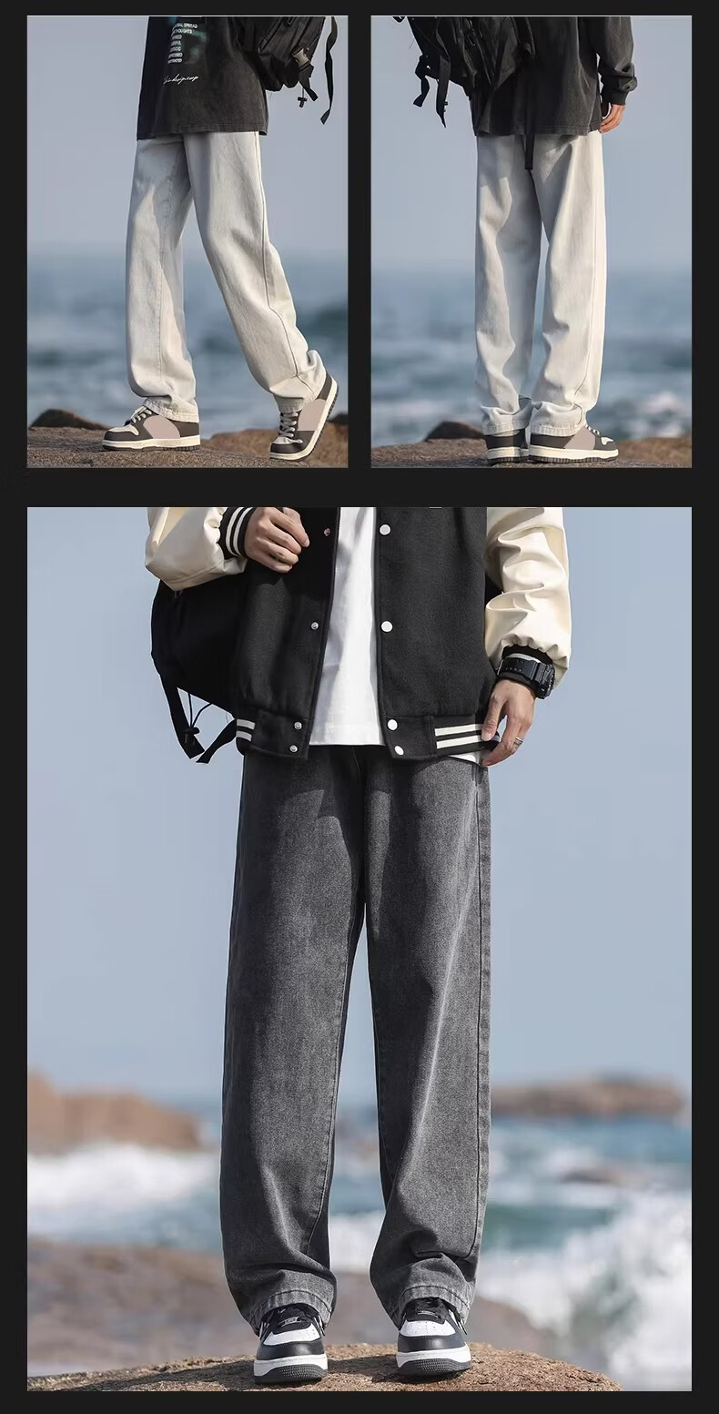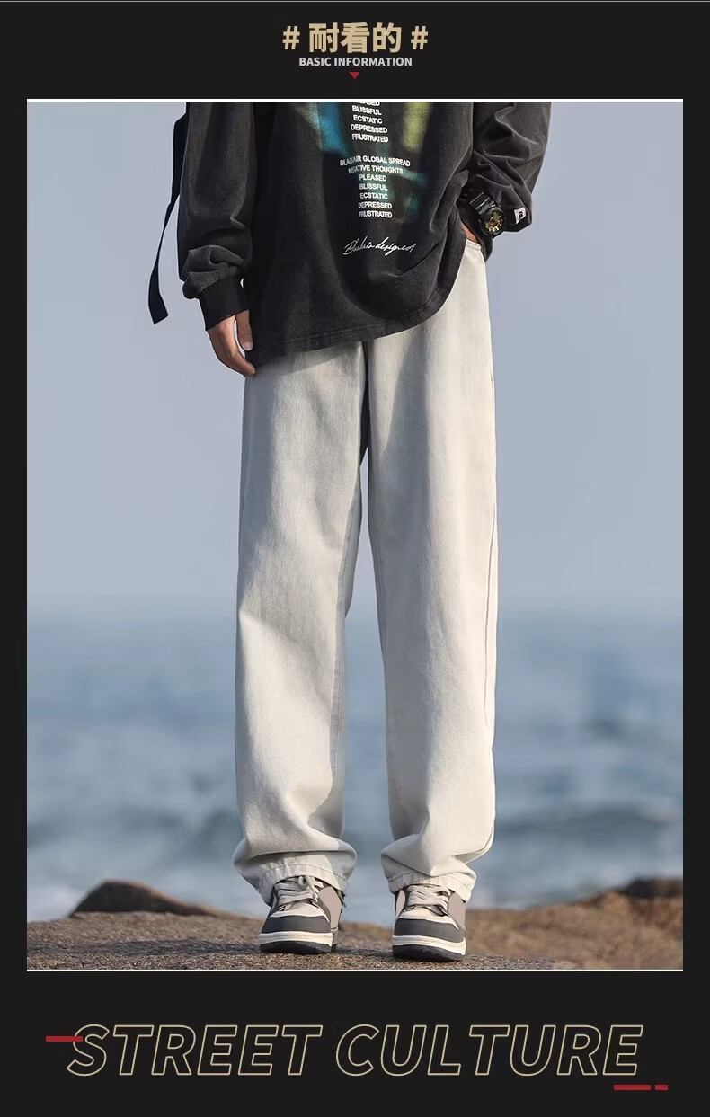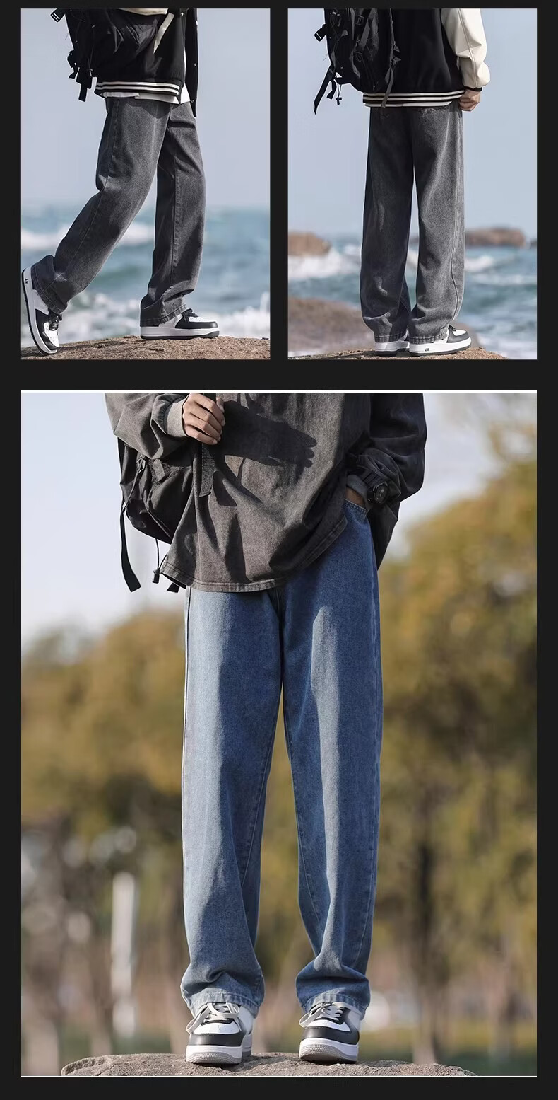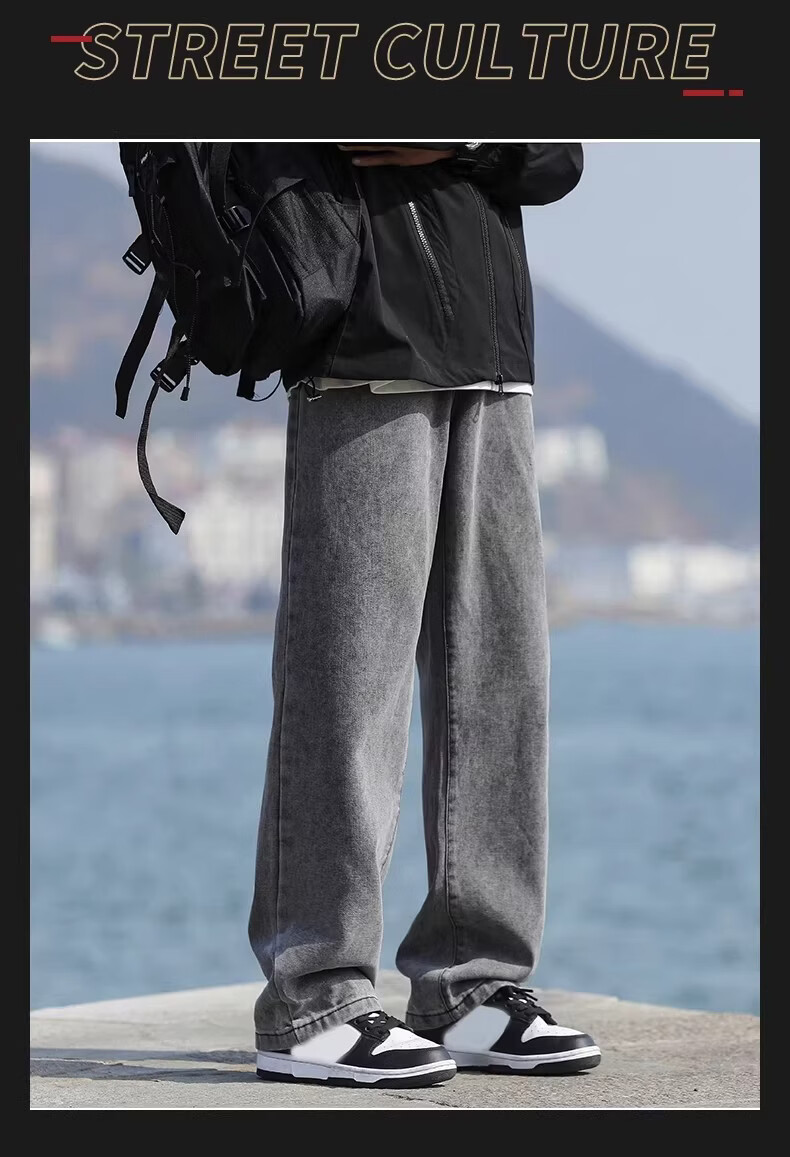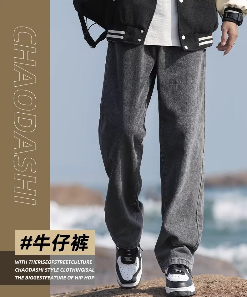 真维斯(Jeanswest)港风加绒牛仔裤男秋冬新款宽松直筒裤加厚阔腿休闲长裤 烟灰色 【宽松直筒】 S 建议(90-105)