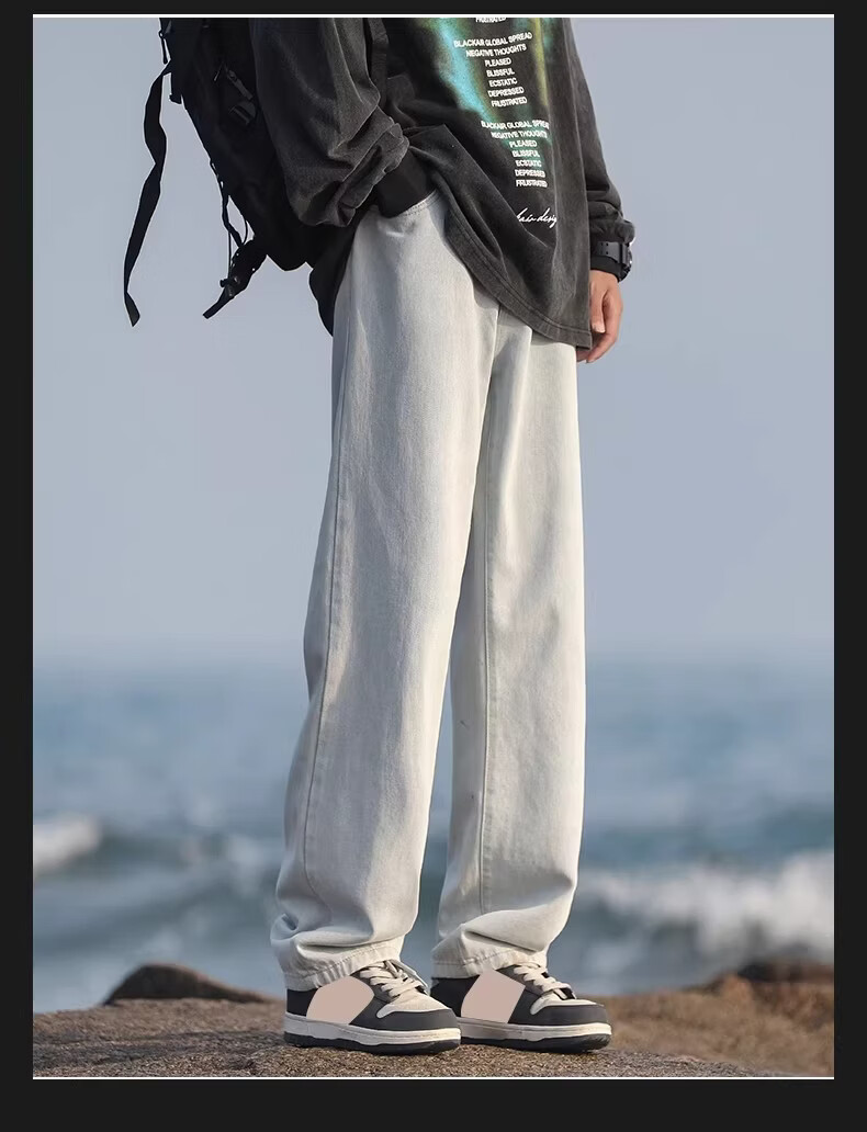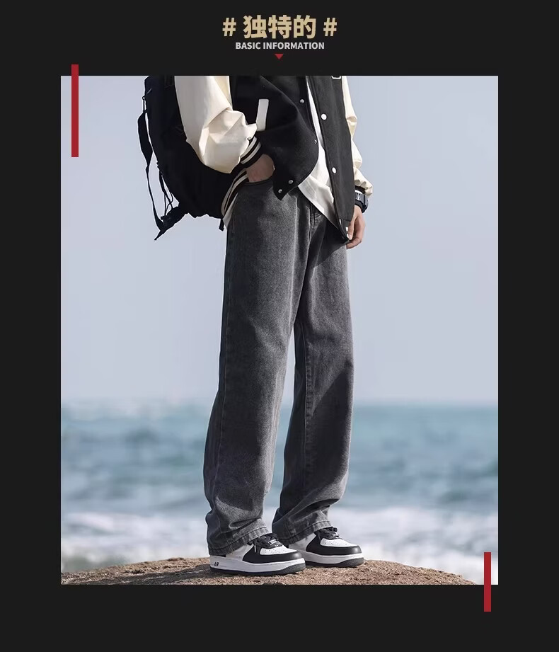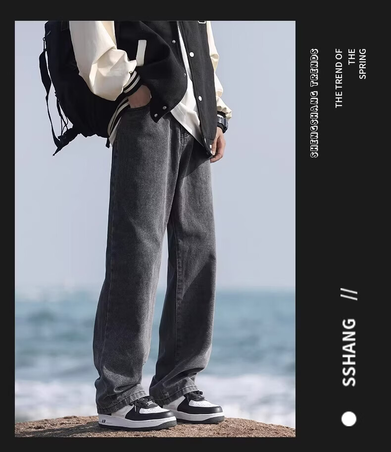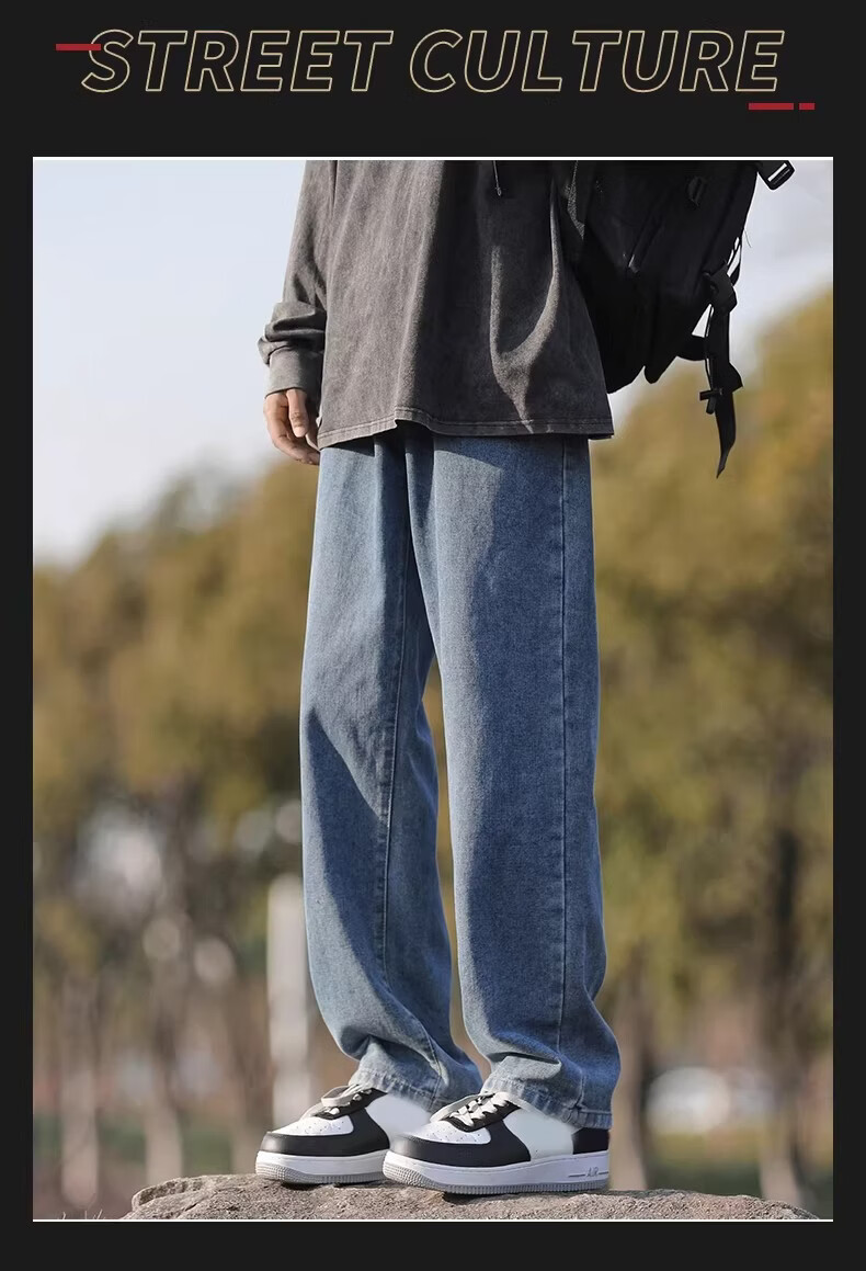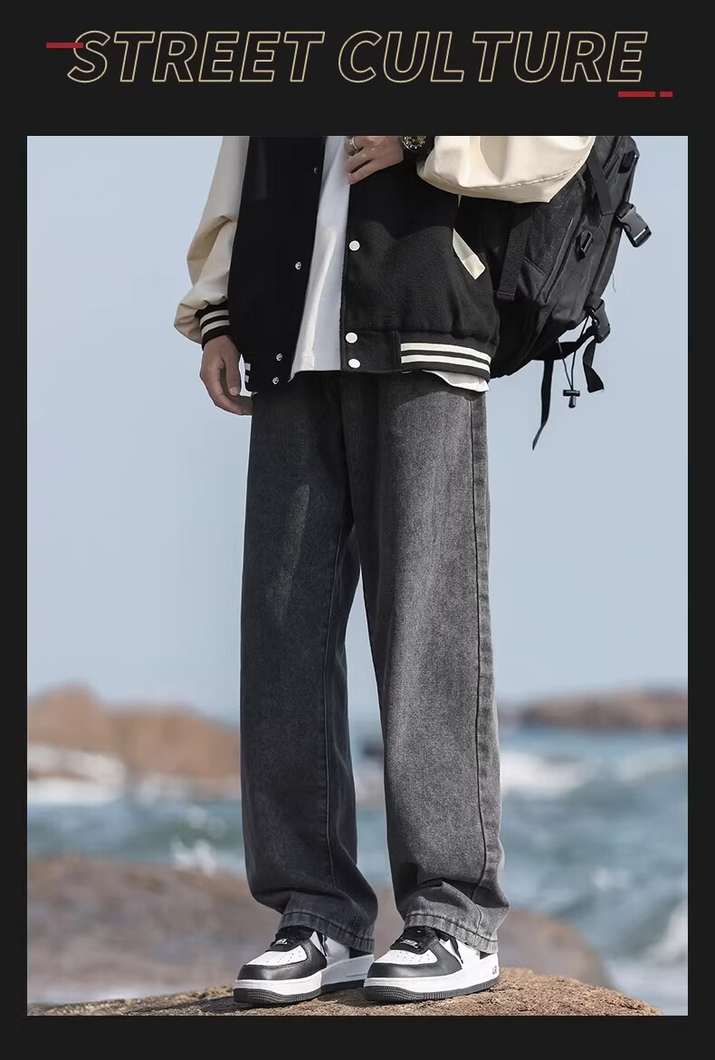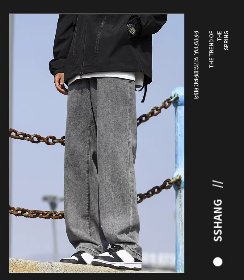 真维斯(Jeanswest)港风加绒牛仔裤男秋冬新款宽松直筒裤加厚阔腿休闲长裤 烟灰色 【宽松直筒】 S 建议(90-105)