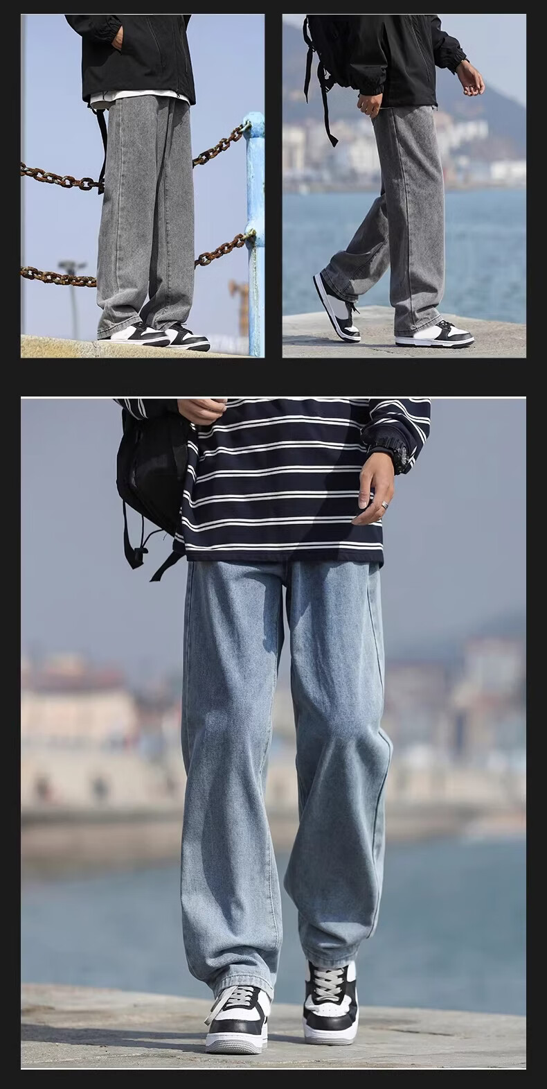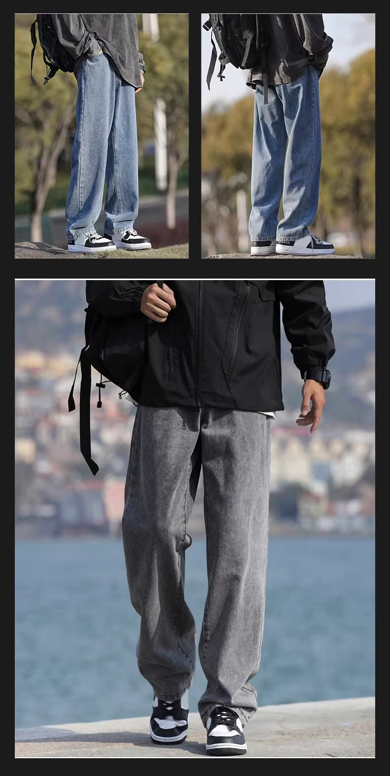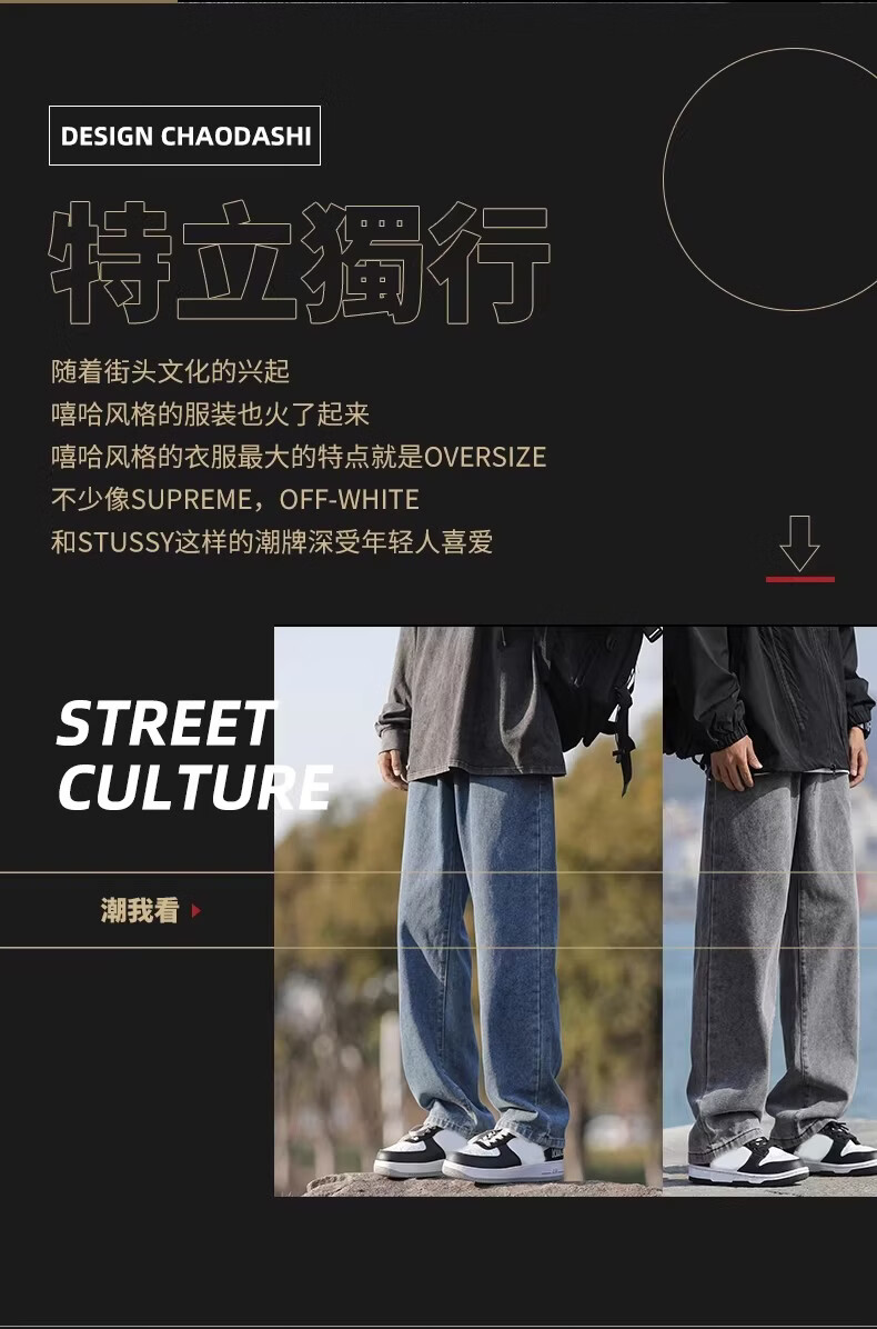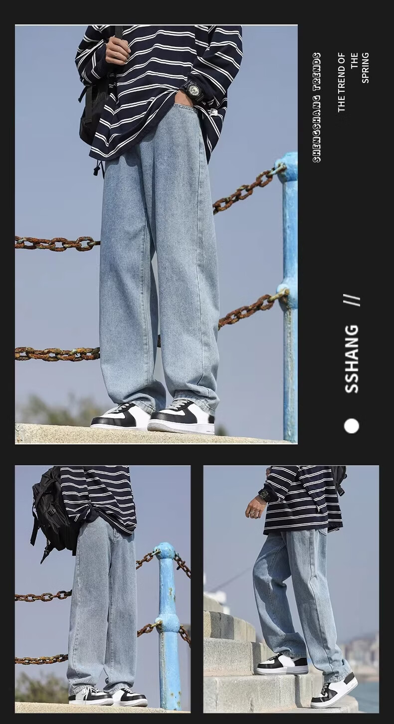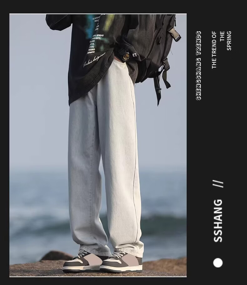 真维斯(Jeanswest)港风加绒牛仔裤男秋冬新款宽松直筒裤加厚阔腿休闲长裤 烟灰色 【宽松直筒】 S 建议(90-105)
