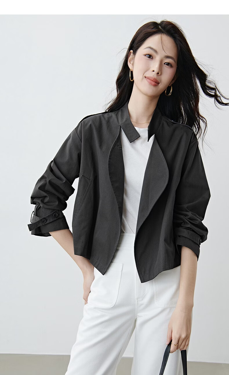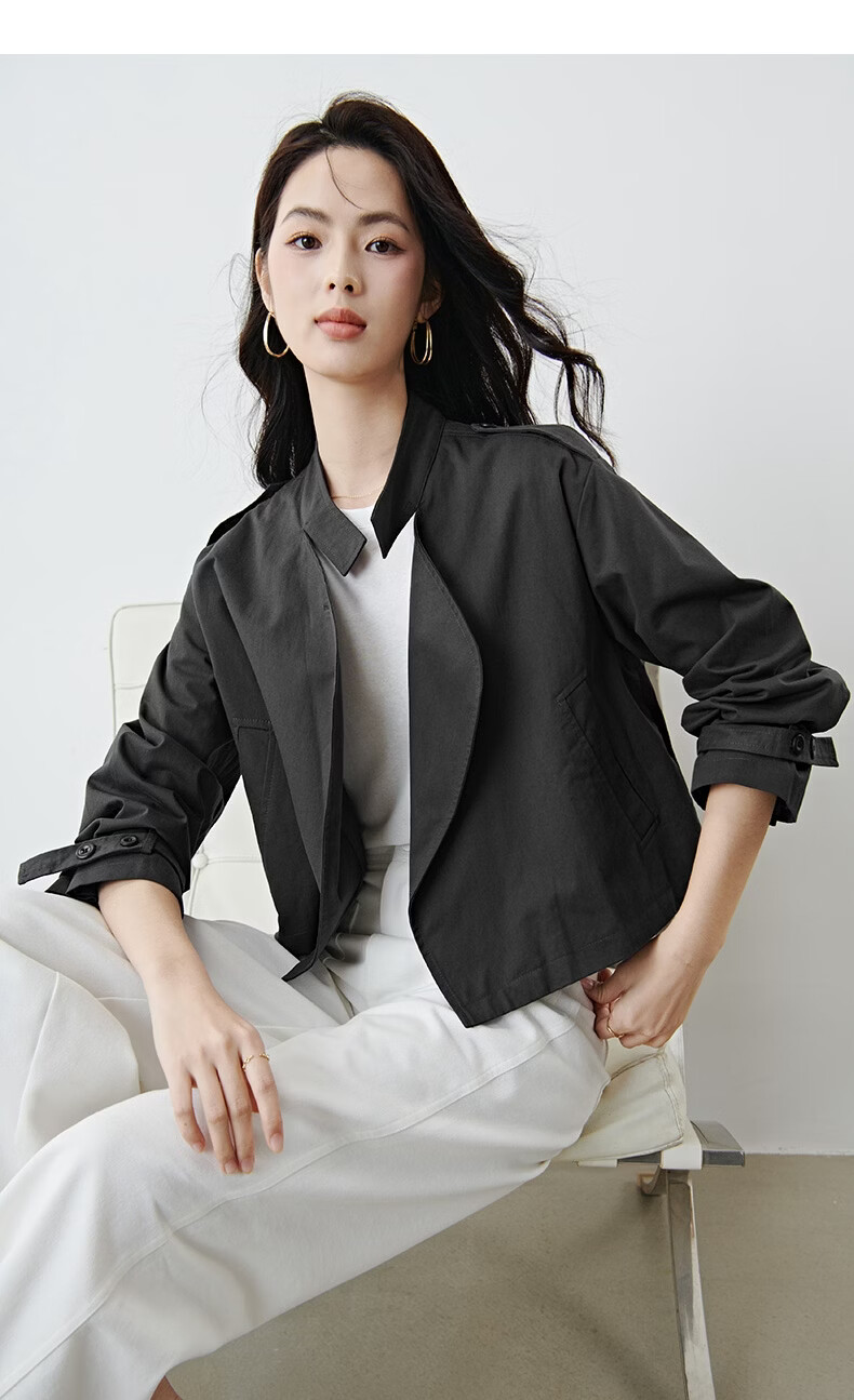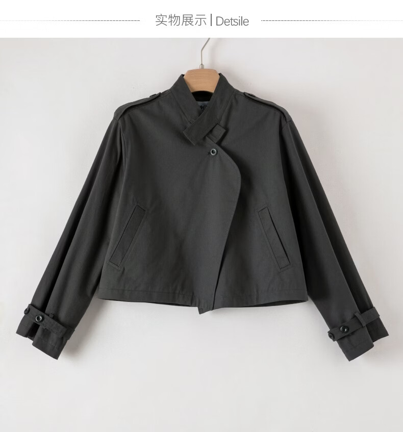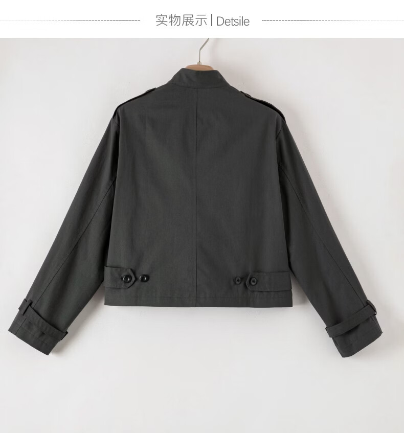 晚白【新品】2026年春款时尚立领棉料上衣舒适休闲大码短夹克外套女 深灰色 M