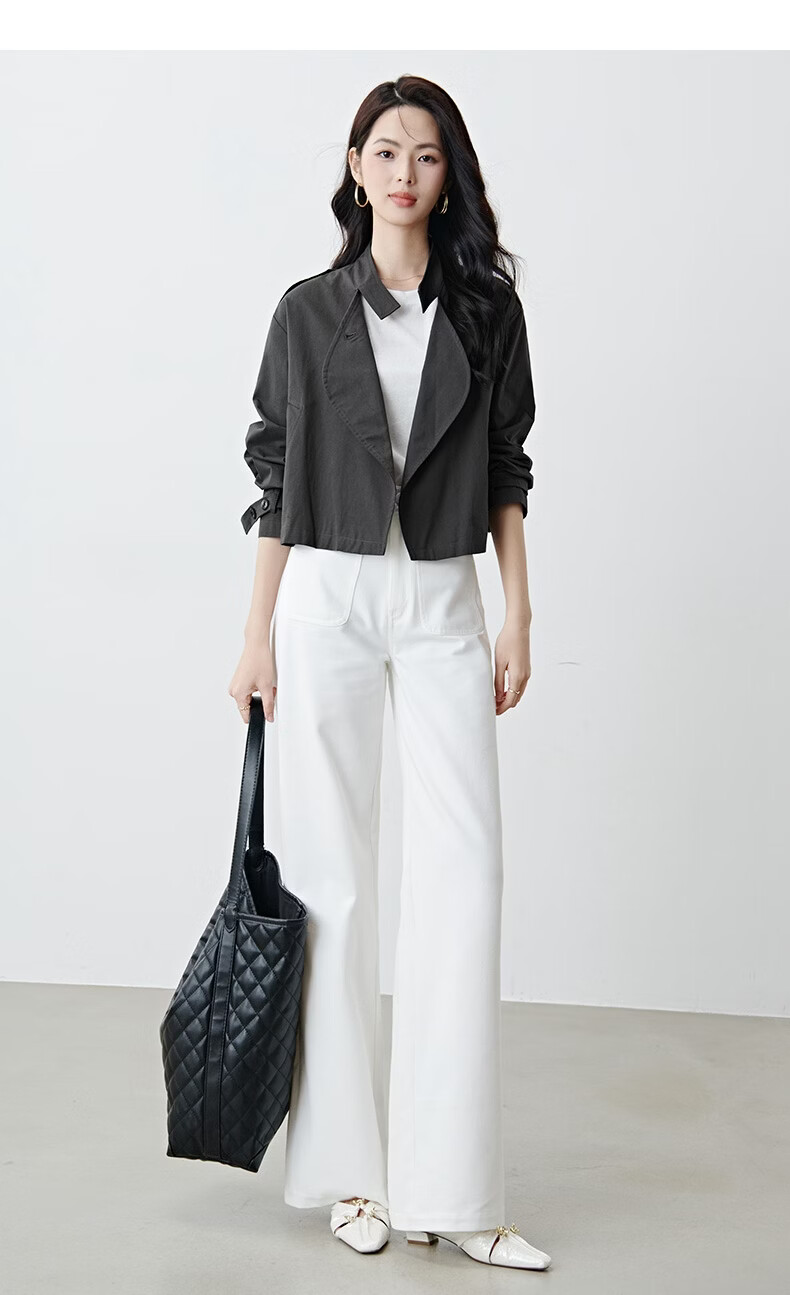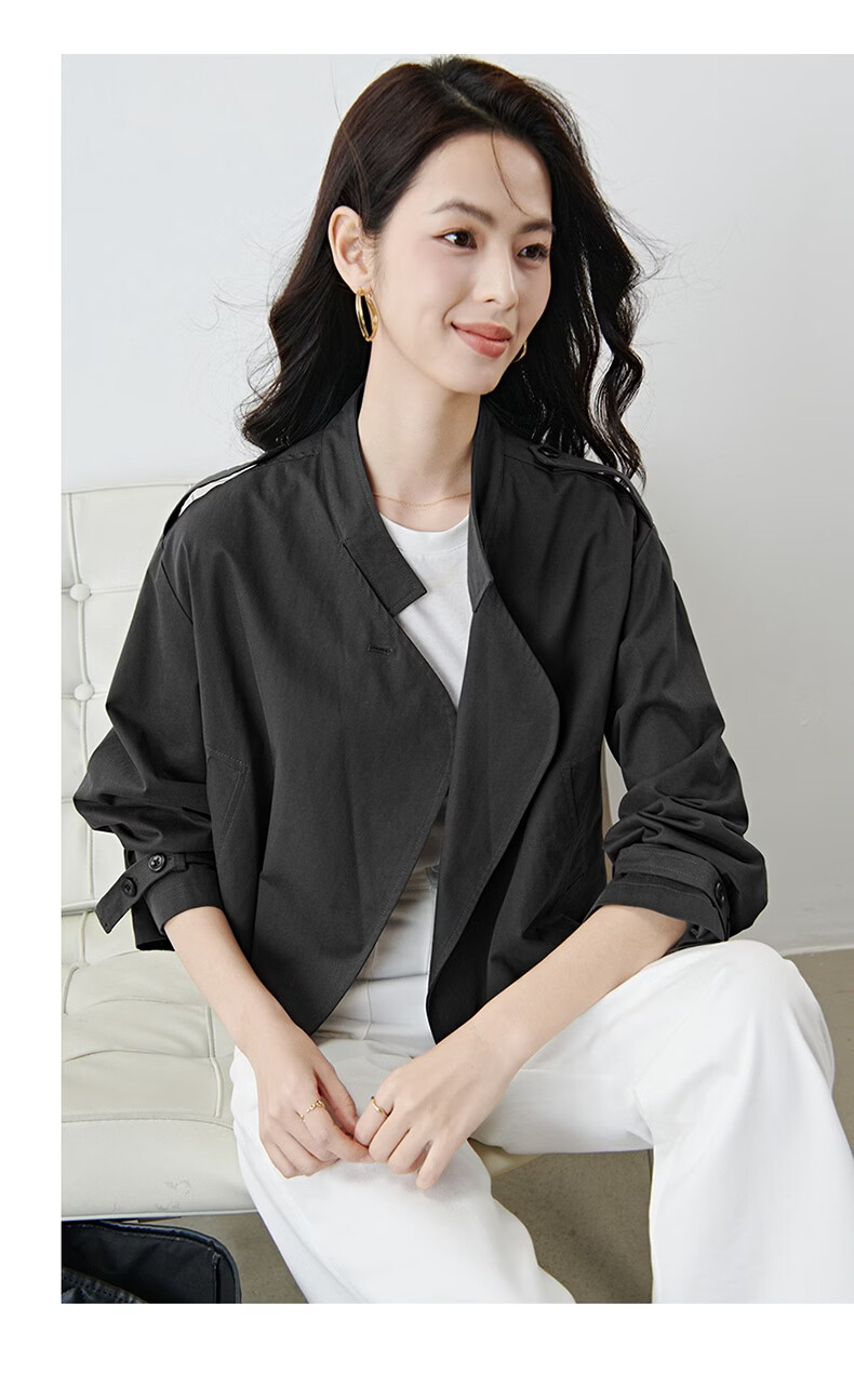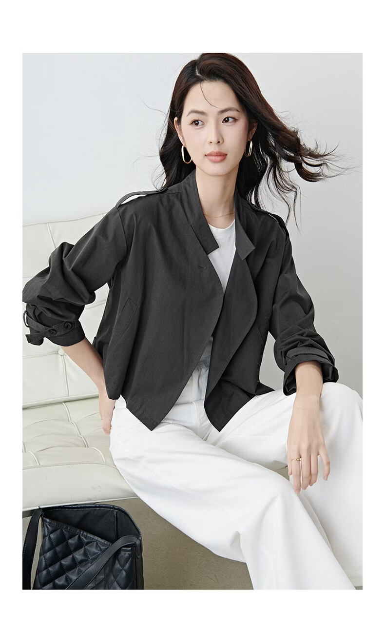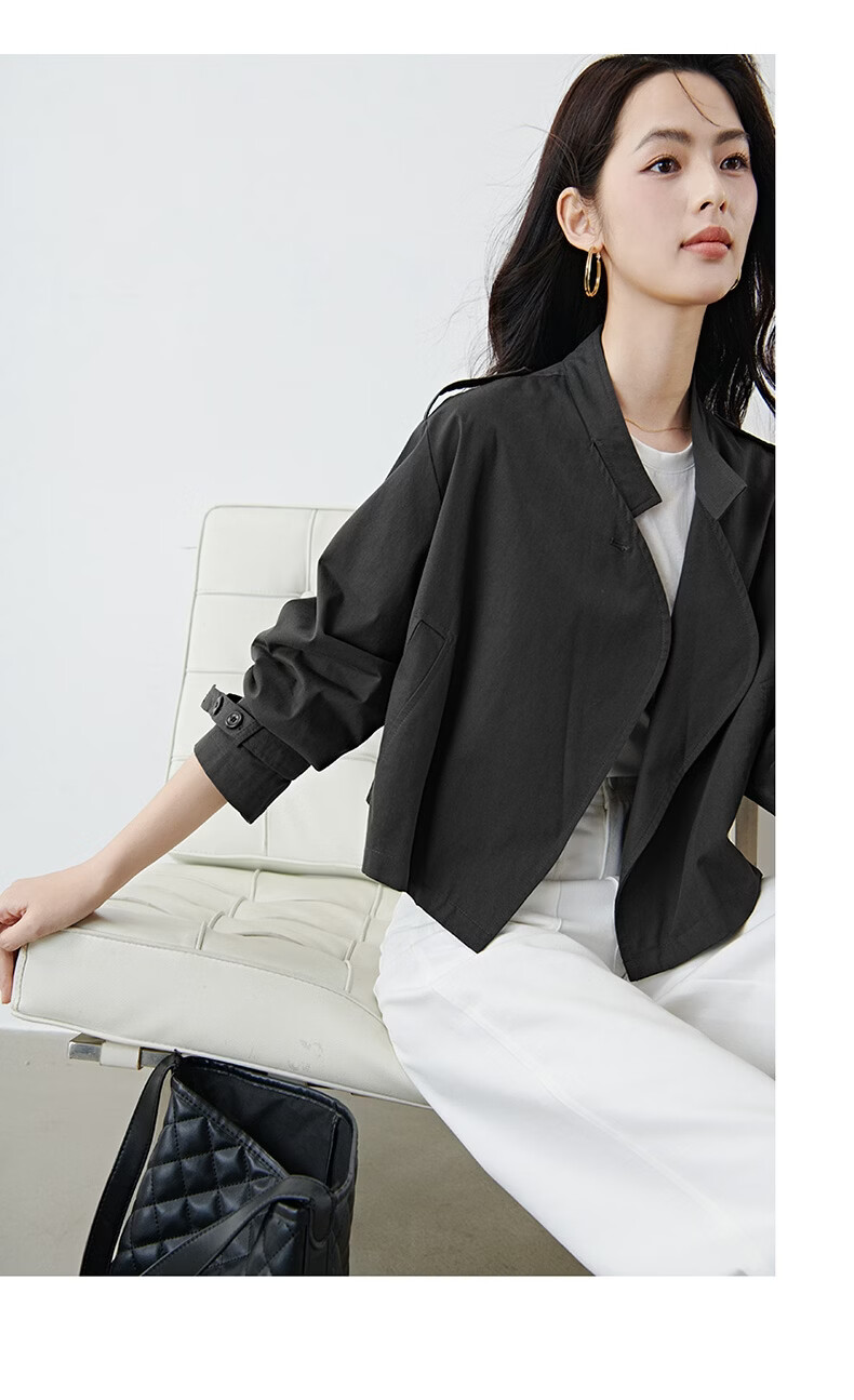 晚白【新品】2026年春款时尚立领棉料上衣舒适休闲大码短夹克外套女 深灰色 M