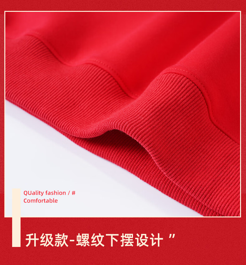 真维斯(Jeanswest)新年酒红色圆领卫衣男女款2026马年本命年上衣加绒外套情侣款衣服 加绒 红色 有钱金币 S