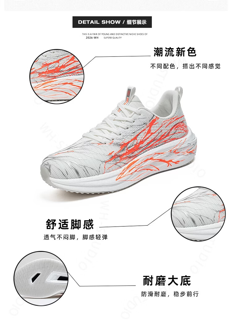 森馬竞速跑鞋男款2026新款春季全掌爆米花碳板学生运动马拉松跑步潮鞋 白色【基础款】 39 标准码数/现货秒发
