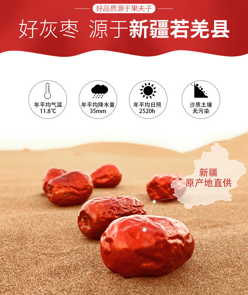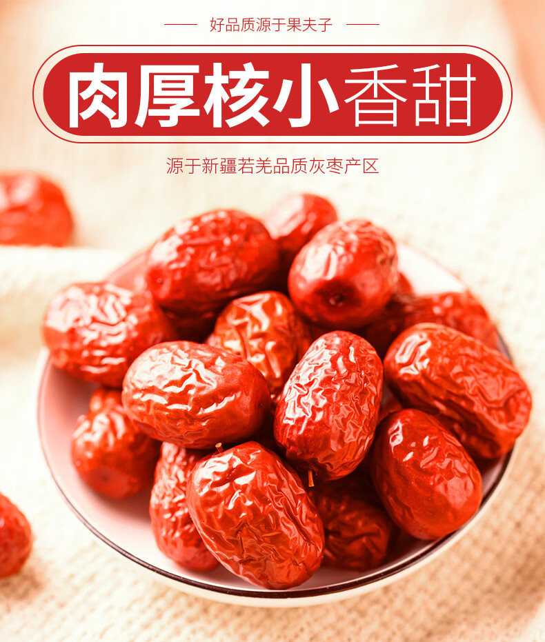 果夫子 若羌灰枣500g休闲零食即食煲汤煮粥泡茶红枣新疆特产