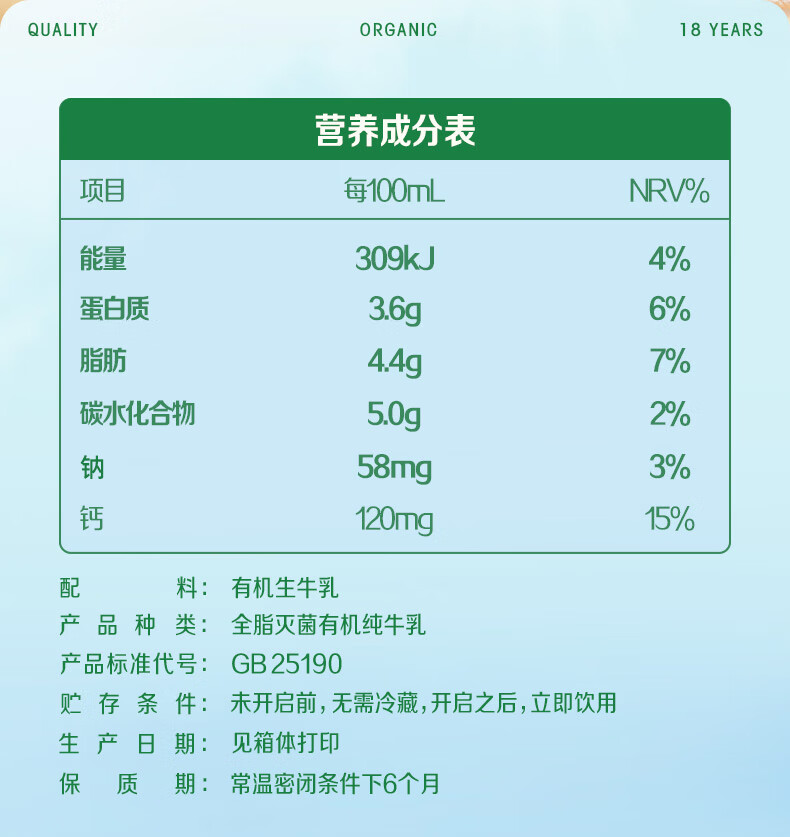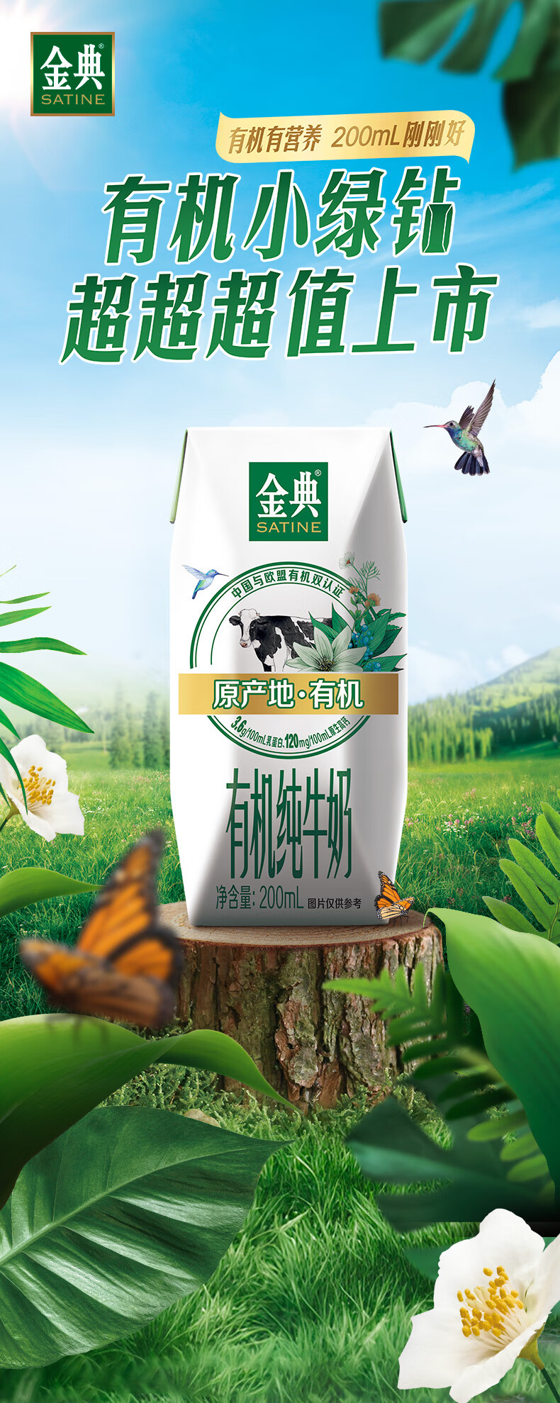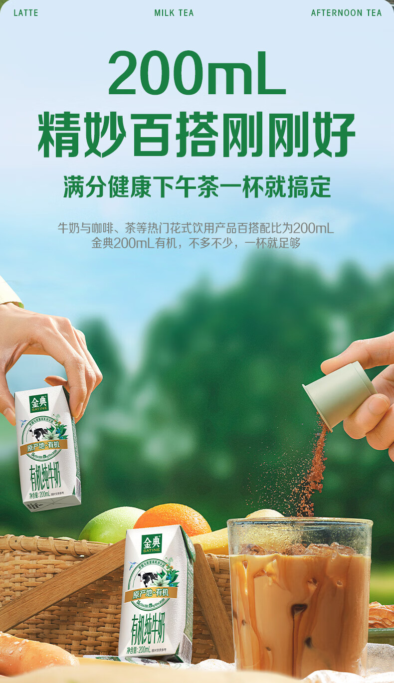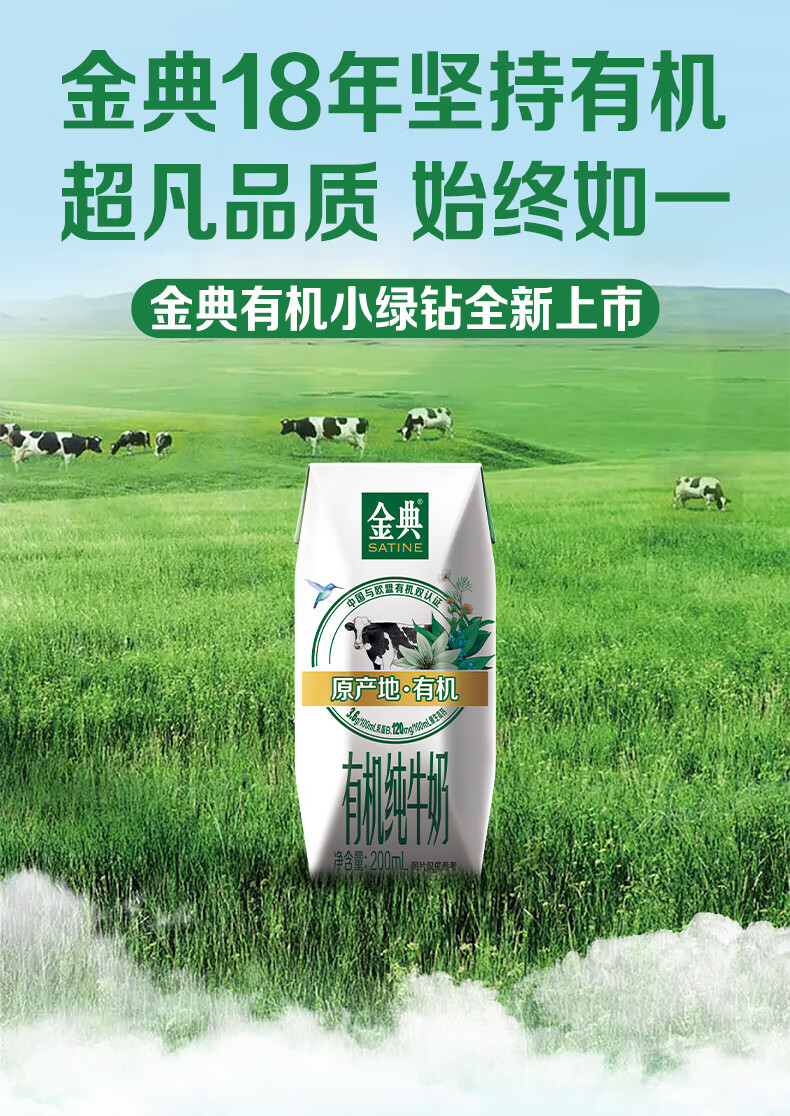 伊利金典有机纯牛奶200ml*10盒 3.6g乳蛋白 礼盒裝 12-1月产