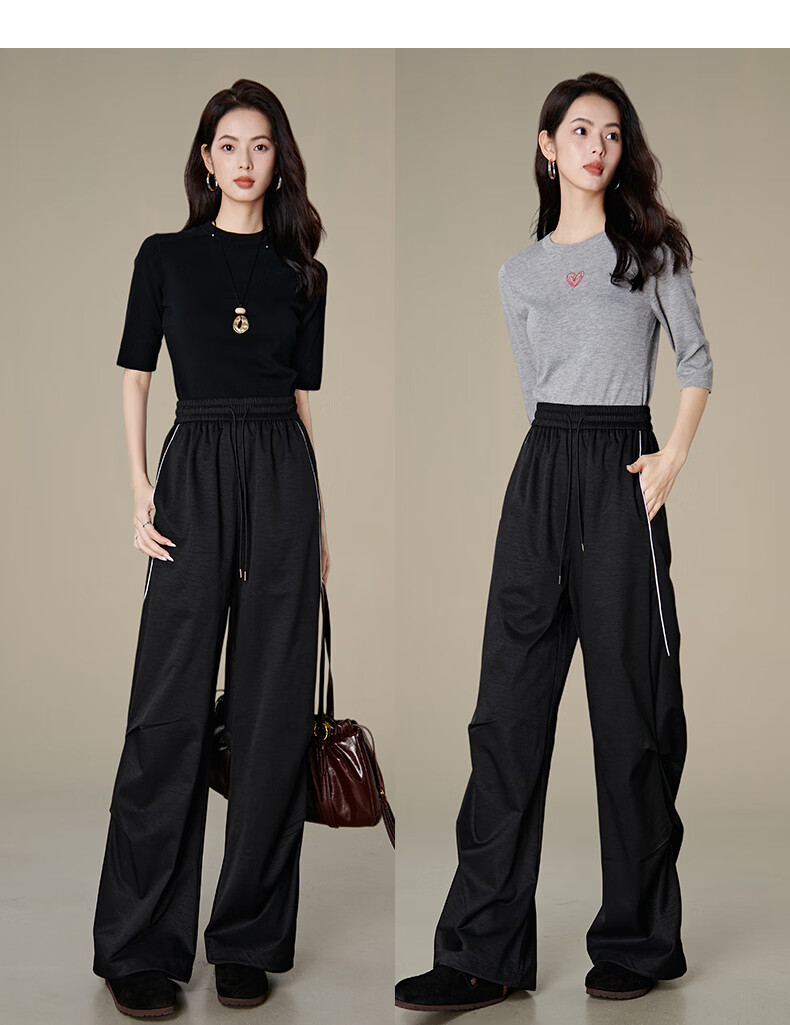 晚白【新品】2026年春款时尚休闲高腰工装裤遮胯显瘦舒适百搭阔腿裤女 黑色 27