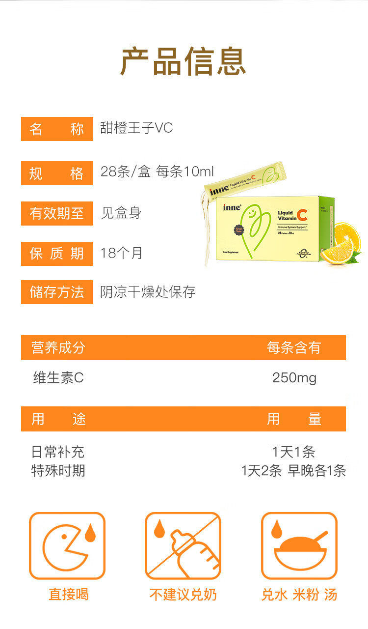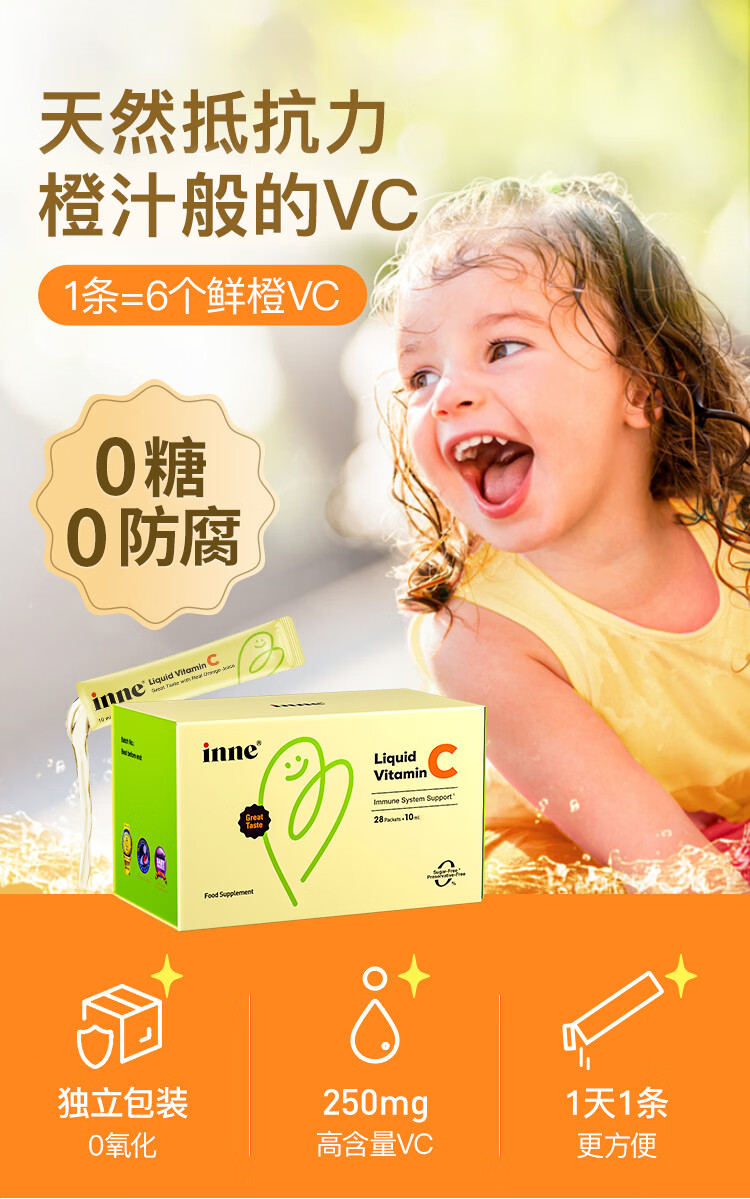 Inne因你甜橙王子vc婴幼儿维生素c儿童换季宝宝维C28条*3盒