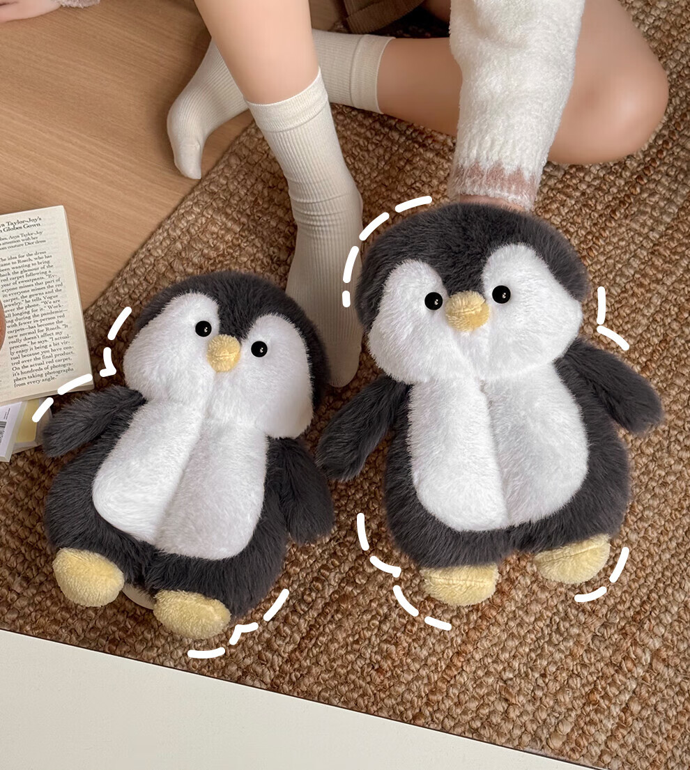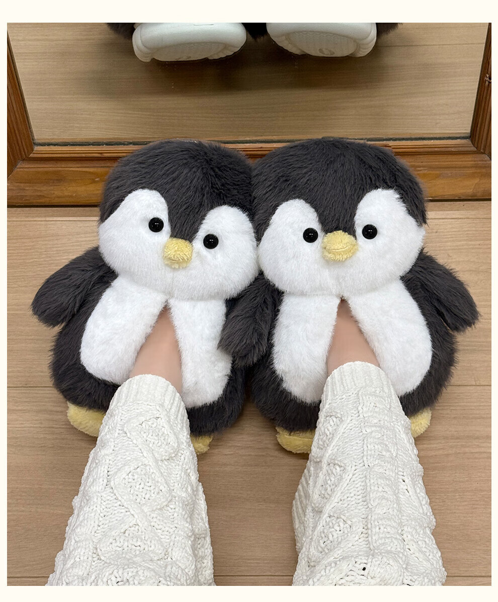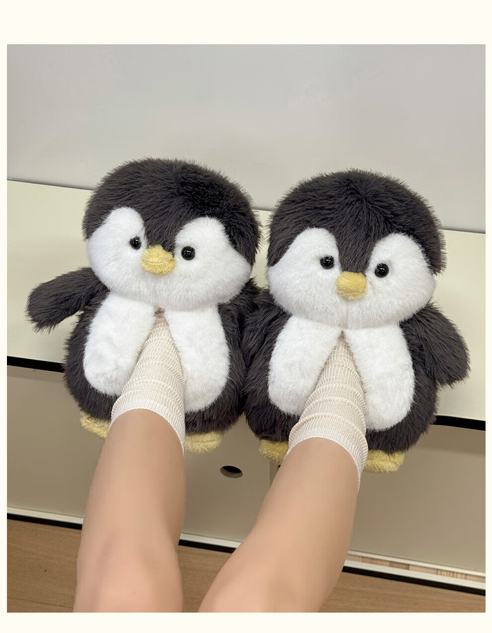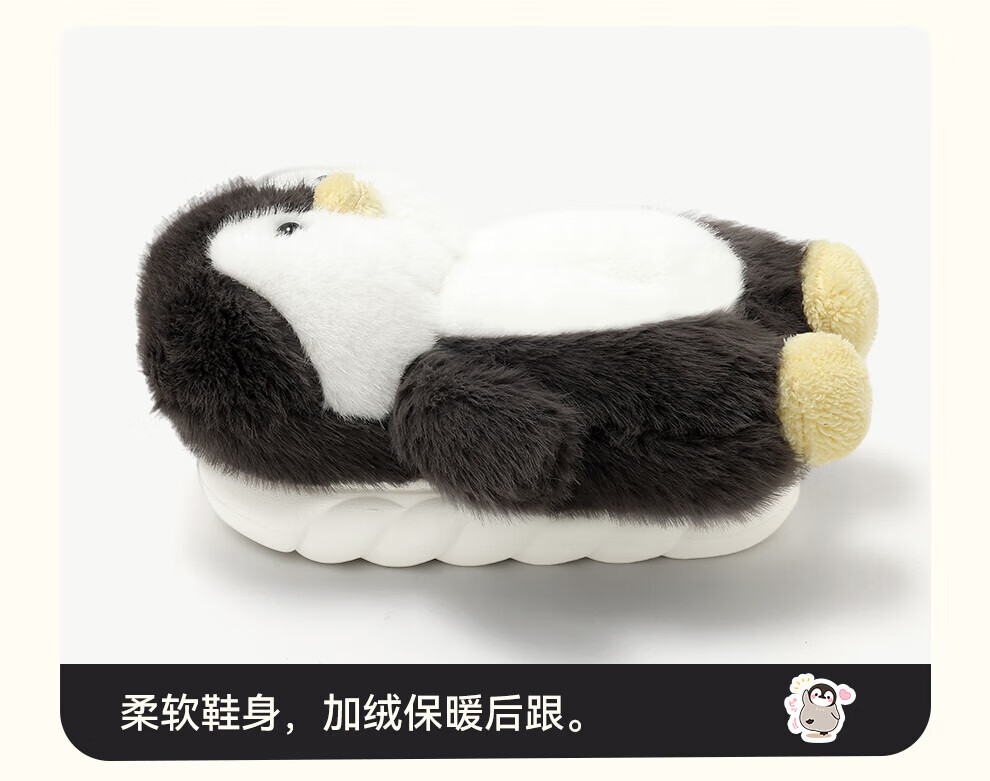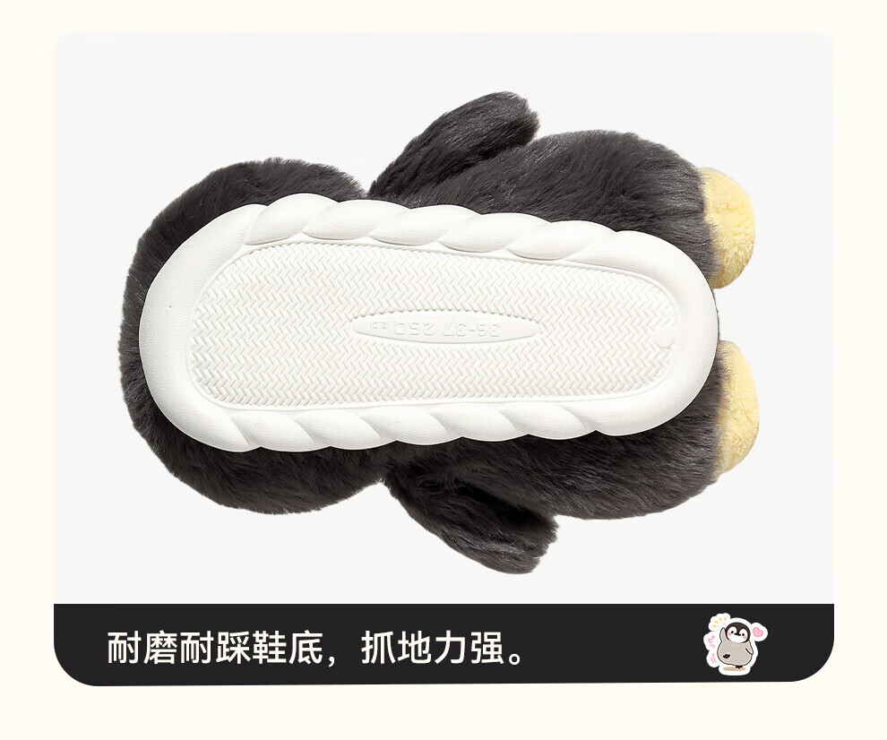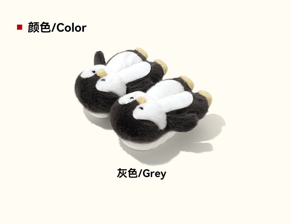 FZT企鹅棉拖鞋女2025秋冬室内居家厚底包跟毛绒耐磨防滑保暖棉拖鞋男 灰色 36-37 适合35-36