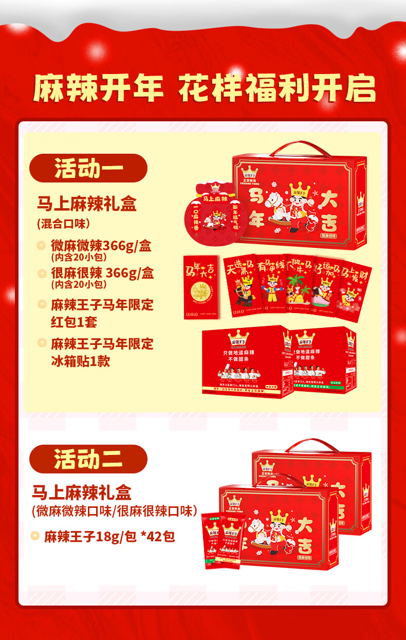 麻辣王子马年限定礼盒很麻很辣 756g 内含 42 包春节送礼休闲零食大礼包