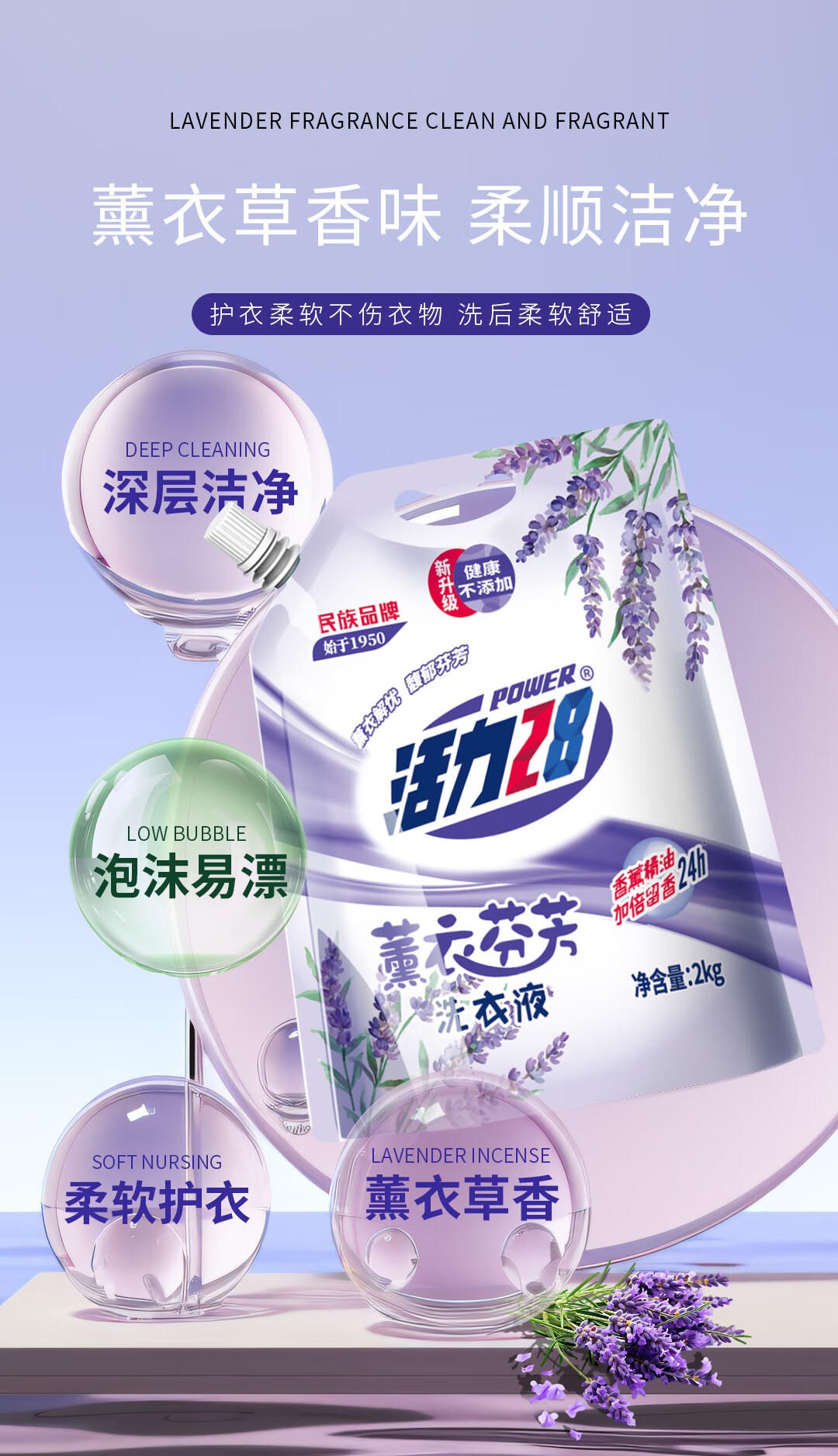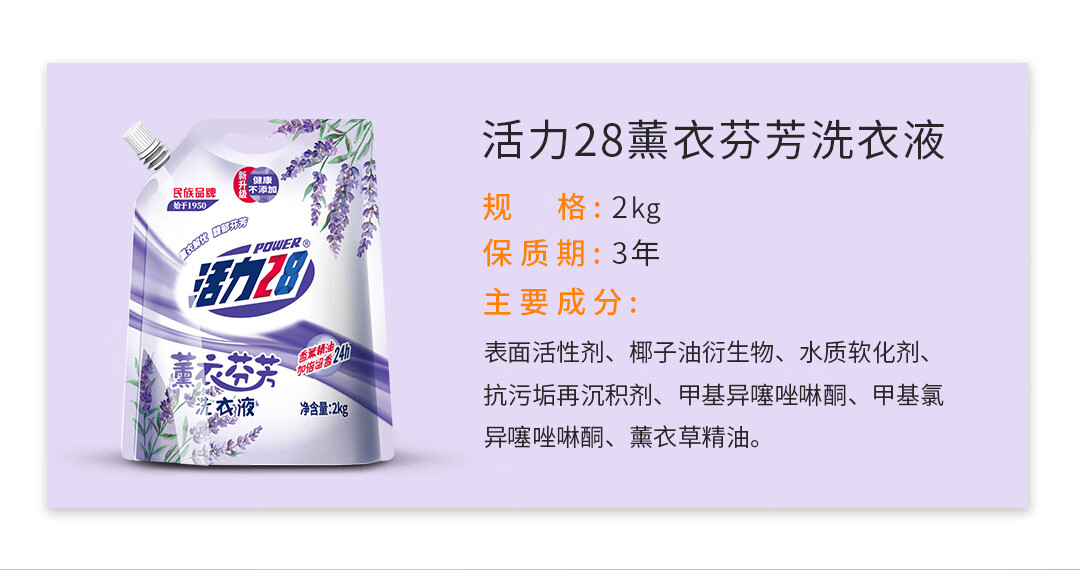 活力28薰衣芬芳洗衣液经典薰衣草精油持久留香深度清洁超值多效洁净粒子 乌木玫瑰4斤/2KG*1袋