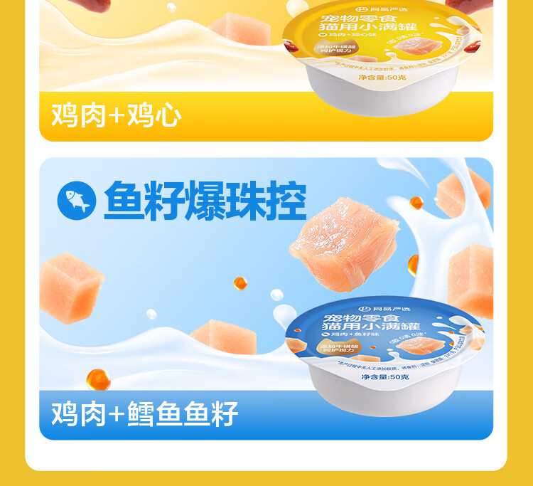 网易严选猫零食罐头猫用小满罐猫罐头零食猫罐头鸡肉+鱼籽味50g