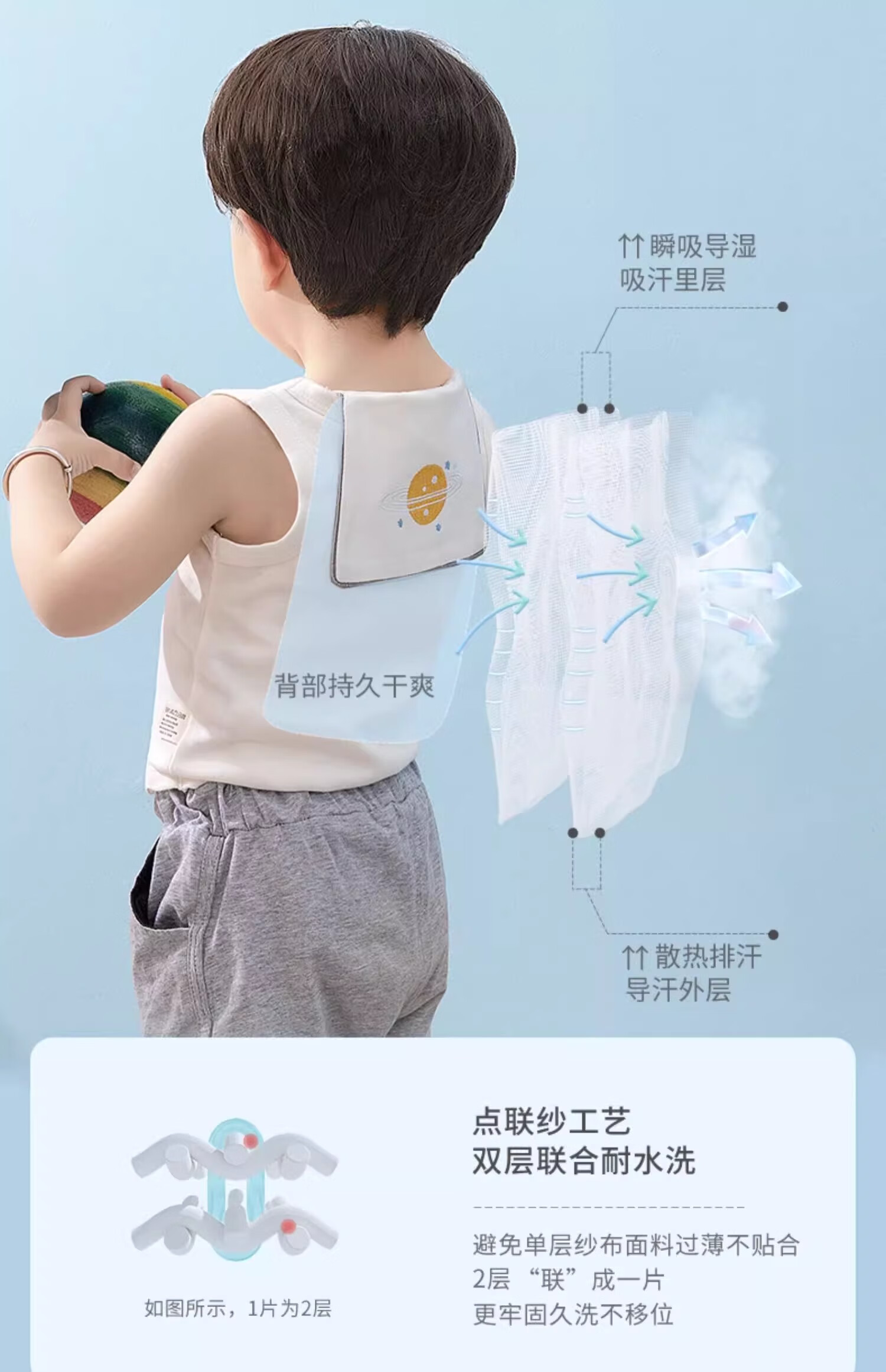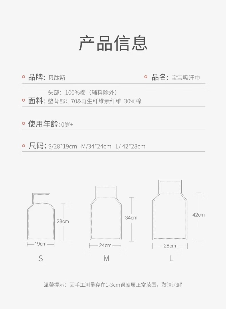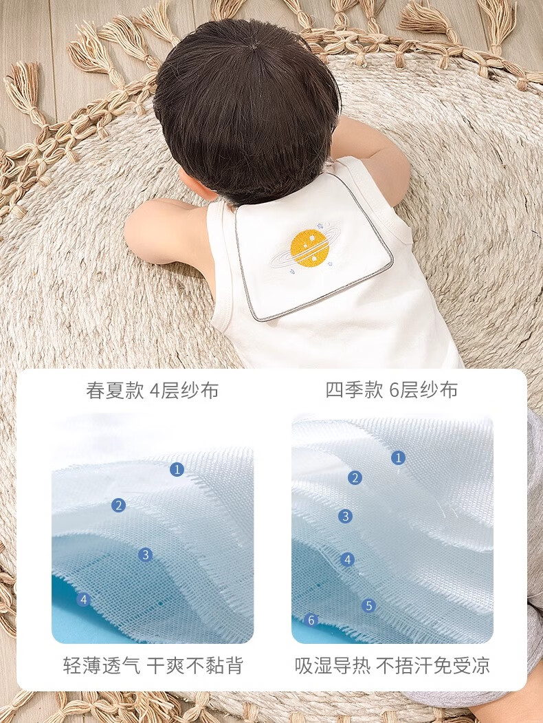 贝肽斯隔汗巾儿童3-6岁薄款纯棉a类婴儿宝宝吸汗巾大号垫背幼儿园专用