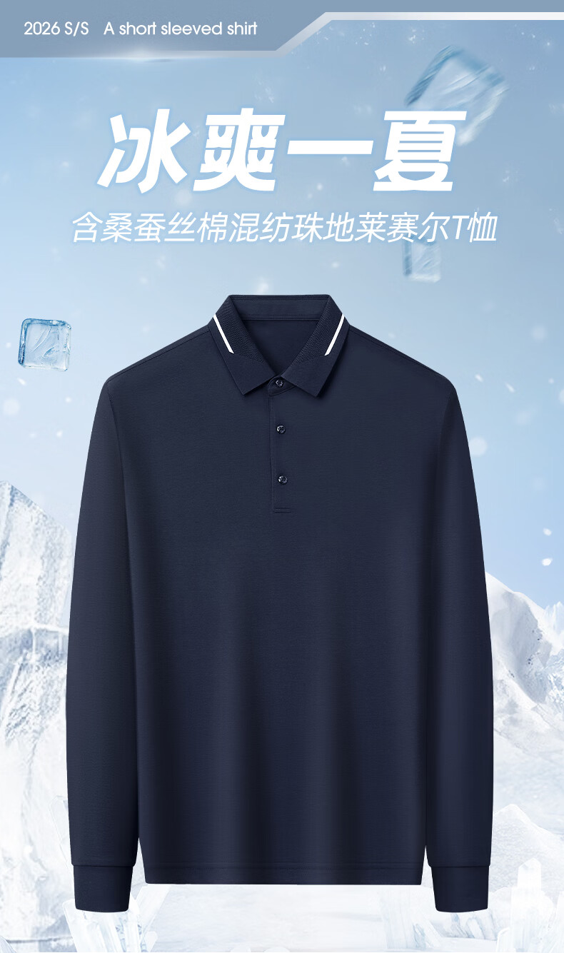 SHANSHAN杉杉男士长袖T恤春季新款商务简约抗起球打底通勤Polo衫 浅蓝色 M /170