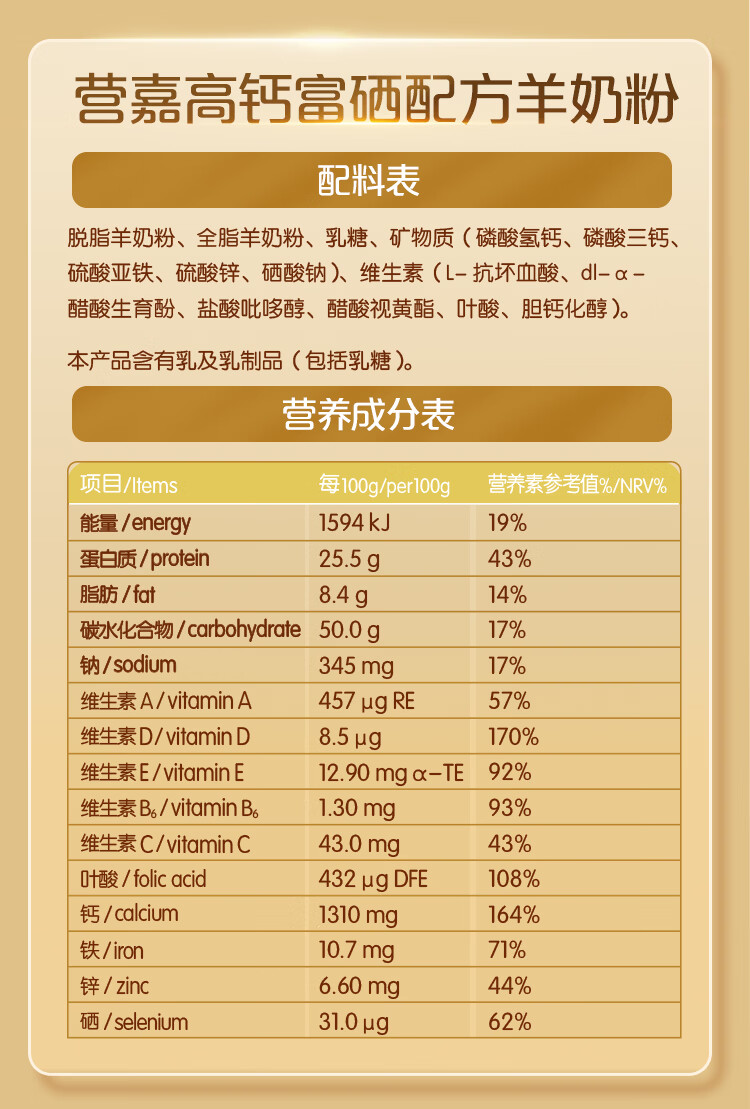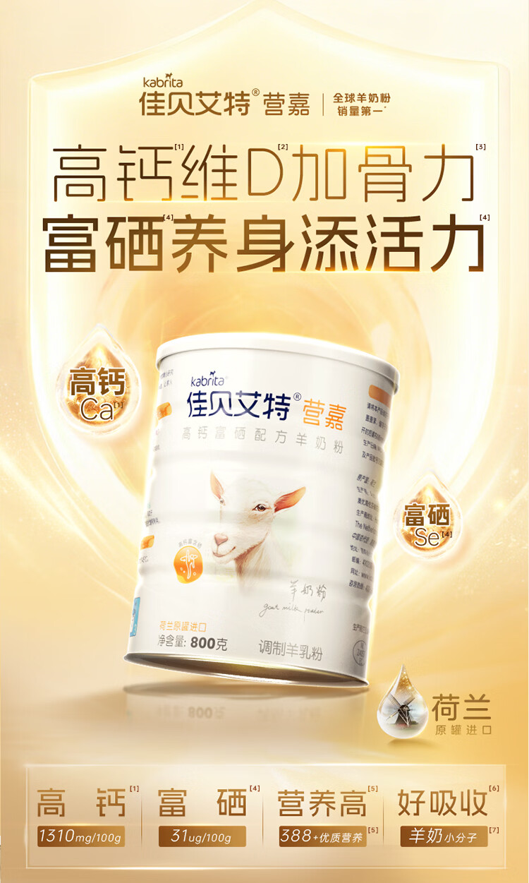 佳贝艾特中老年羊奶粉营嘉高钙富硒无蔗糖低GI 800克 成人学生营养品补品 【年货节礼盒】800g*2罐-过年送礼有面
