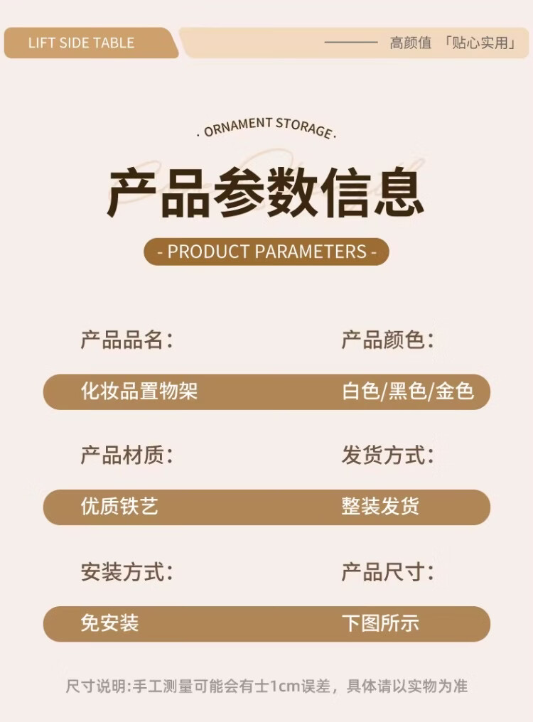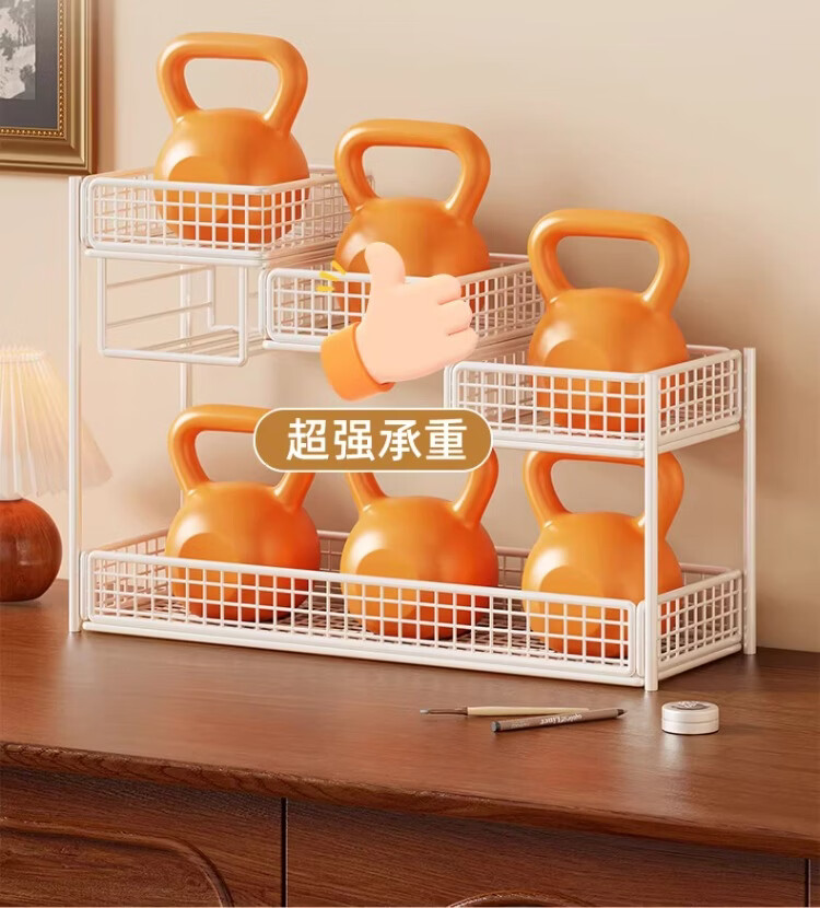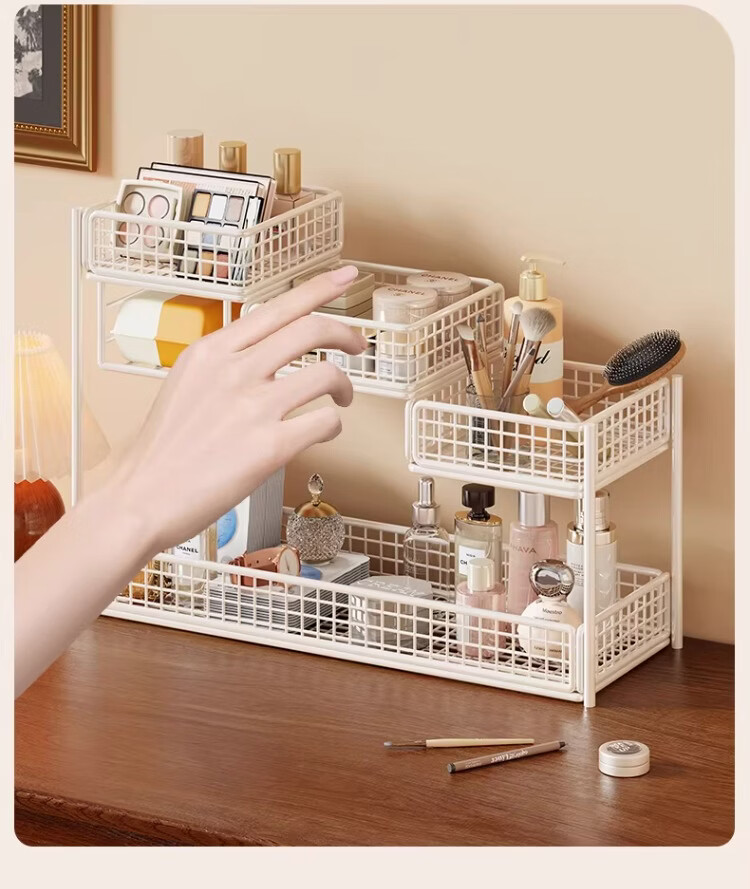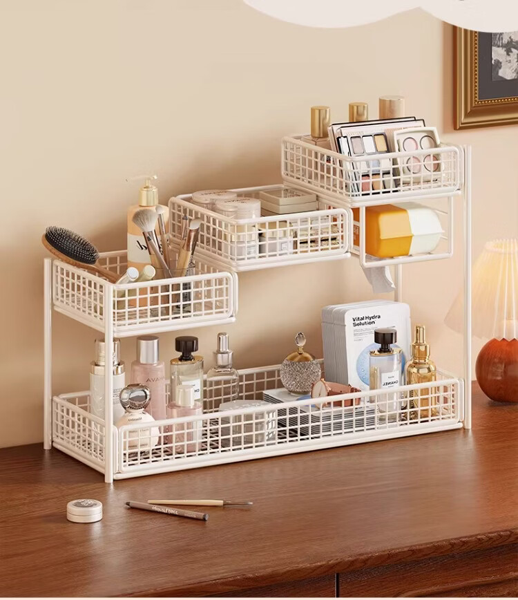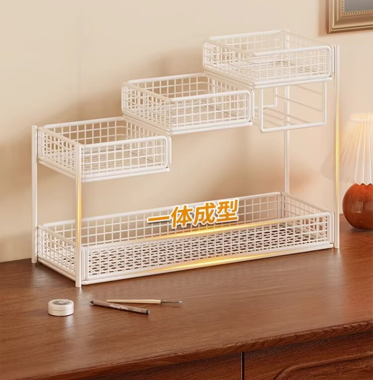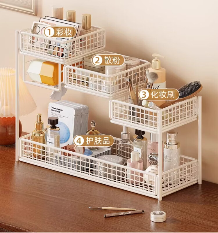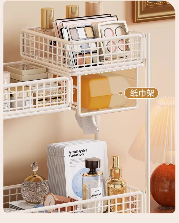 尔思家化妆品置物架卧室梳妆台多层收纳盒洗手台桌面护肤品储物篮整理架 白色-三层带纸巾盒