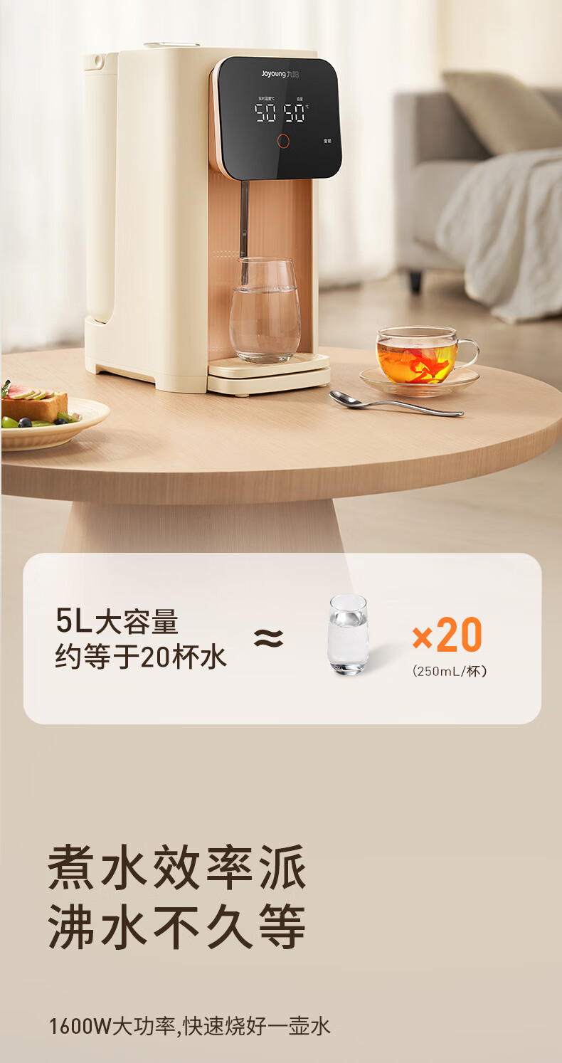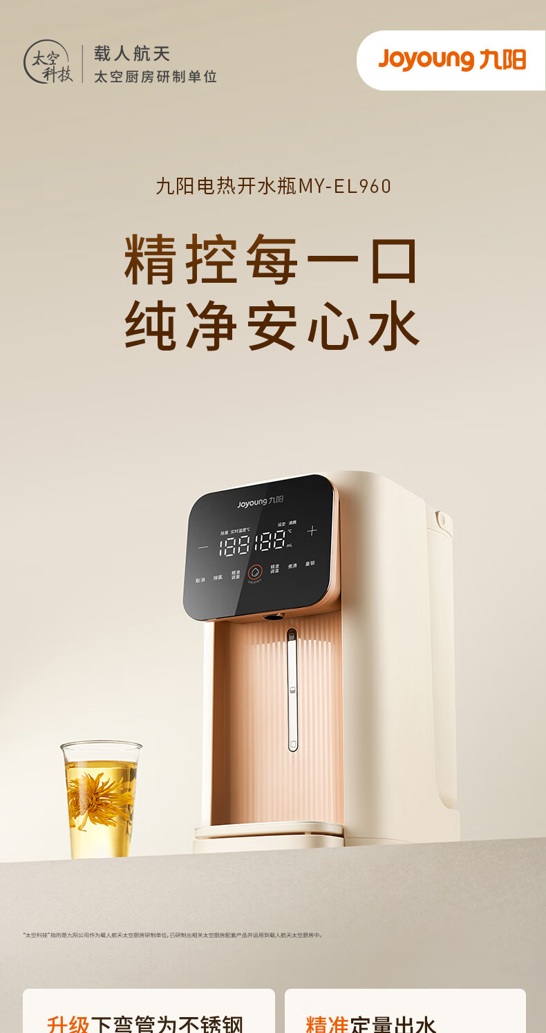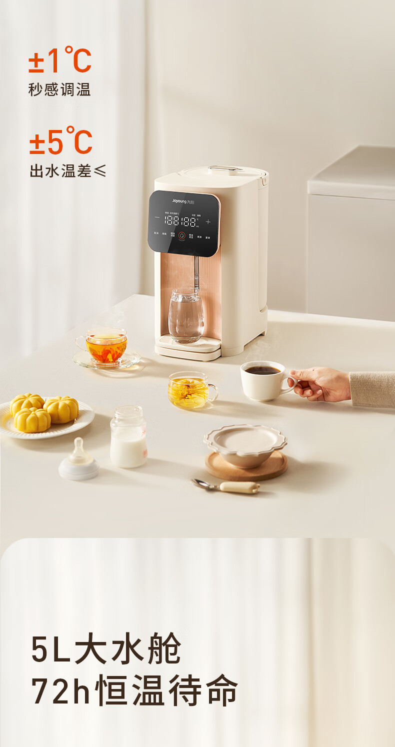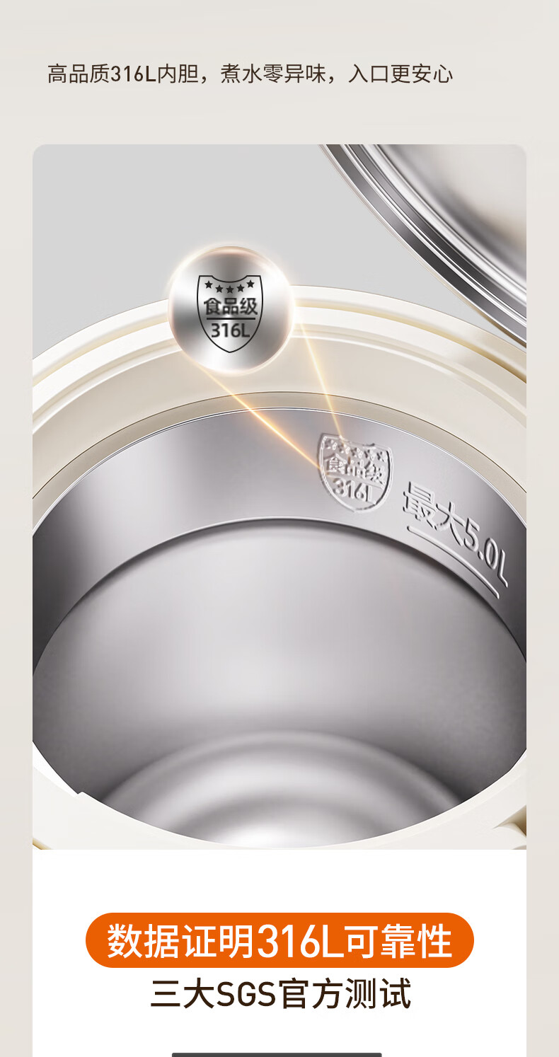 九阳(Joyoung)电热水瓶烧水壶大容量调保温定量调奶器316不锈钢家用饮水机EL960 5L 【奶油白+栗子棕】