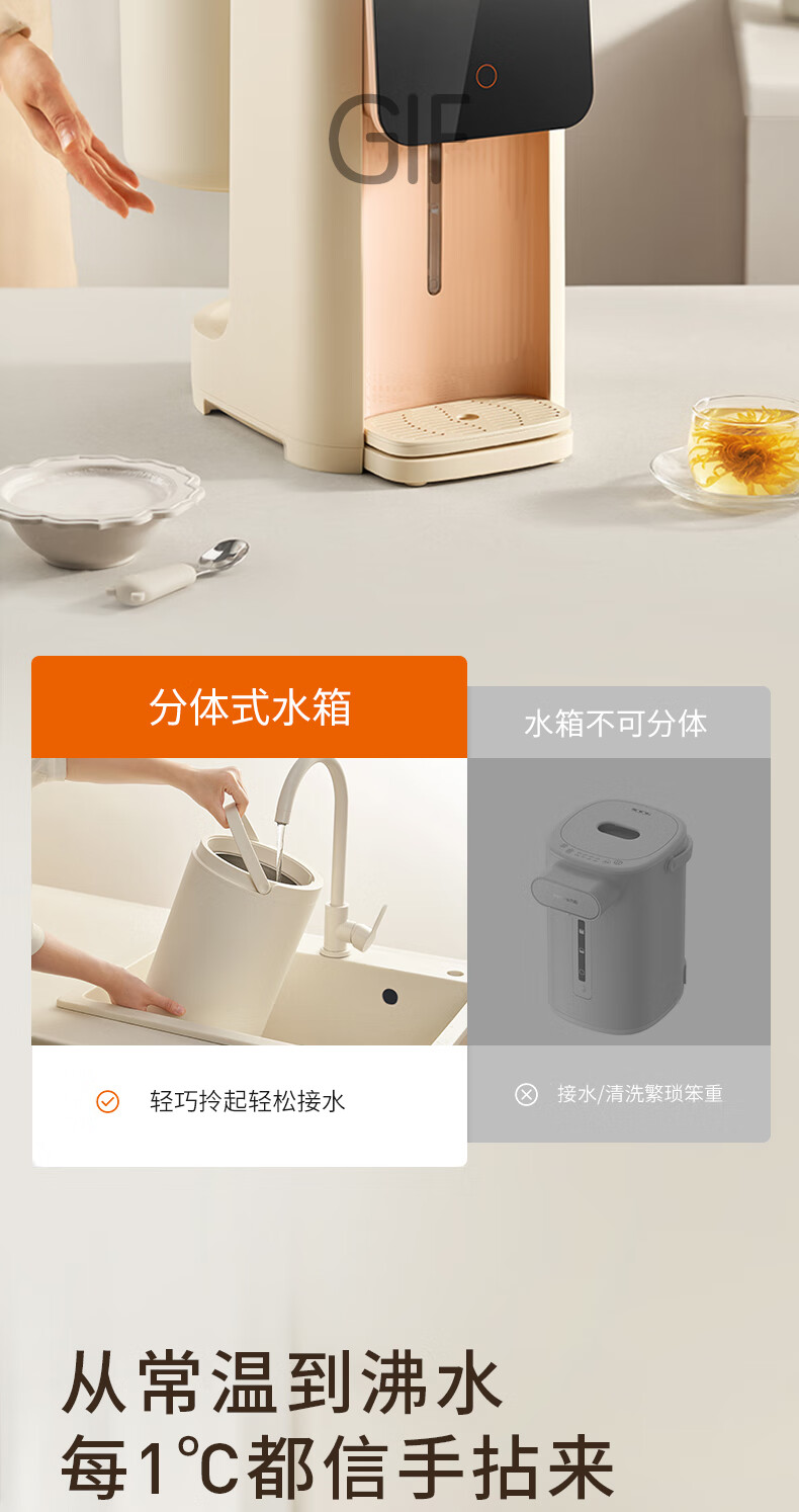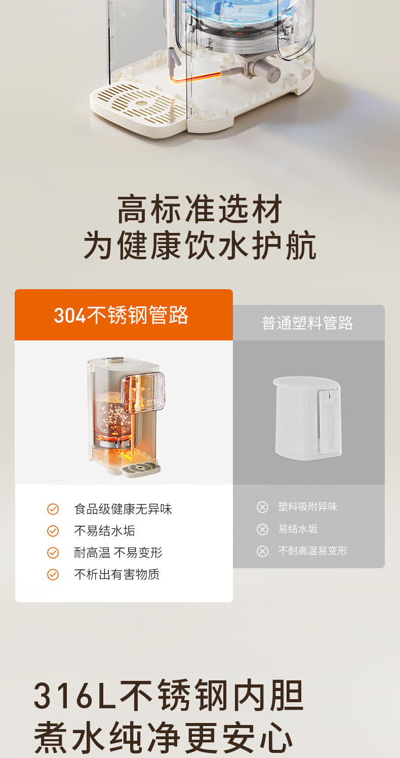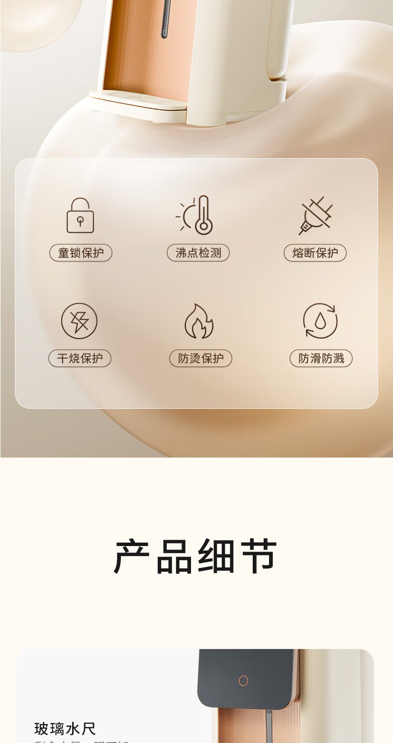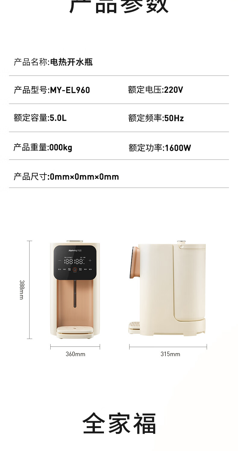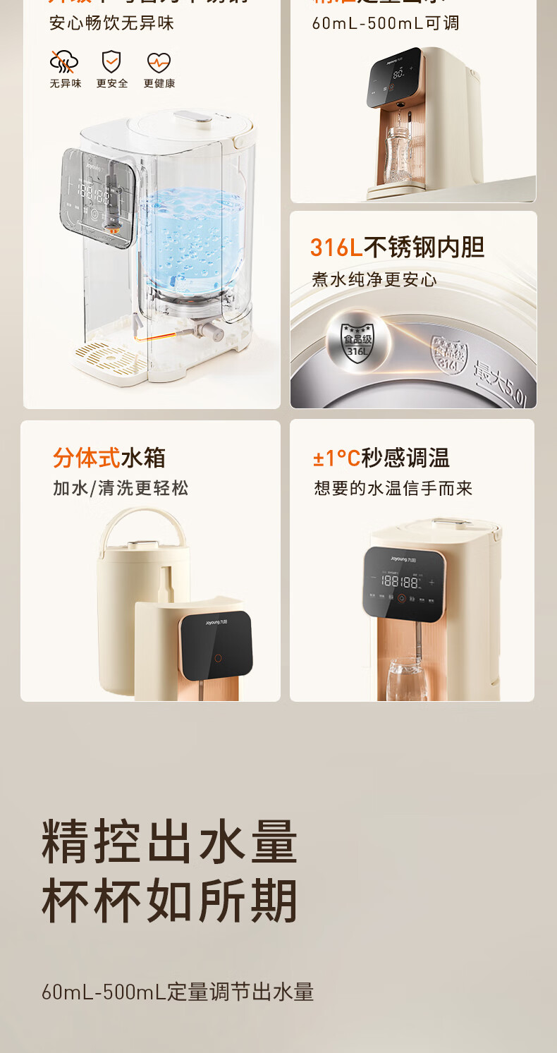 九阳(Joyoung)电热水瓶烧水壶大容量调保温定量调奶器316不锈钢家用饮水机EL960 5L 【奶油白+栗子棕】