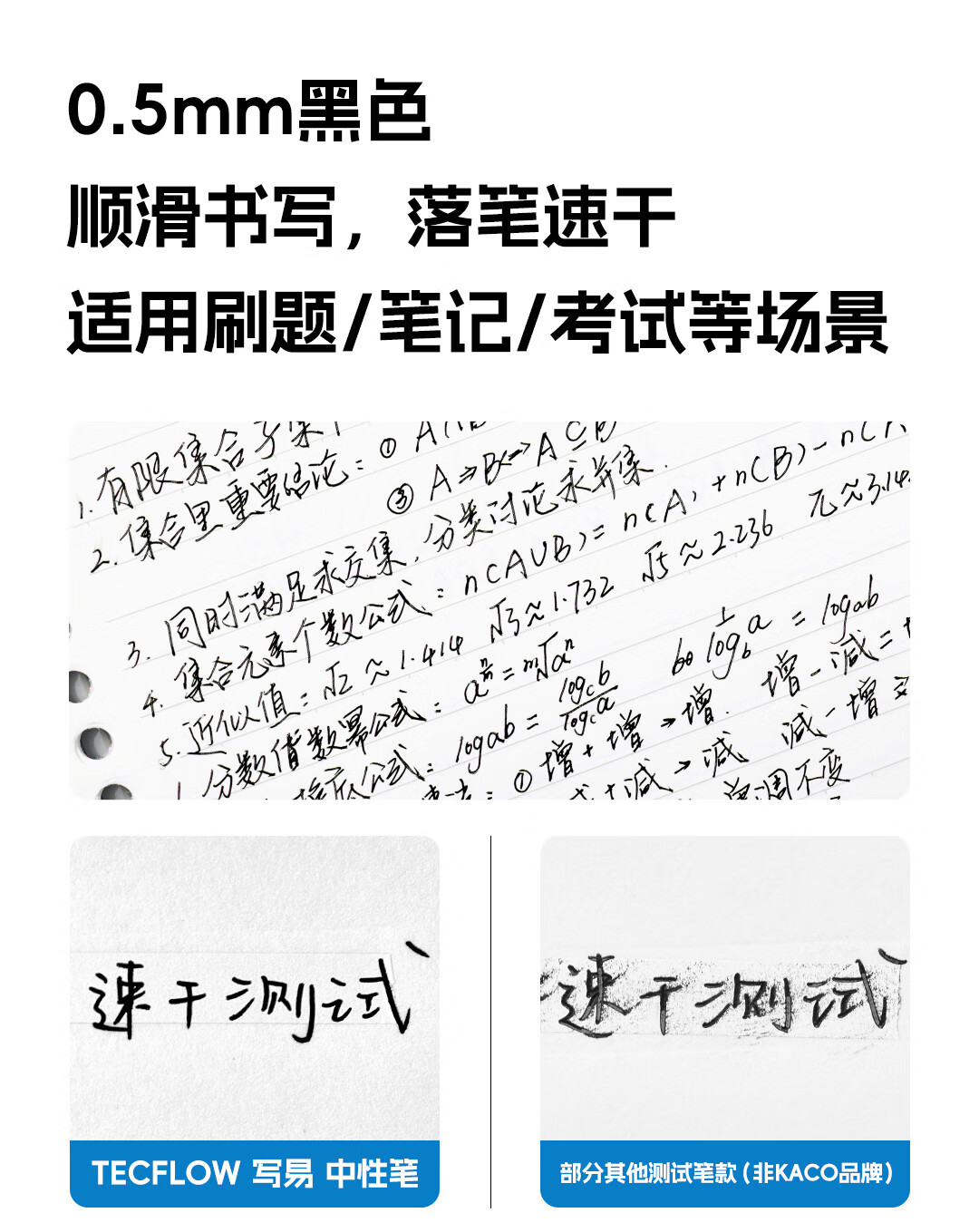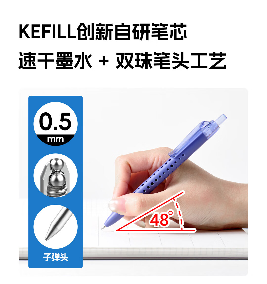 KACO中性笔写易按动洞洞款800米书写长度学生刷题考研商务办公文具签字笔0.5黑色按动中性笔速干顺滑 珍珠灰