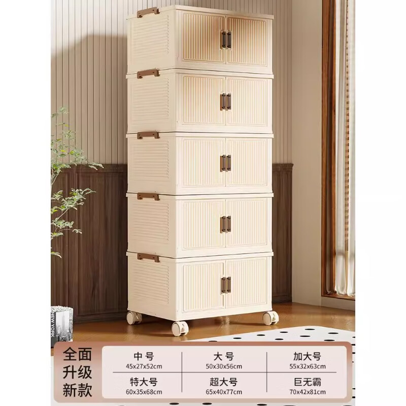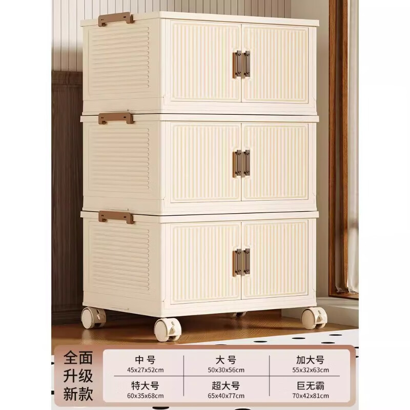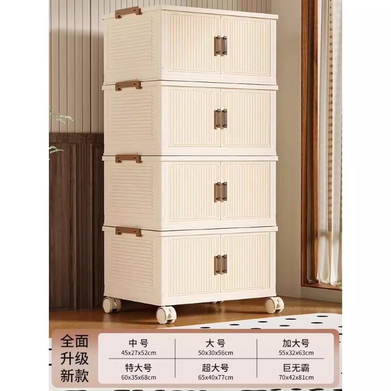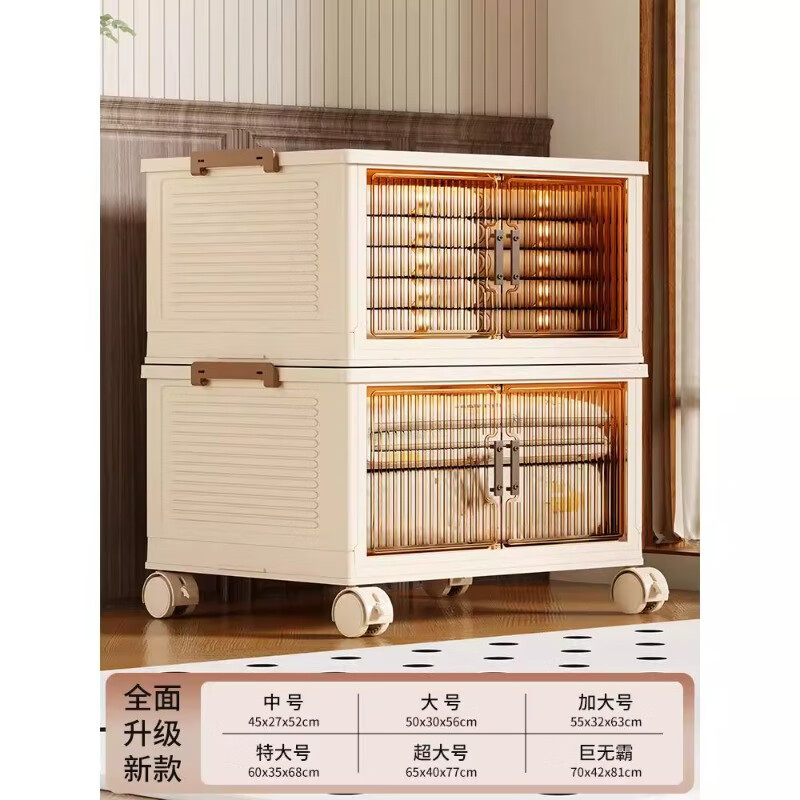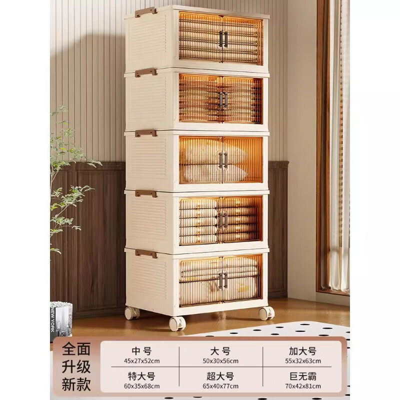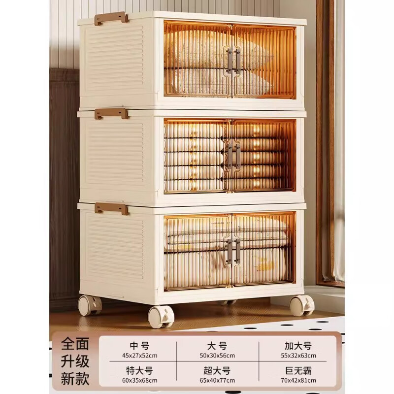尔思家衣服收纳箱特大号整理箱搬家打包箱透明储物盒零食可折叠加厚柜子 【茶透色】1层丨一盖1箱【稳固叠加】 中号45cm面宽