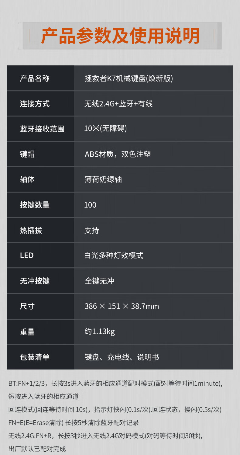 联想(Lenovo)拯救者K7游戏键盘有线蓝牙无线三模电竞机械键盘客制化轴体适配Legion K7-Play 暗区突围焕新版