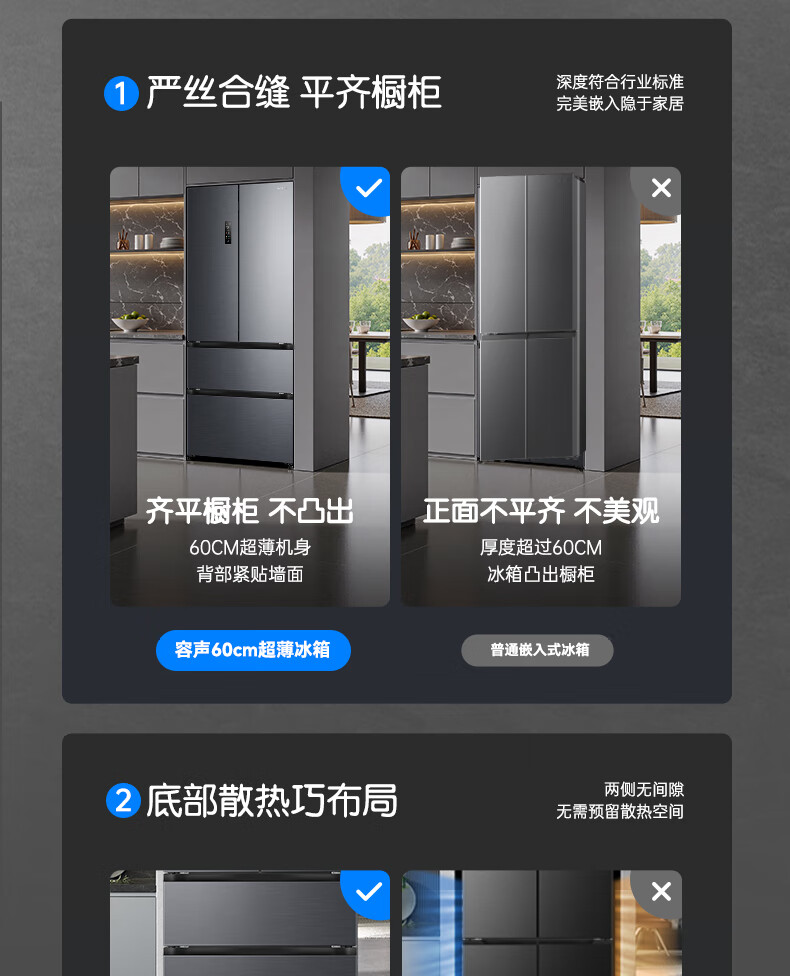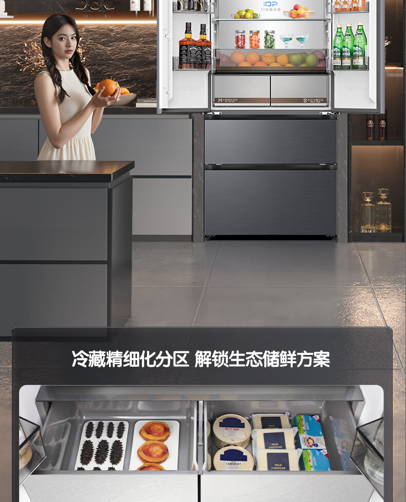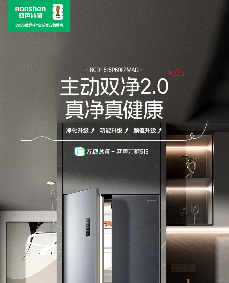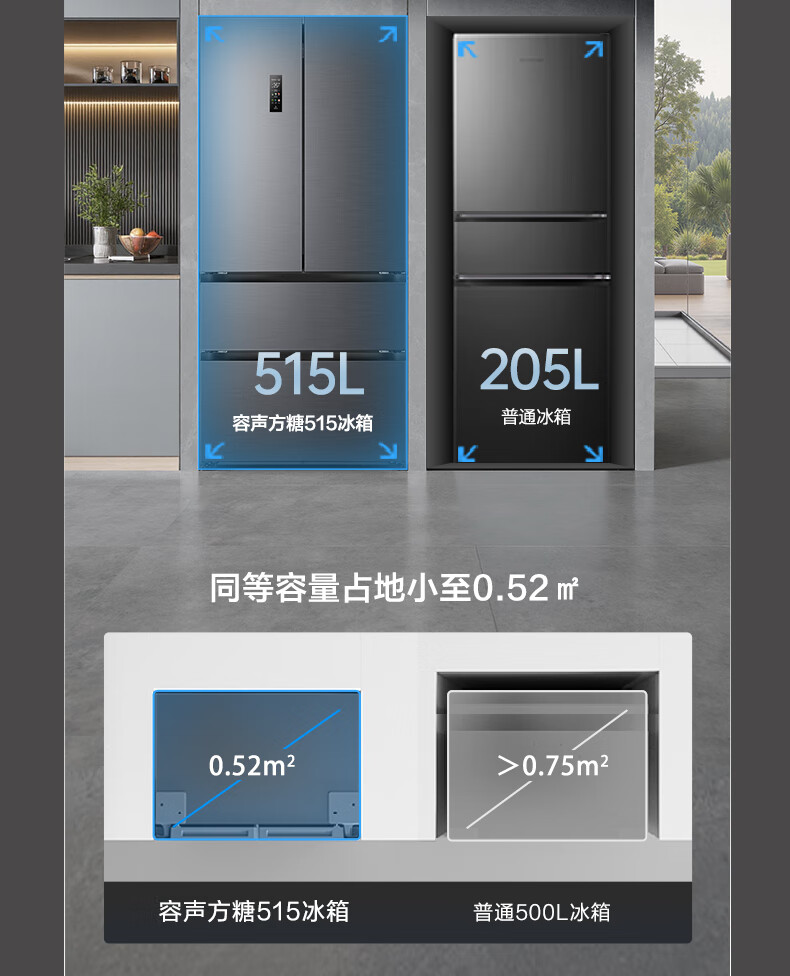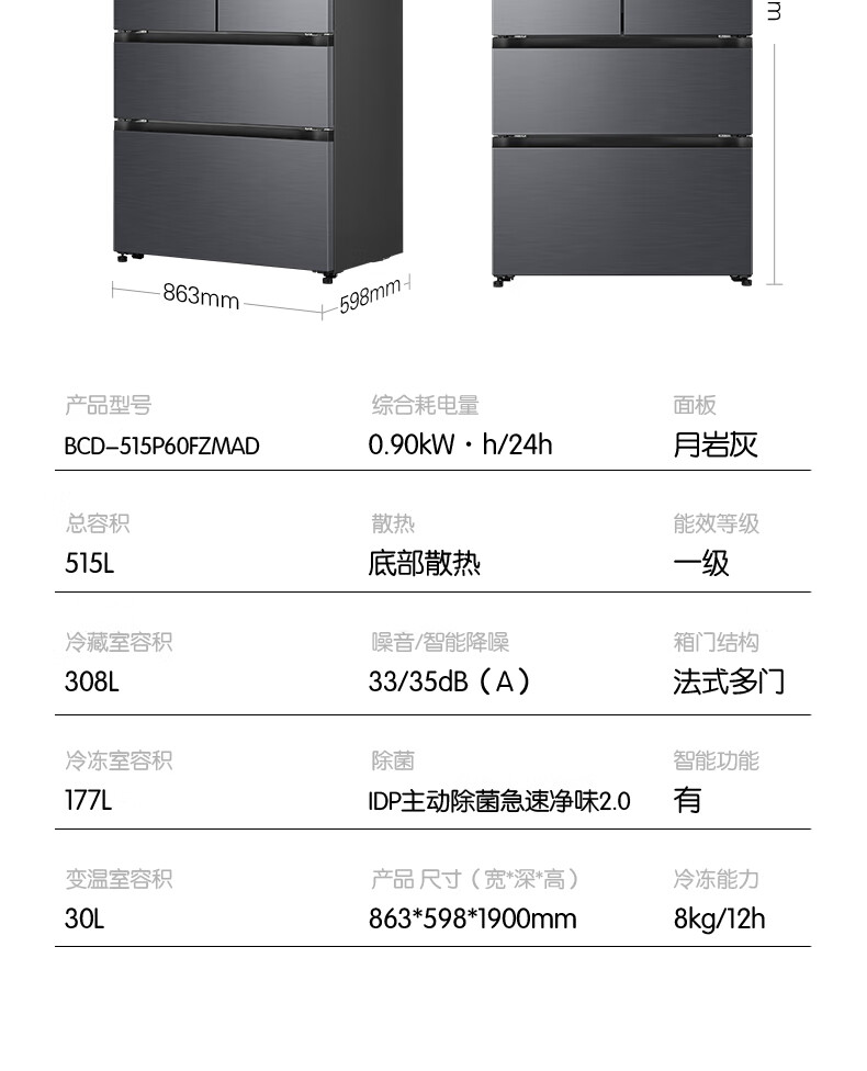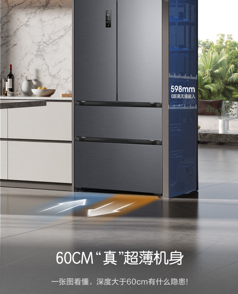 容声方糖515L法式多门冰箱双系统循环超薄零嵌入式一级能效风冷无霜四开门灰BCD-515P60FZMAD国家补贴