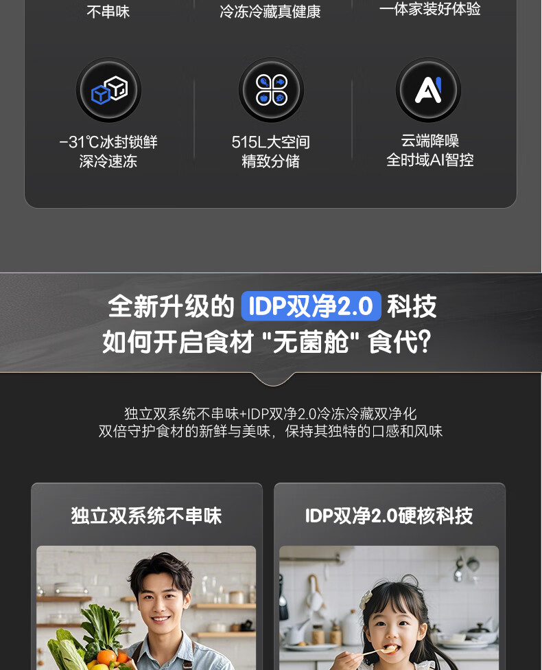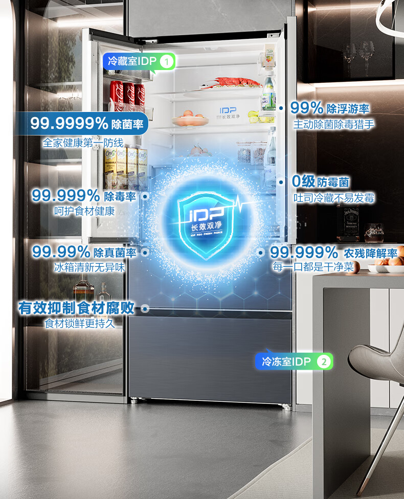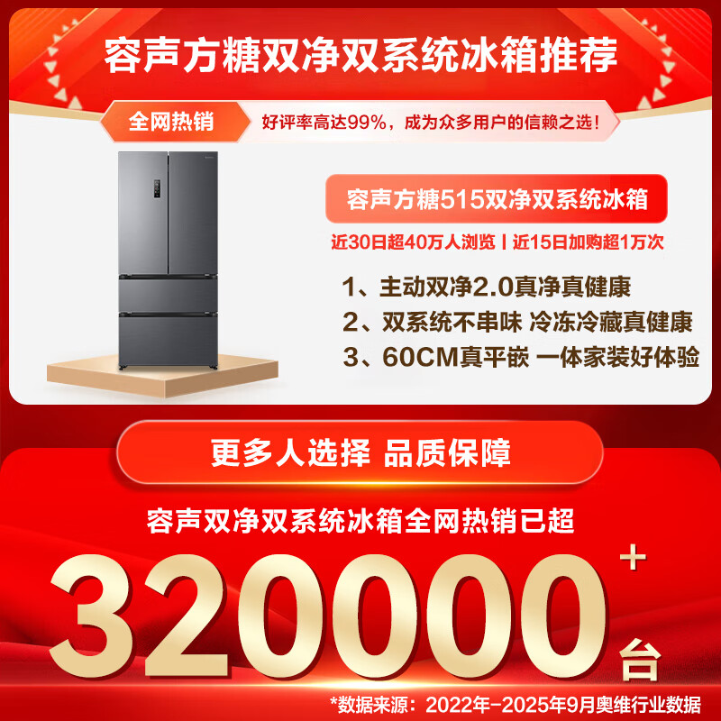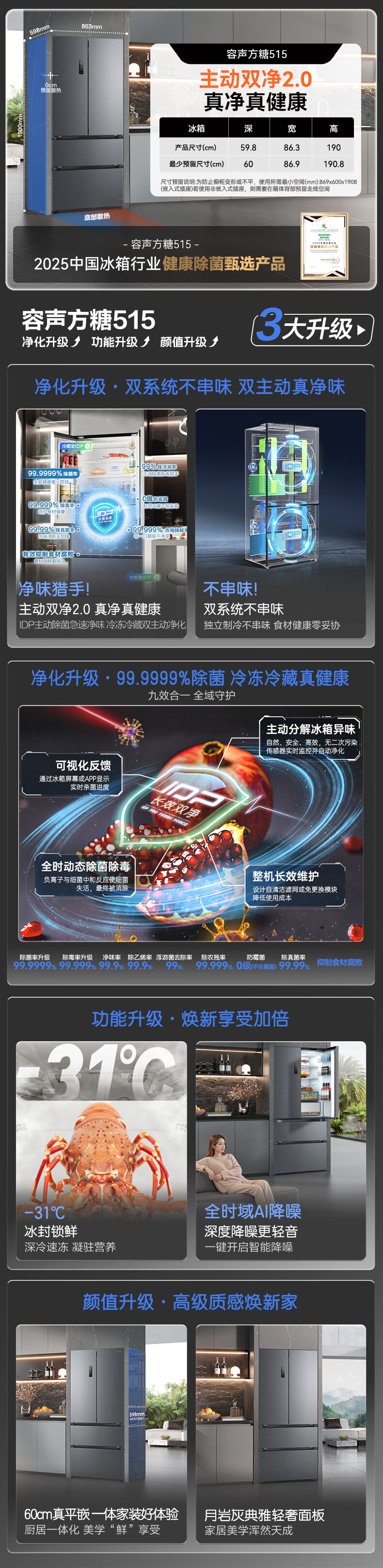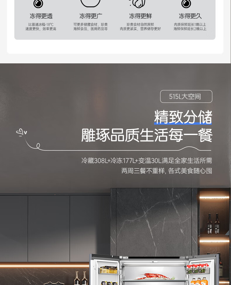 容声方糖515L法式多门冰箱双系统循环超薄零嵌入式一级能效风冷无霜四开门灰BCD-515P60FZMAD国家补贴