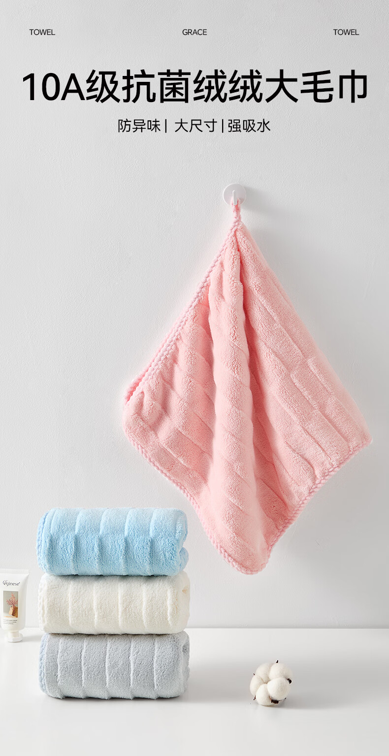 洁丽雅10A抗菌毛巾2条加大强力吸水亲肤透气速干柔软男女不易掉毛洗脸巾