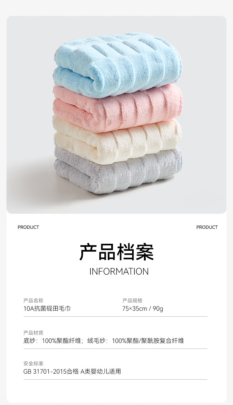 洁丽雅毛巾7A抗菌90克独立装新疆纯棉男女柔软不易掉毛洗脸洗澡加厚面巾