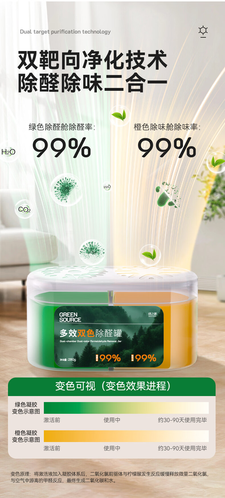 绿之源多效双色除醛罐 除味除甲醛果冻除醛魔盒新房甲醛清除剂真除醛 3盒丨多效双色除醛罐丨净化 280g 1盒