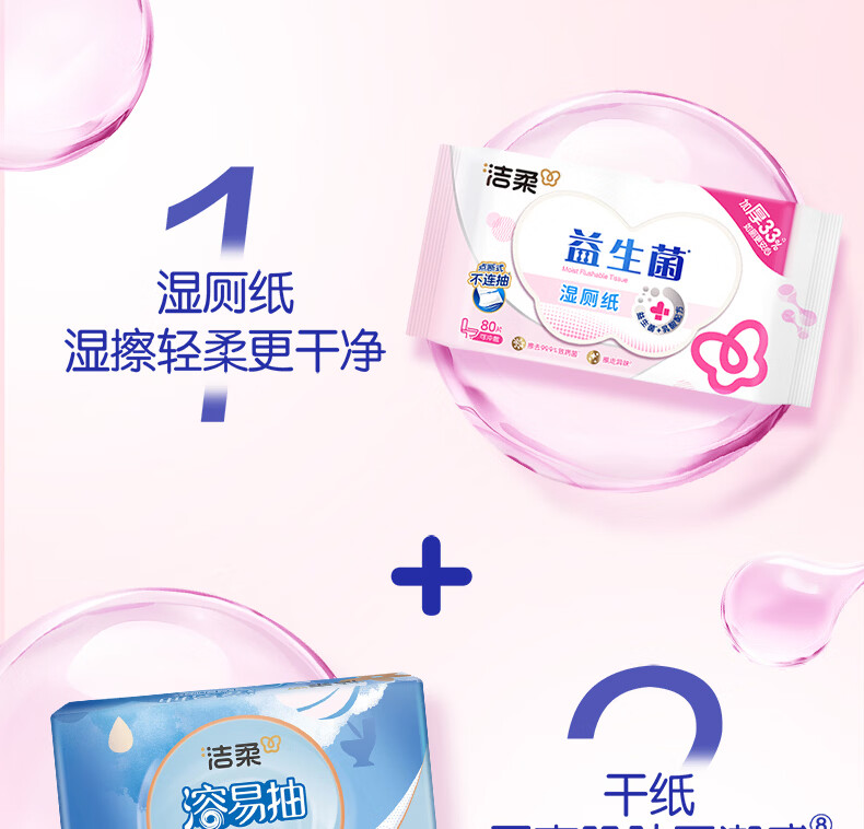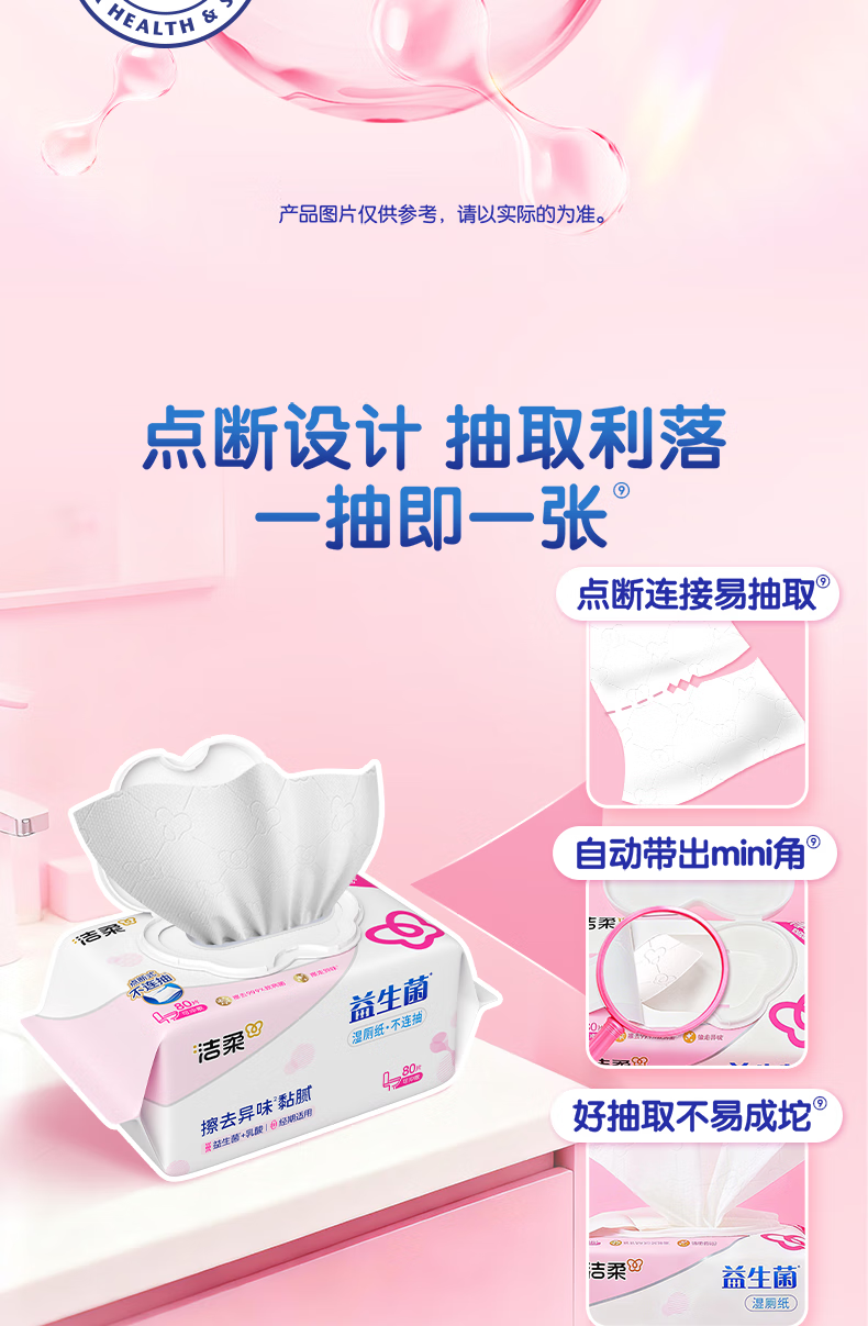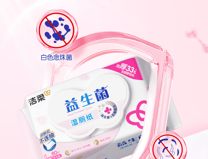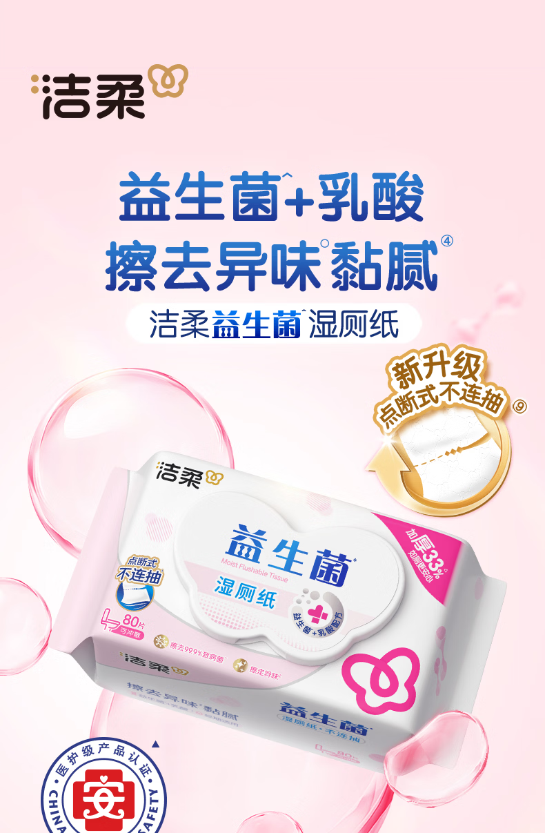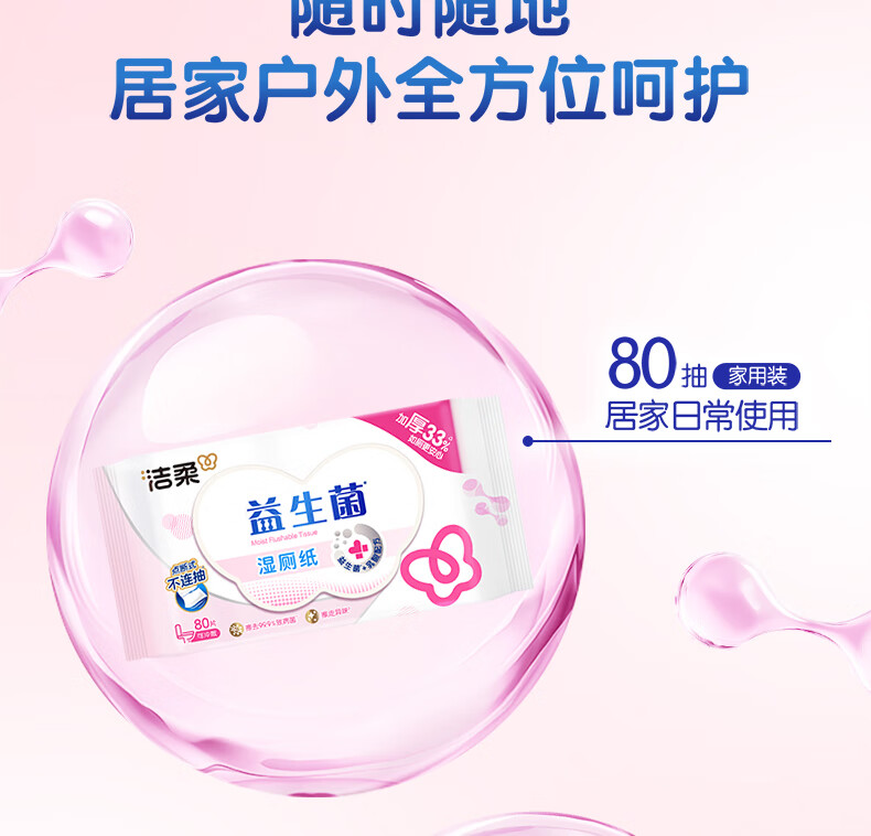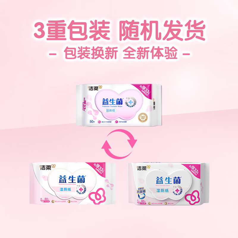 洁柔湿厕纸益生菌80抽*4包 洁厕湿厕纸纸巾乳酸菌厕纸湿巾可冲入马桶