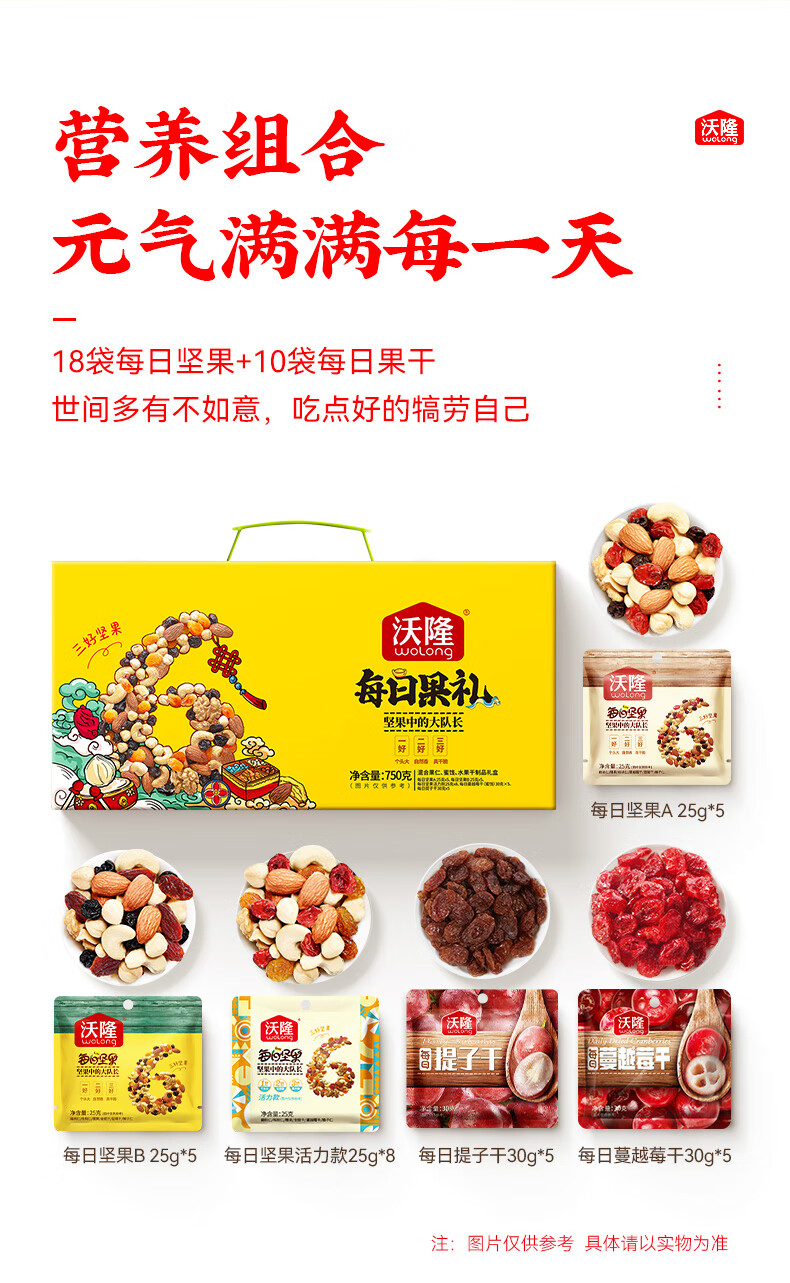 沃隆 每日坚果礼盒 坚果炒货休闲食品混合坚果干果果干送礼零食大礼包 620g/盒每日果礼升级版
