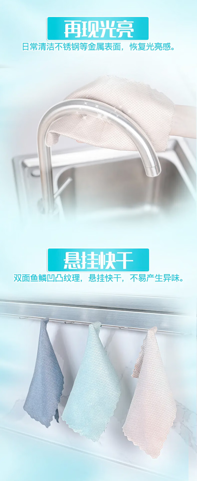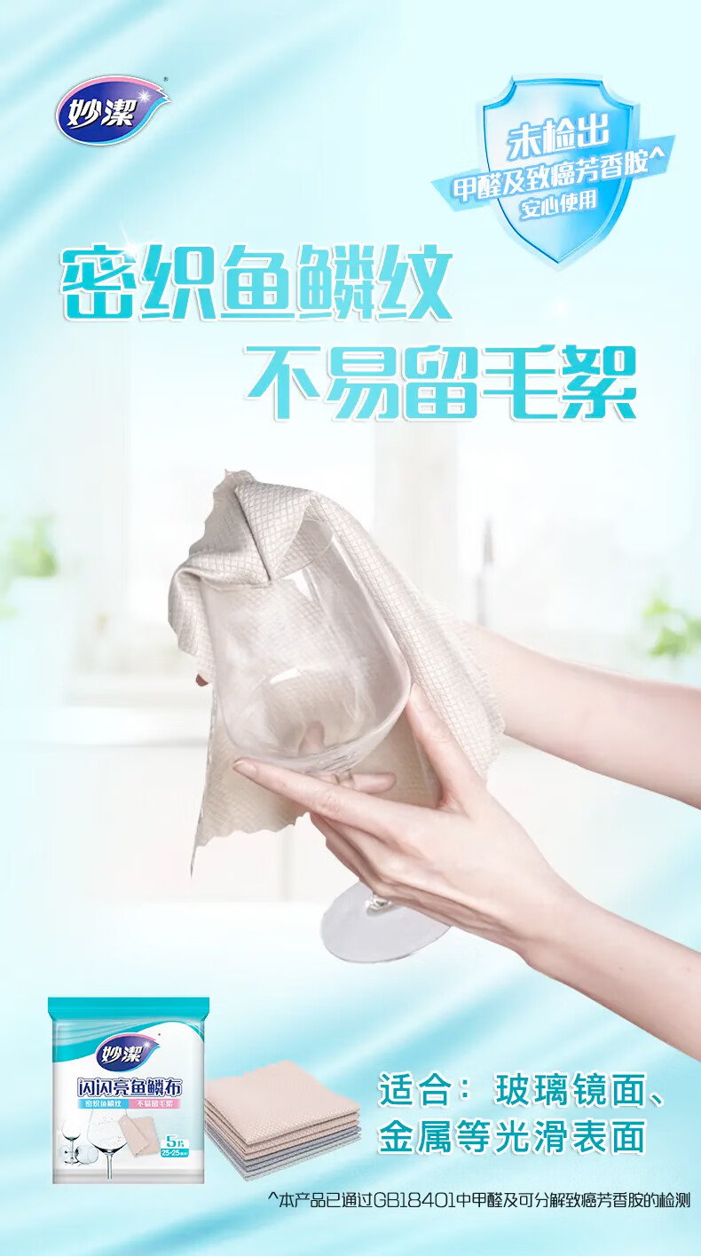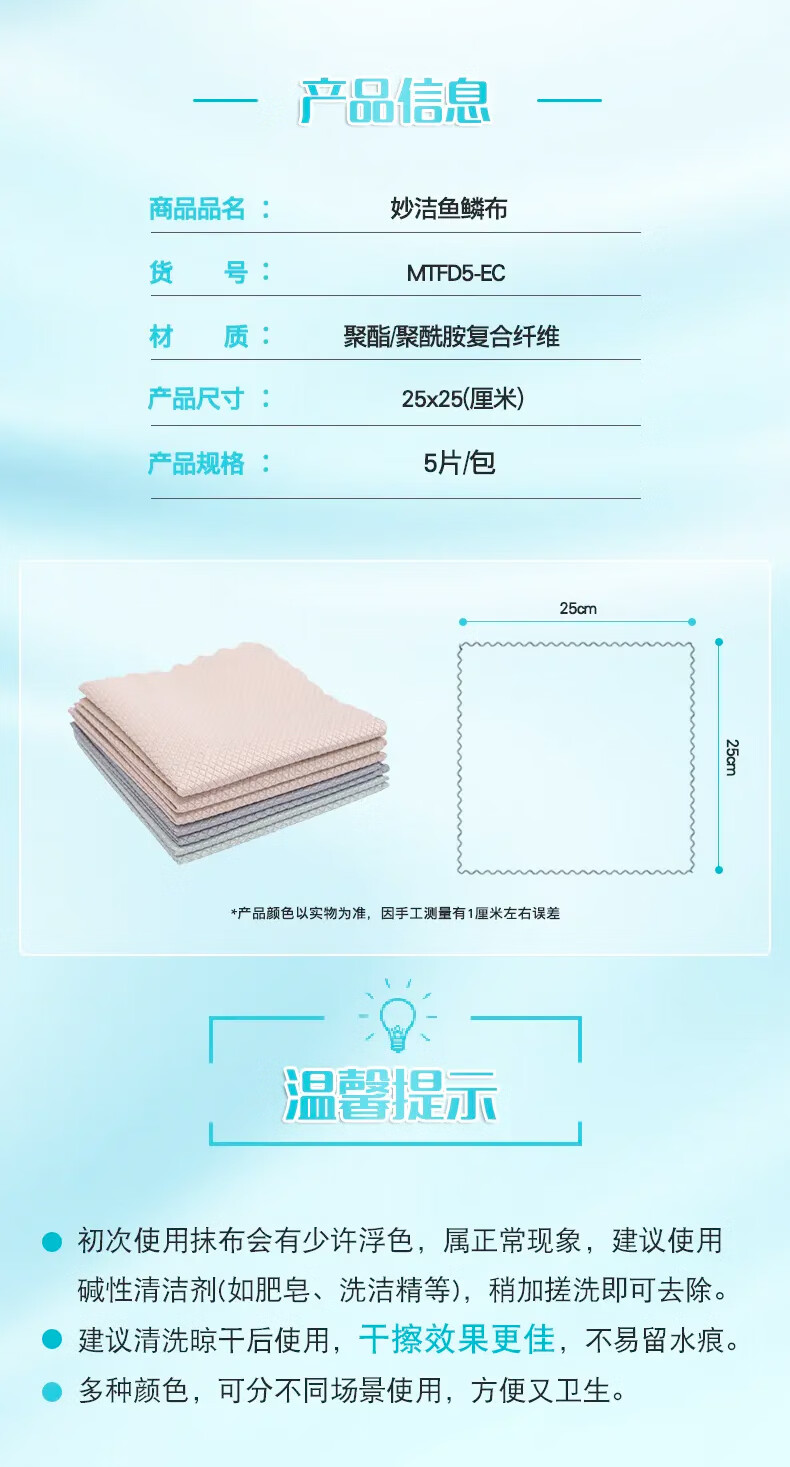 妙洁闪闪亮鱼鳞抹布 25*25cm5片装 洗碗厨房擦拭布 玻璃等光滑表面