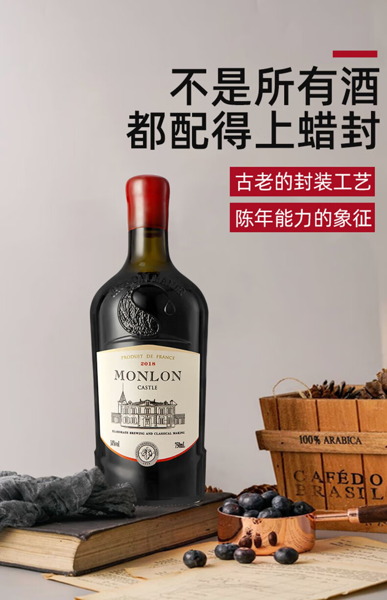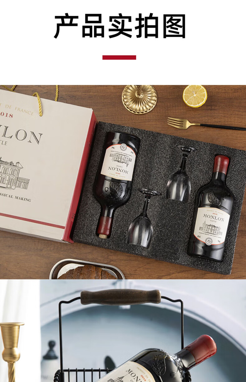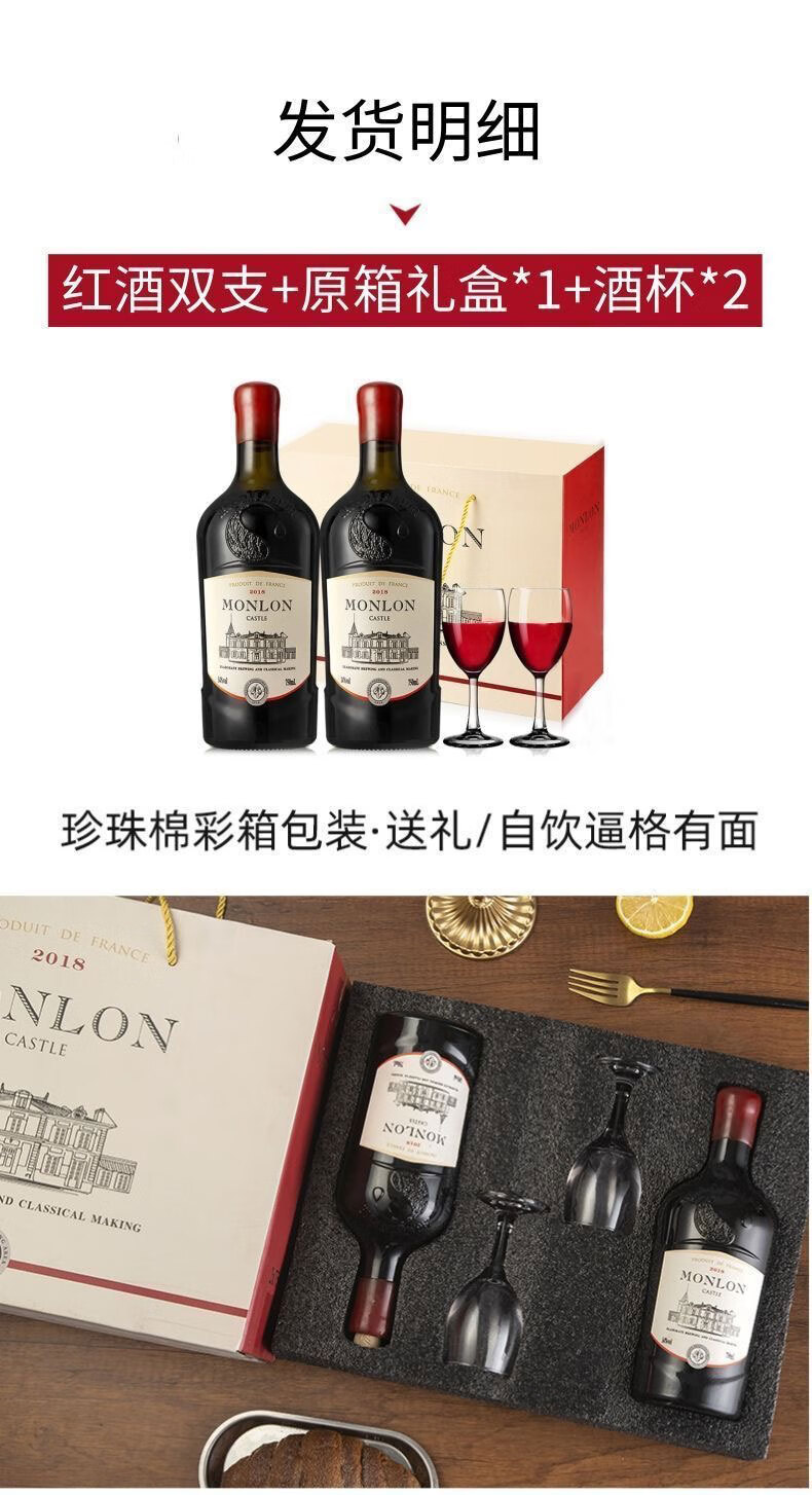 歌雅伦酒庄 古堡法国原酒进口干红葡萄酒 14度蜡封干型红酒 年货送礼热红酒 750ml*2礼盒装