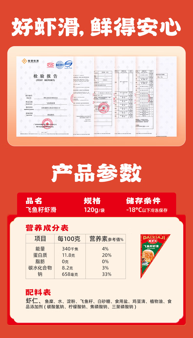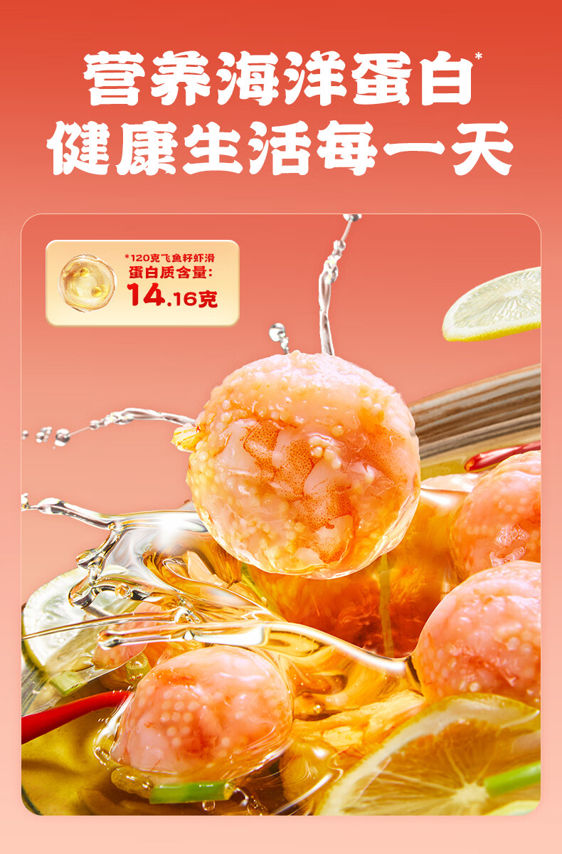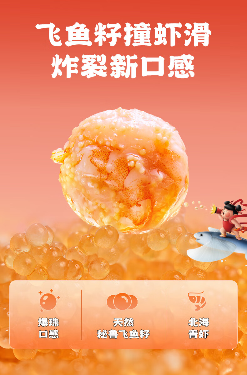 逮虾记飞鱼籽虾滑新鲜火锅麻辣烫手打速食半成品食材含虾仁 6袋【推荐】(送鱼排1袋)