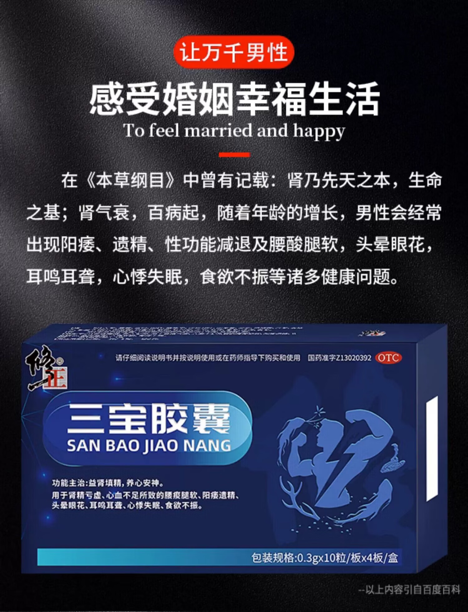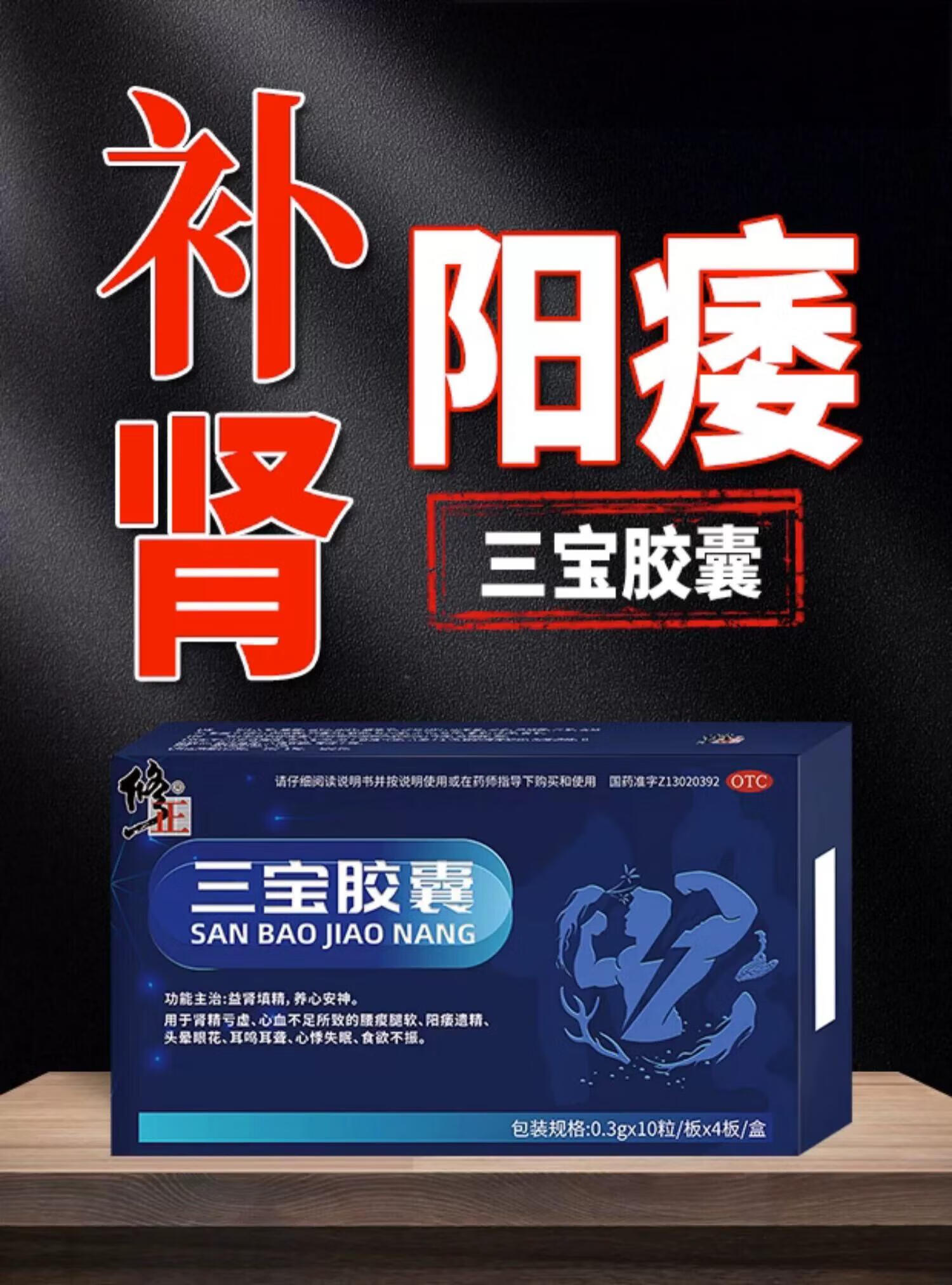 [修正]三宝胶囊 0.3g*40粒 8盒装 益肾填精养心安神肾虚阳痿遗精补肾固精男科用药早泄用手过度六味地黄