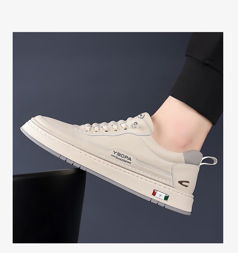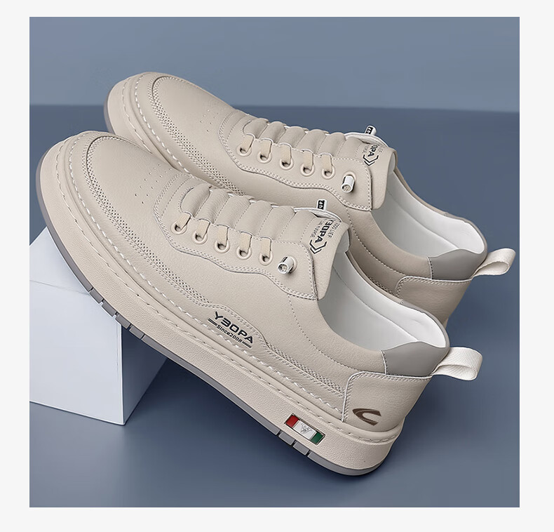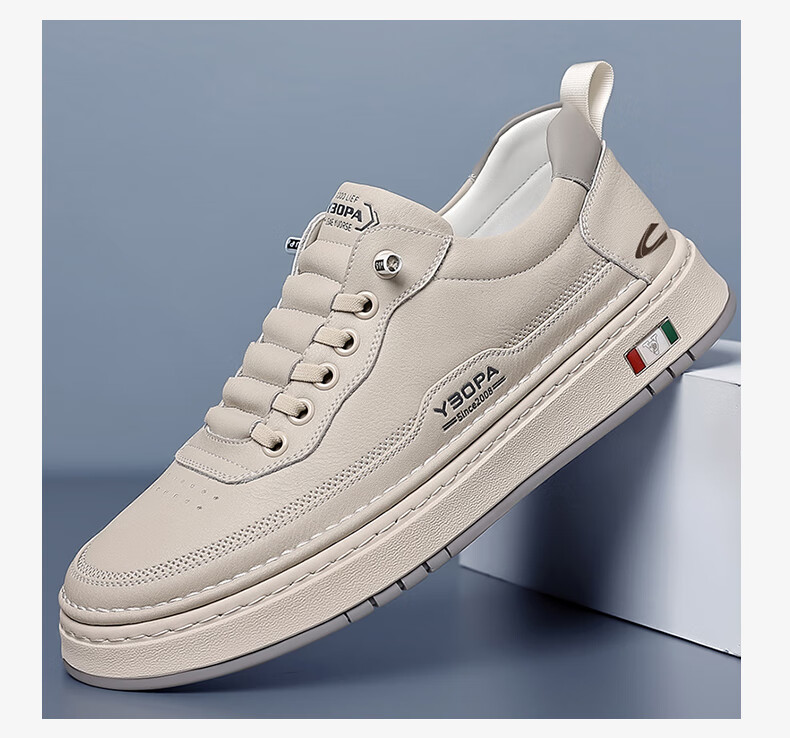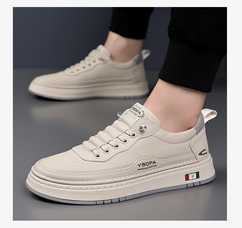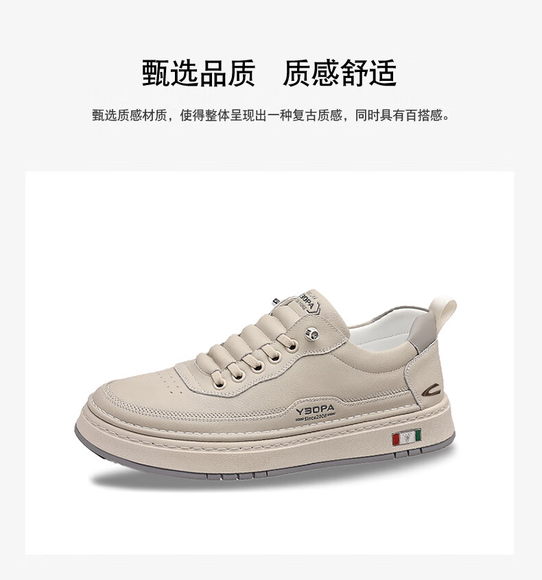 骆驼动感男鞋夏季透气潮流百搭低帮休闲白色板鞋防水防滑一脚蹬运动小白鞋 米色 44