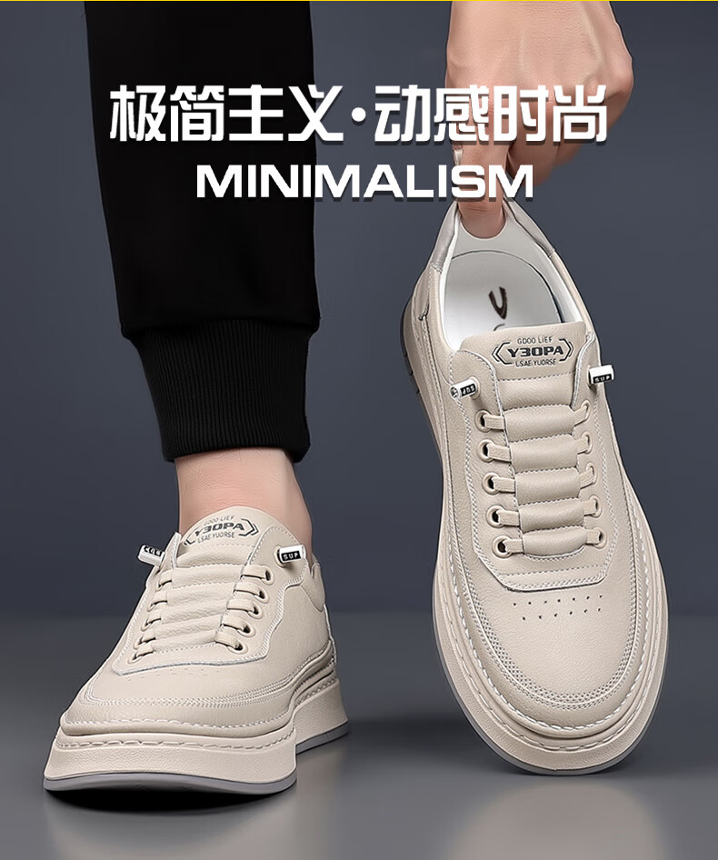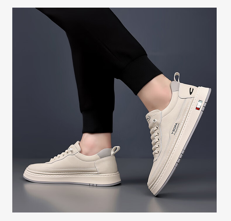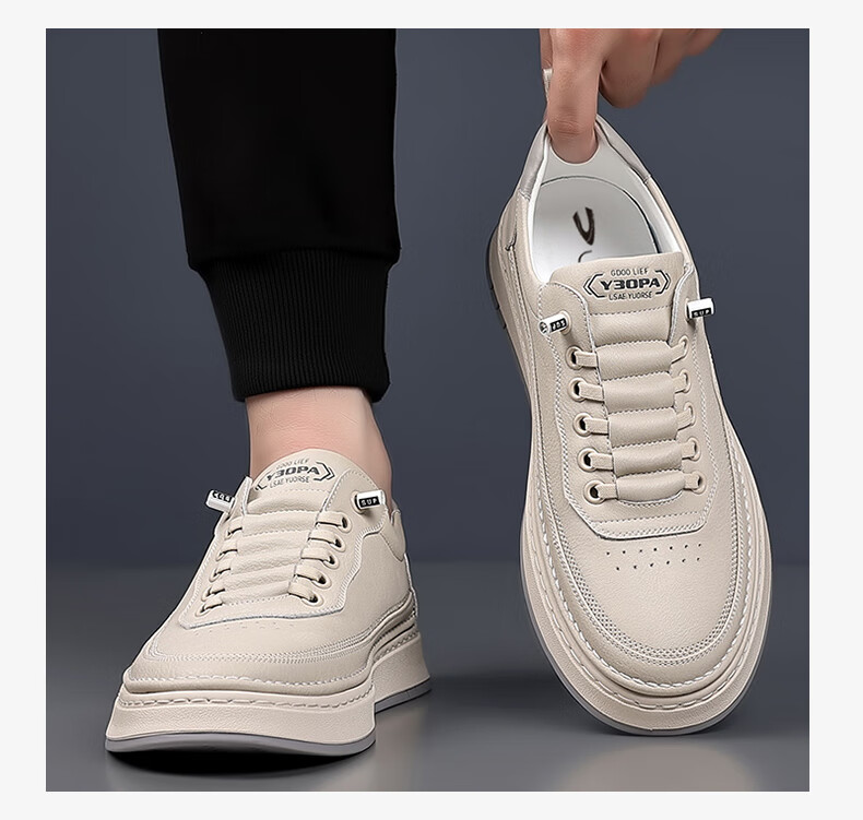 贵之步男鞋新款秋冬季牛皮商务皮鞋软底防滑增高缓震男款舒适厚底休闲鞋 黑色 (G201) 41 (运动鞋码)