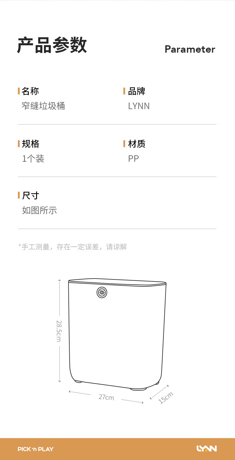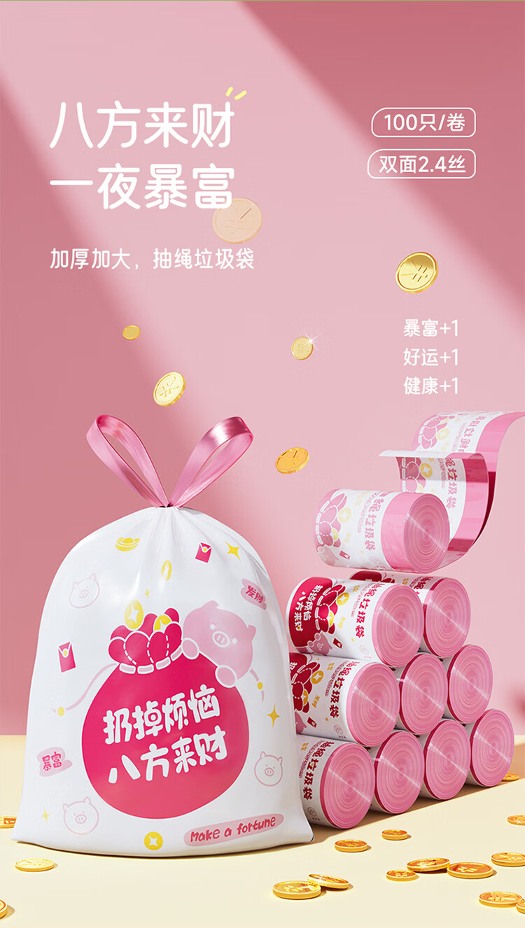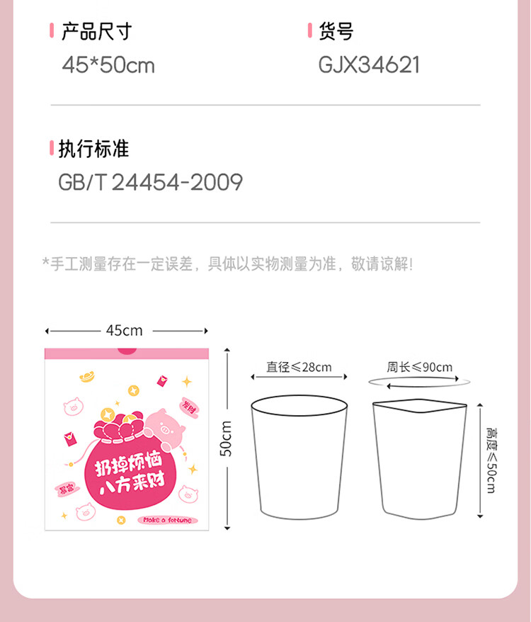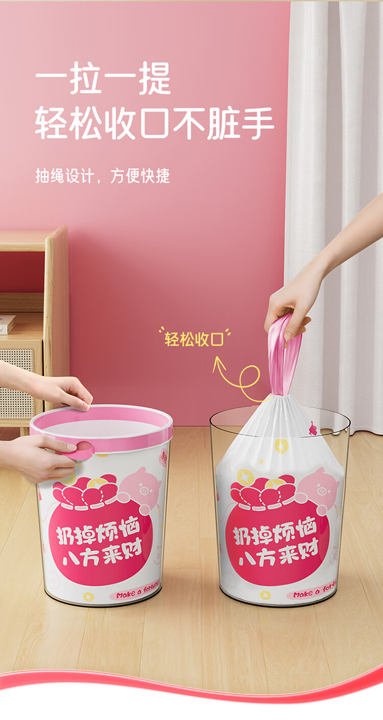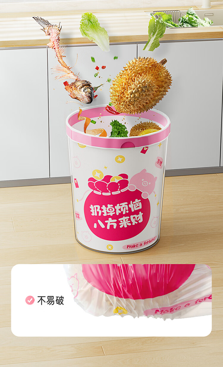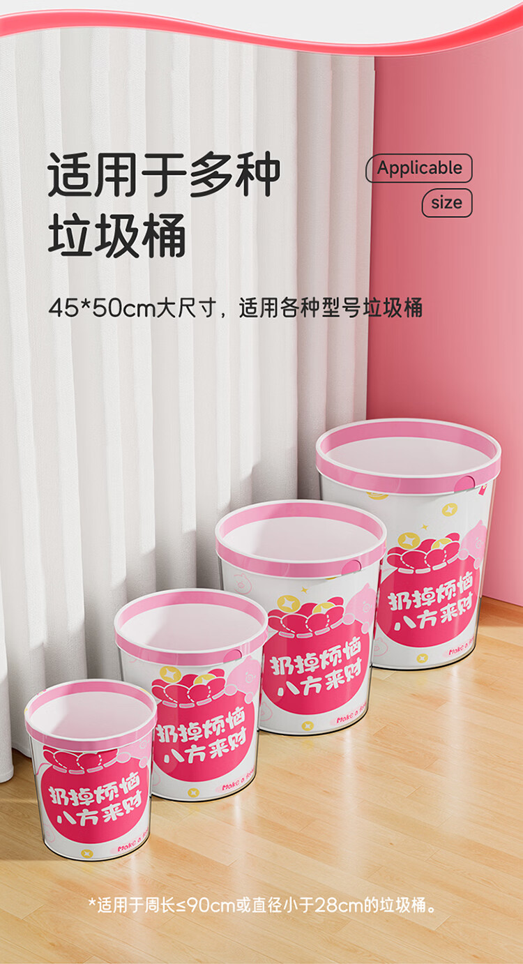 LYNN夹缝垃圾桶大号 无盖式卫生间客厅厨房办公室大容量免压圈加厚 来财【免撕*双面2.4丝】垃圾袋45*50cm100只