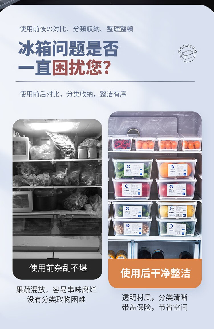 家の物语(KATEI STORY)日本冰箱抗菌保鲜盒冷藏冷冻肉类食品级专用双开门厨房冰箱收纳盒 抗菌款【12件套双开门冰箱推荐】