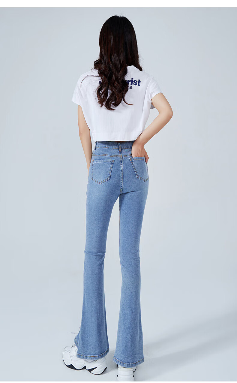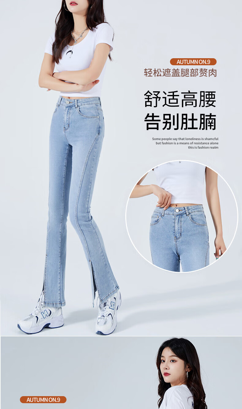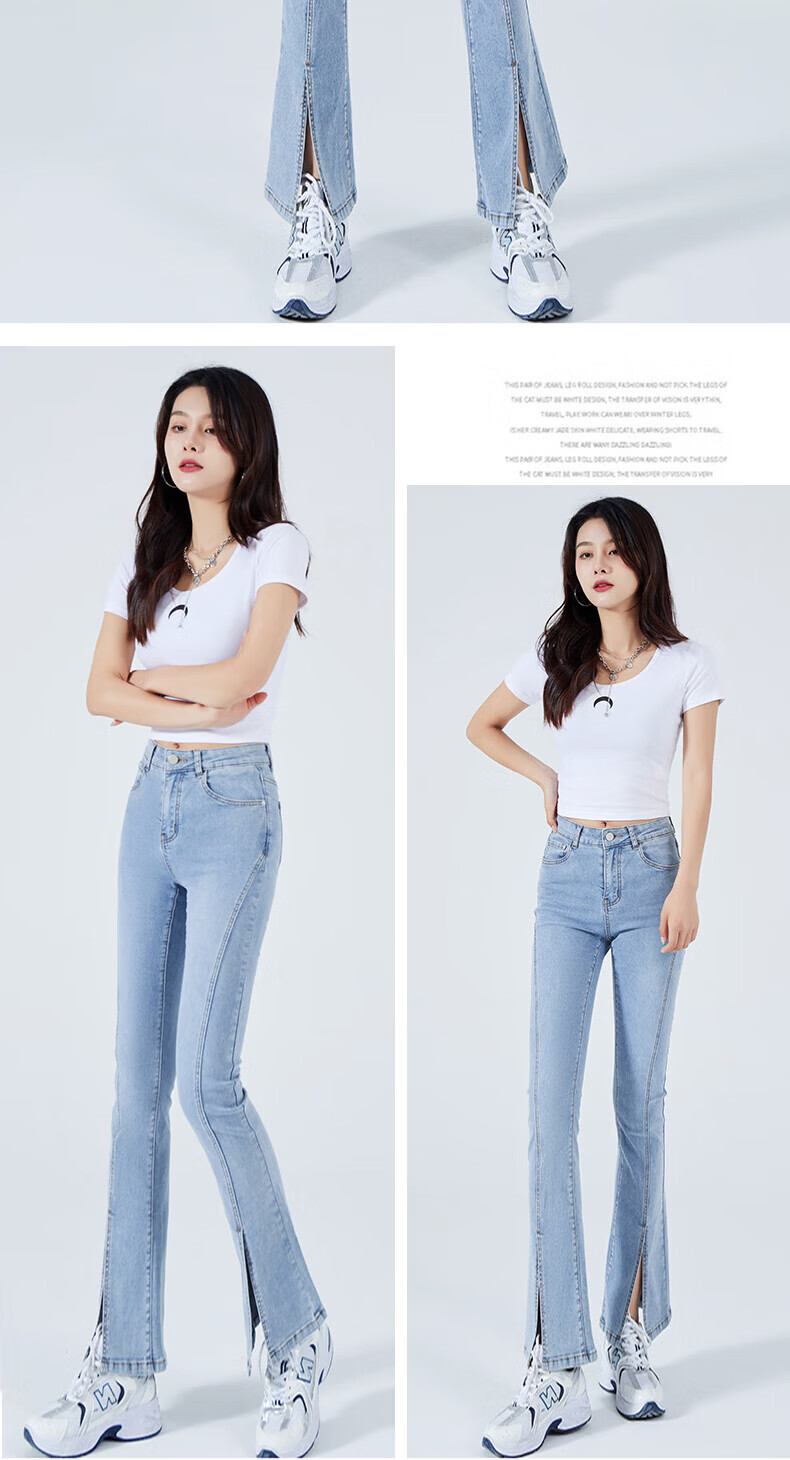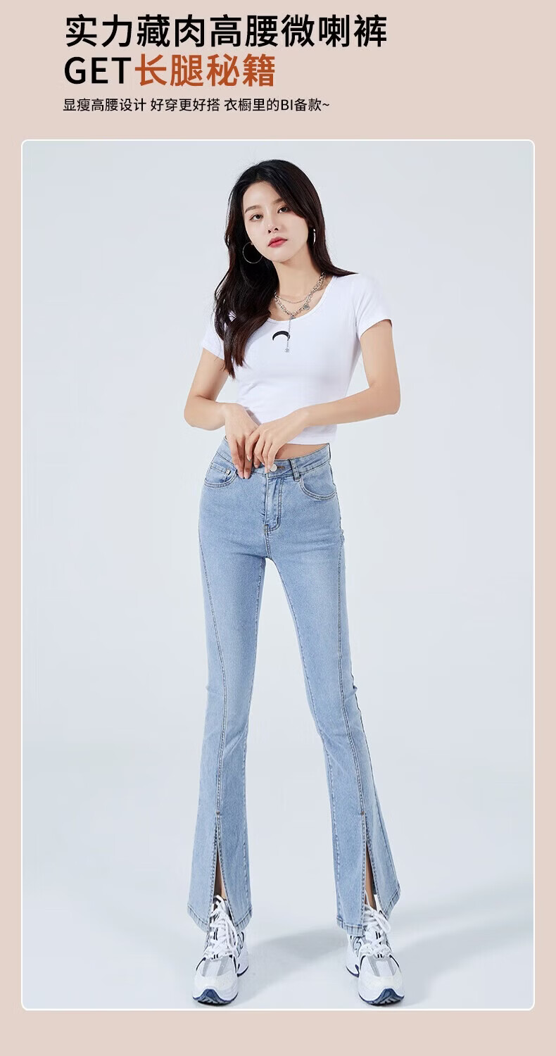 浪莎2026春夏季新款开叉微喇牛仔裤女高腰直筒修身显瘦小个子喇叭裤子 浅蓝色 29 【适合116-125斤】