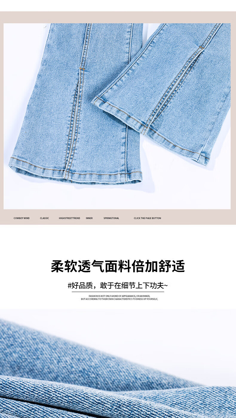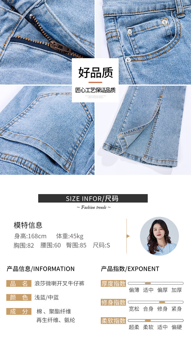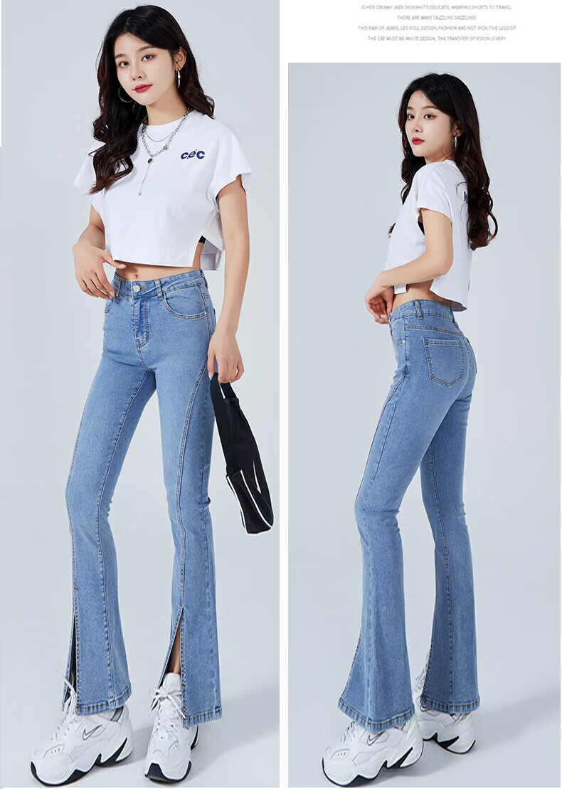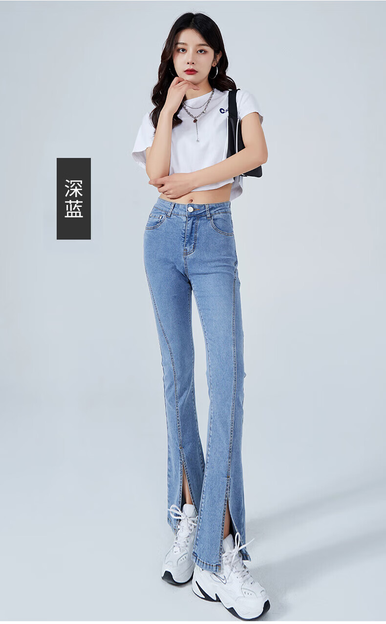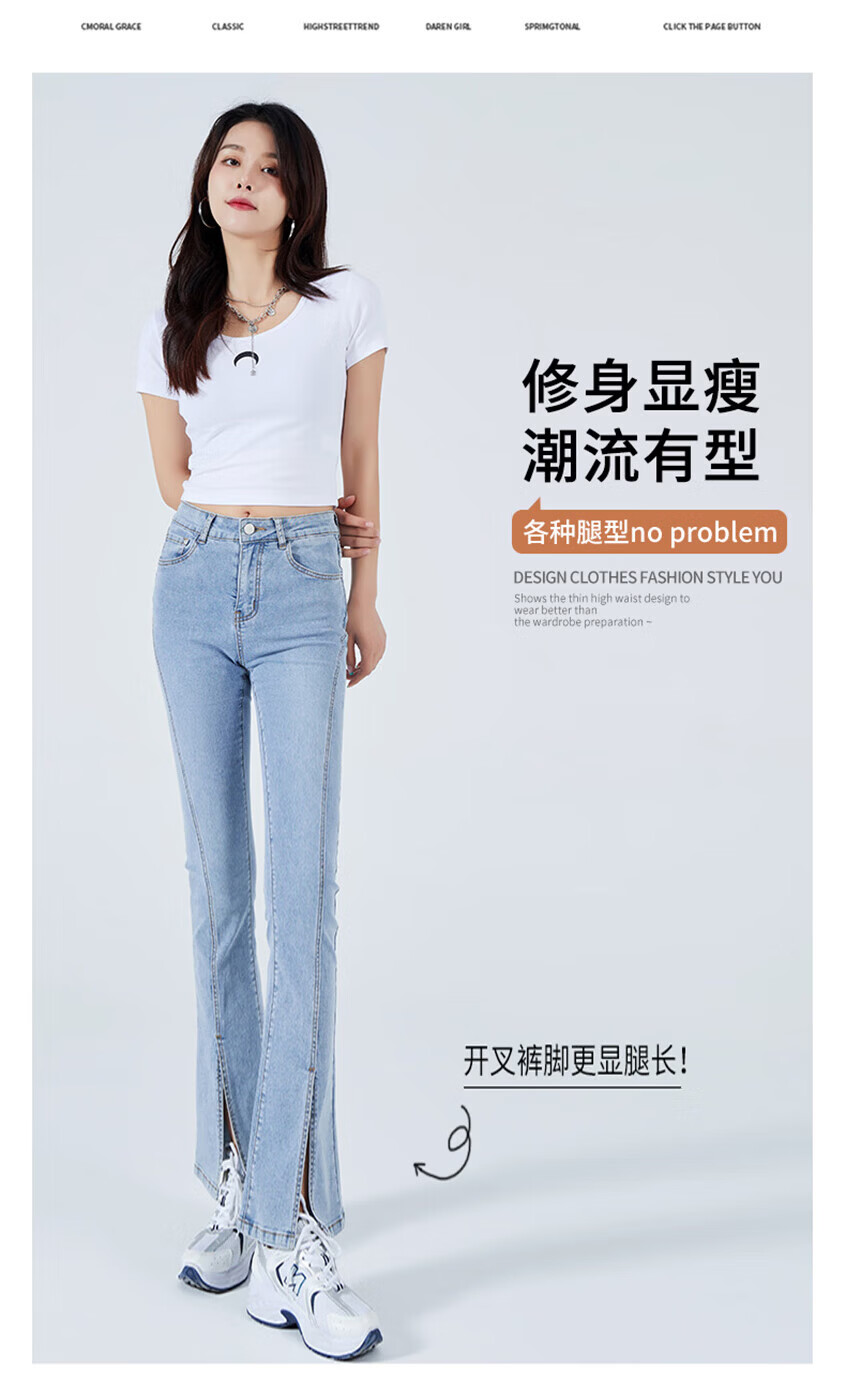 浪莎2026春夏季新款开叉微喇牛仔裤女高腰直筒修身显瘦小个子喇叭裤子 浅蓝色 29 【适合116-125斤】