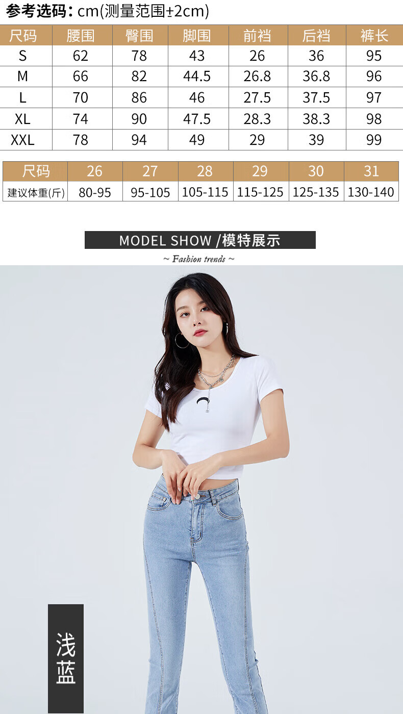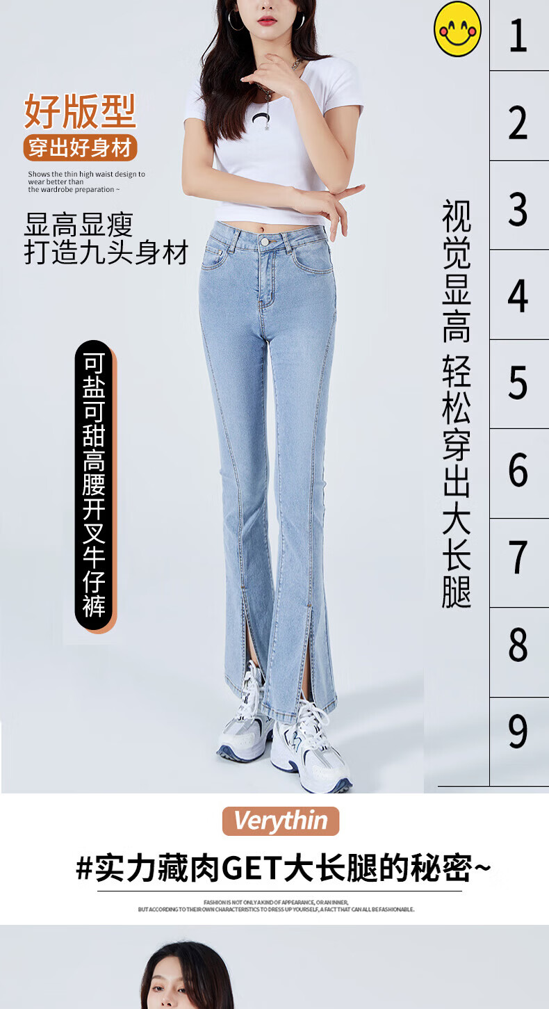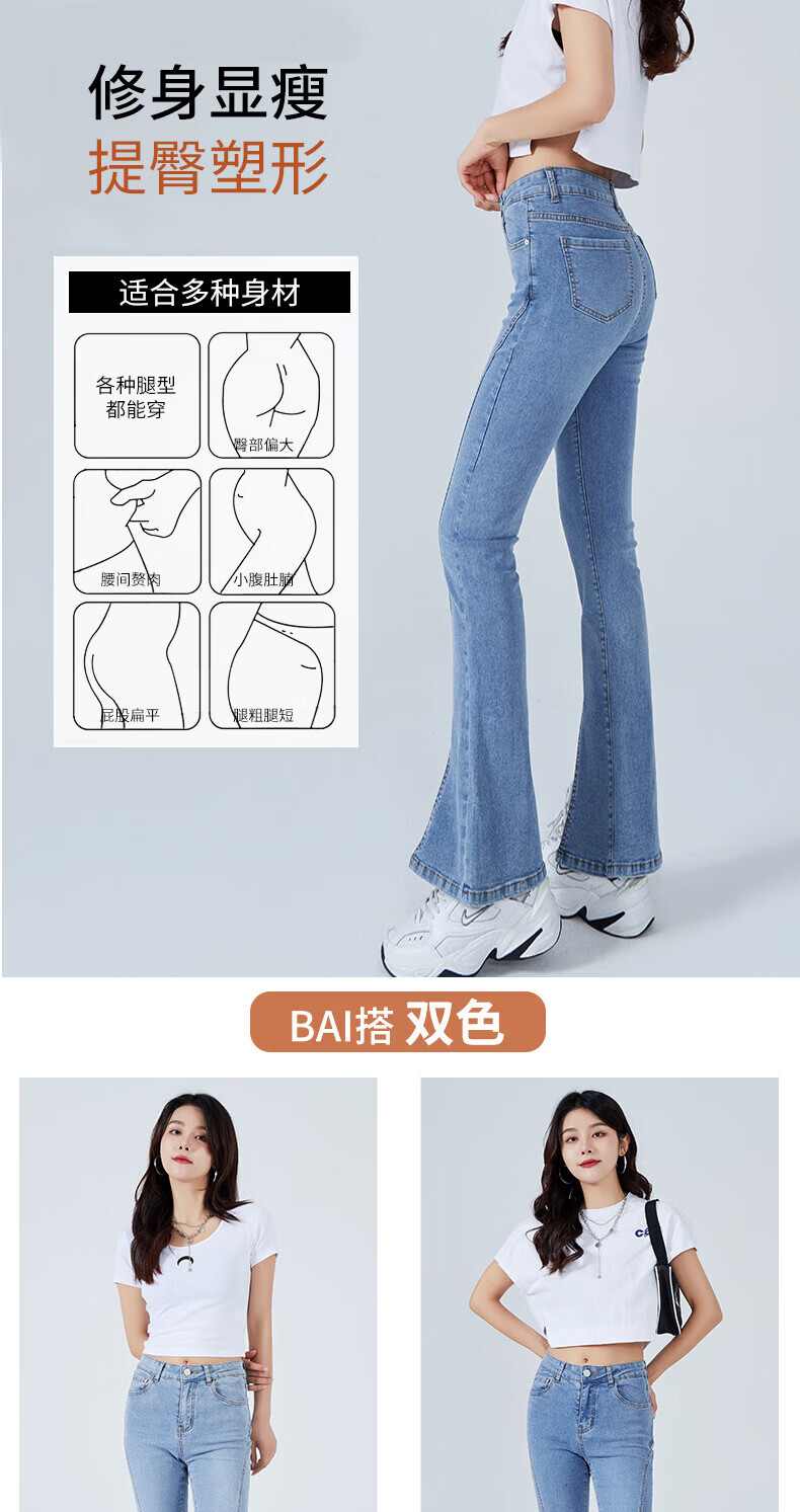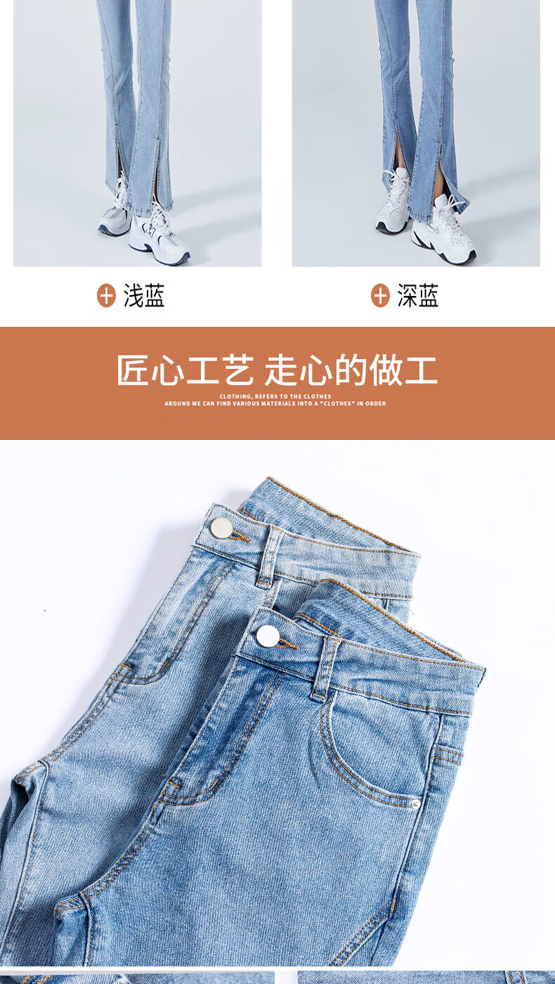 浪莎2026春夏季新款开叉微喇牛仔裤女高腰直筒修身显瘦小个子喇叭裤子 浅蓝色 29 【适合116-125斤】