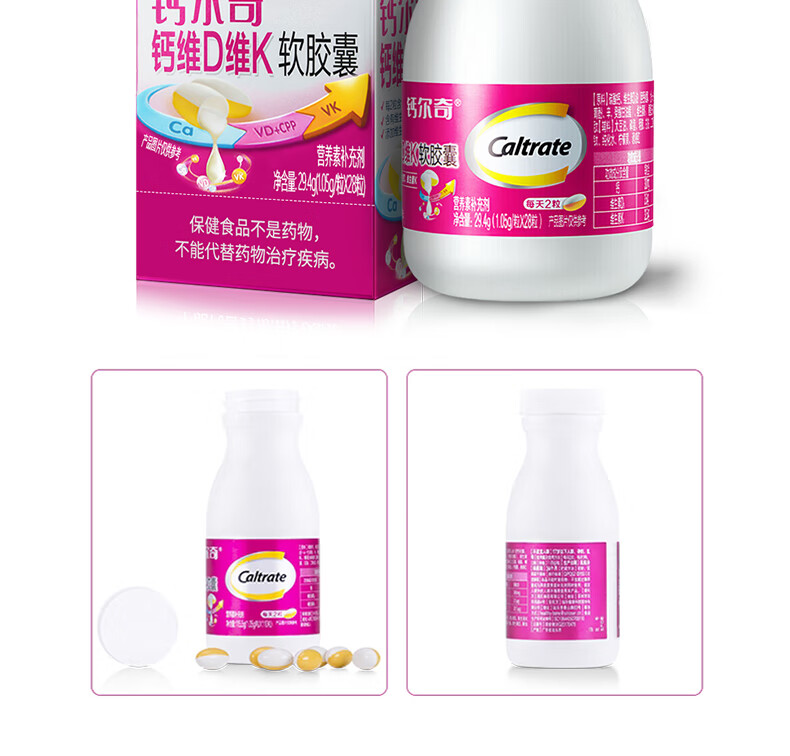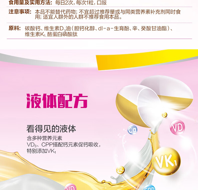钙尔奇液体钙 补钙维生素D钙片 维生素软胶囊成人中老年补钙钙片 VDVK28*3盒