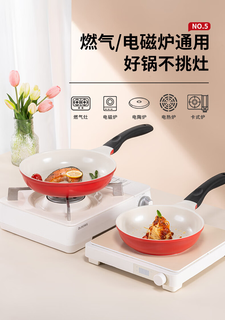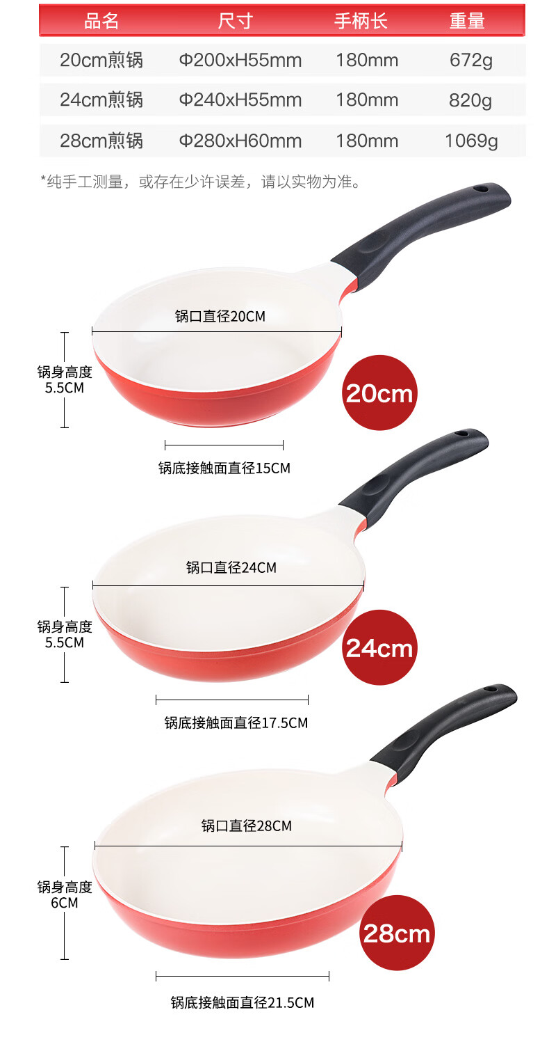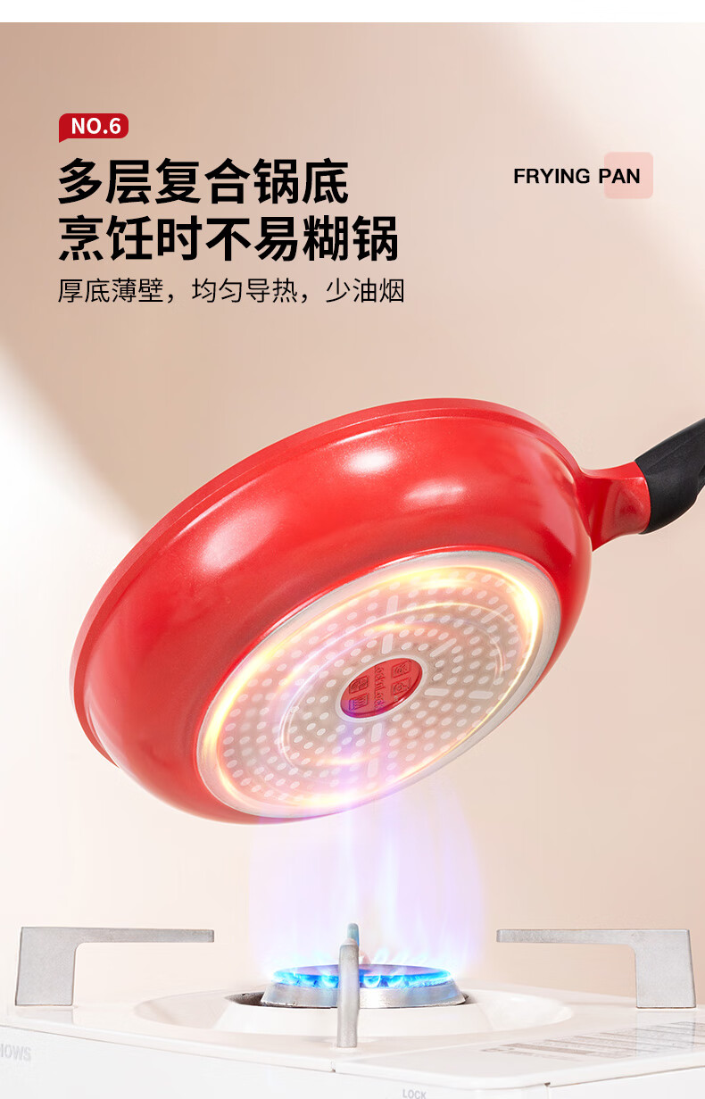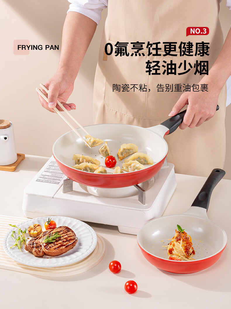 乐扣乐扣(LOCK&LOCK) 陶瓷不粘平底锅小煎锅无烟早餐锅炫彩煎蛋煎饼电磁炉可用 红色 20cm【升级款】