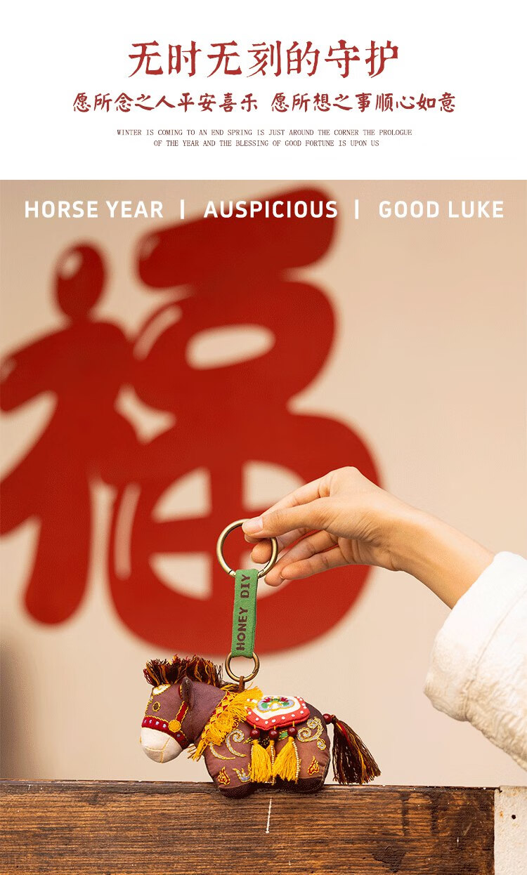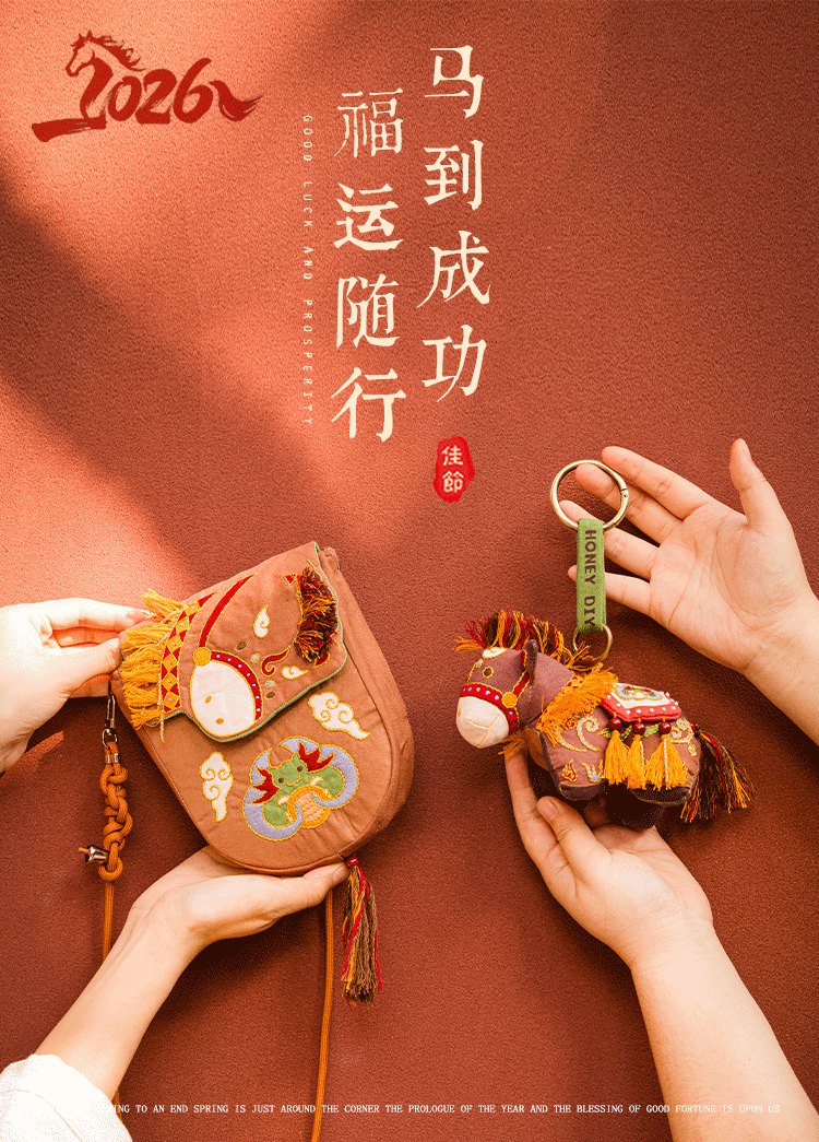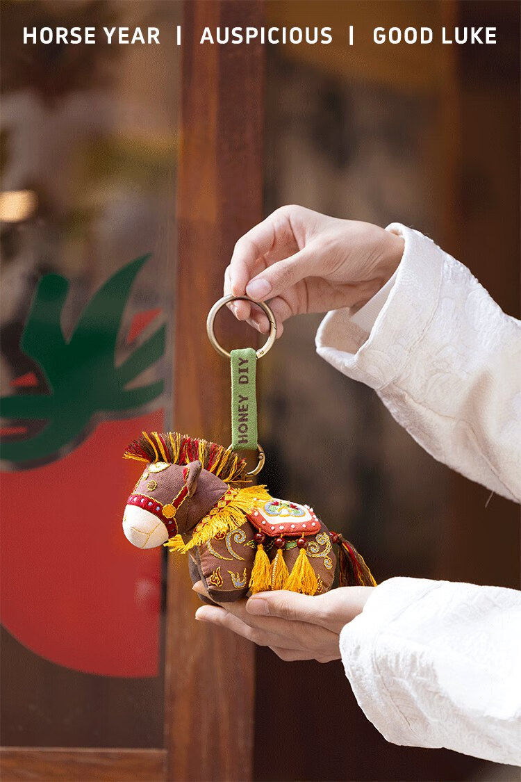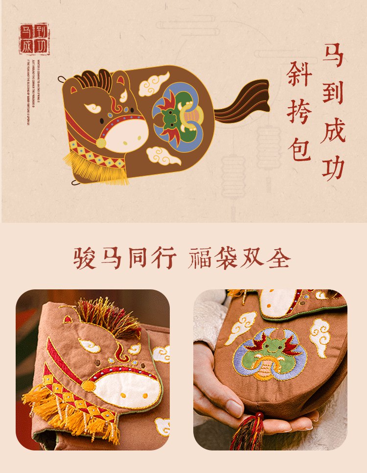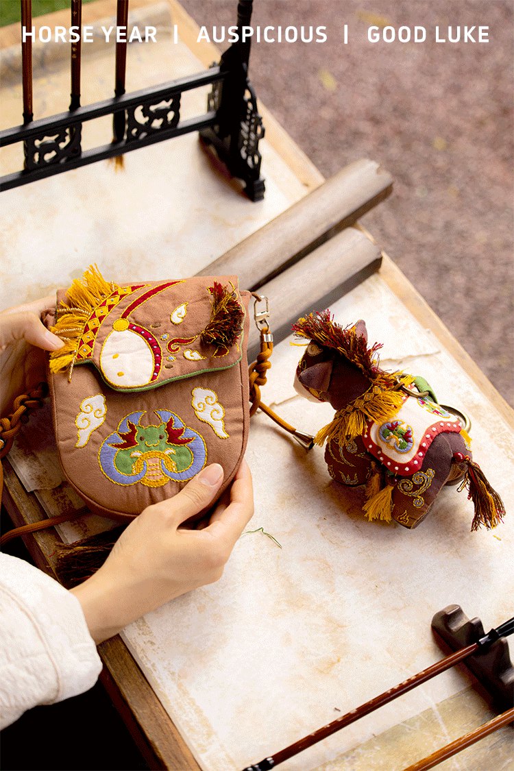 哈尼手工(HoneyDIY)马到成功斜挎包中国风休闲包多用途手机包马年diy刺绣组合包 马上有福吉祥挂件(材料包非成品)