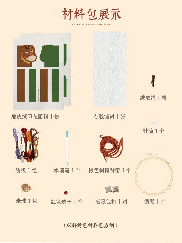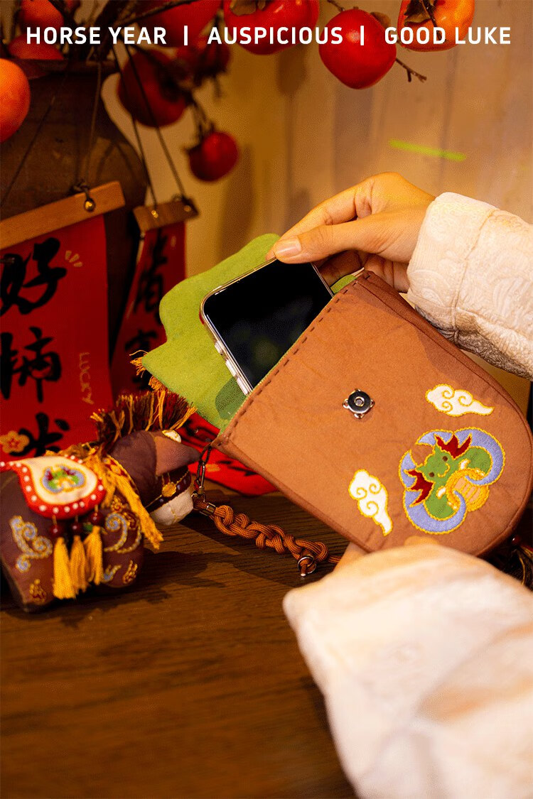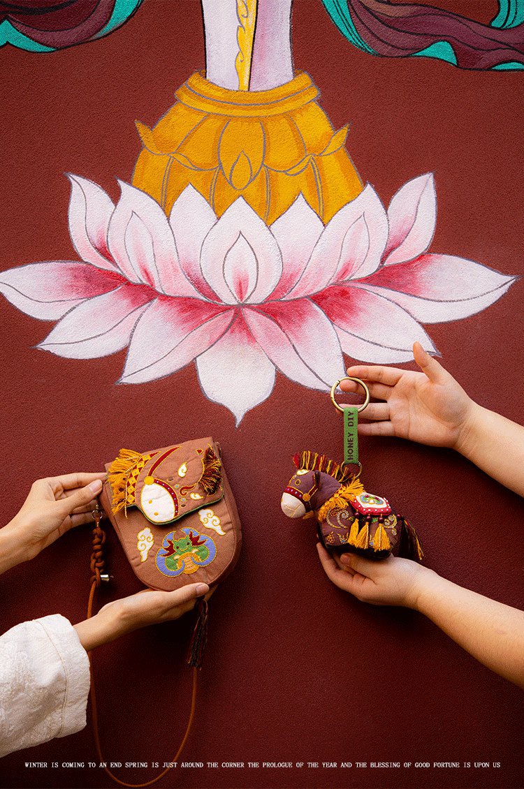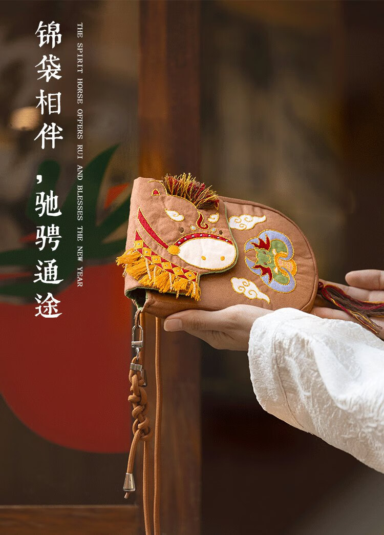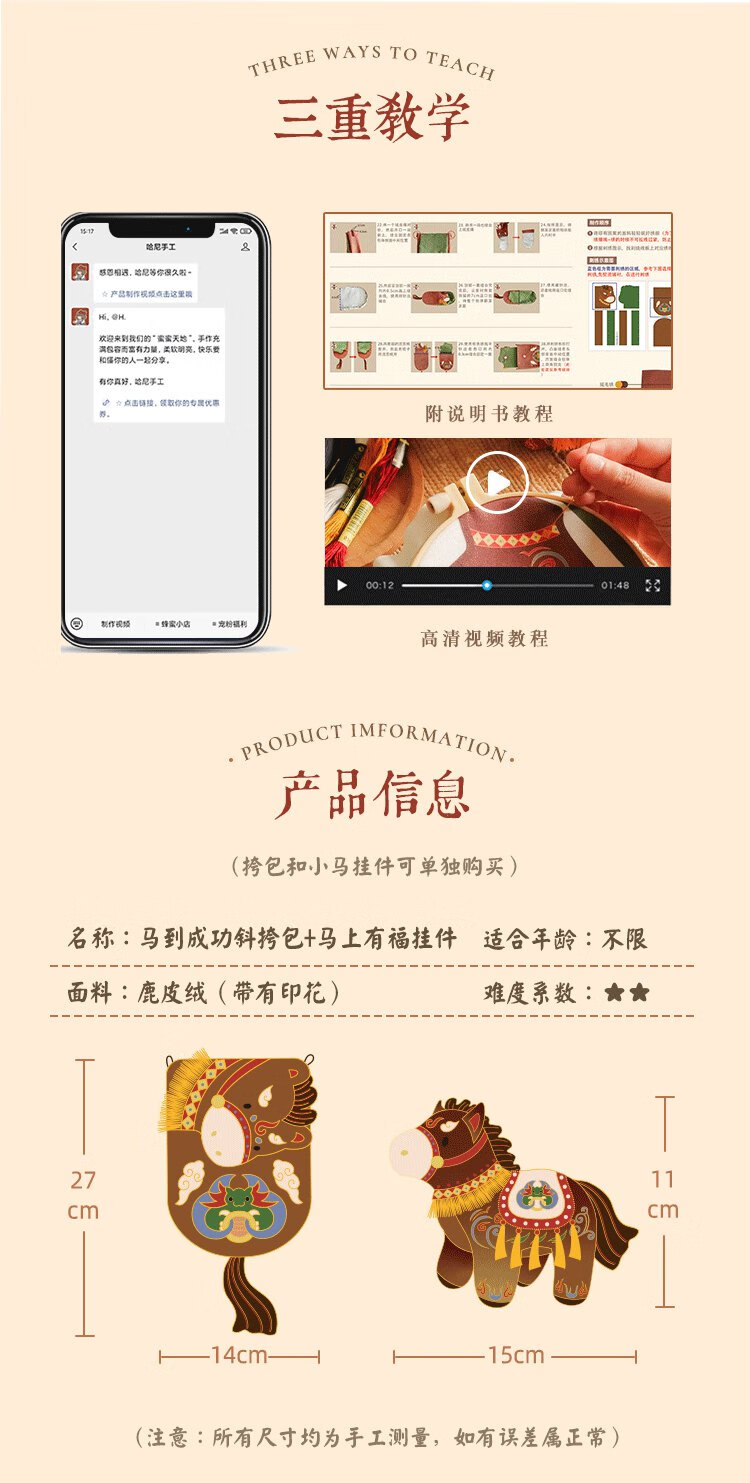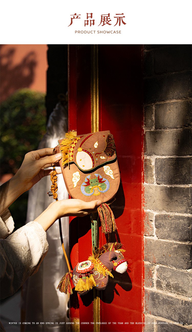 哈尼手工(HoneyDIY)马到成功斜挎包中国风休闲包多用途手机包马年diy刺绣组合包 马上有福吉祥挂件(材料包非成品)