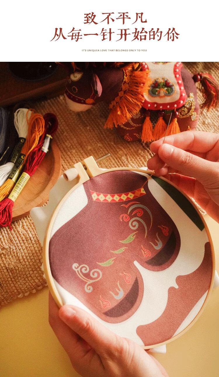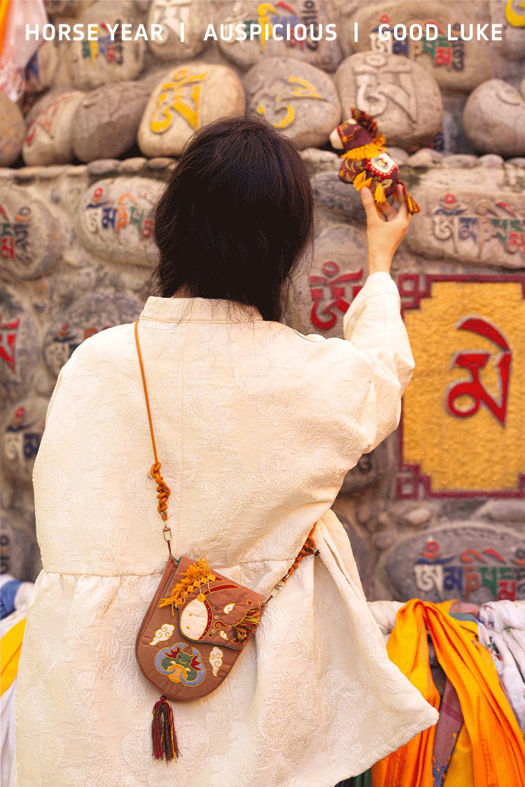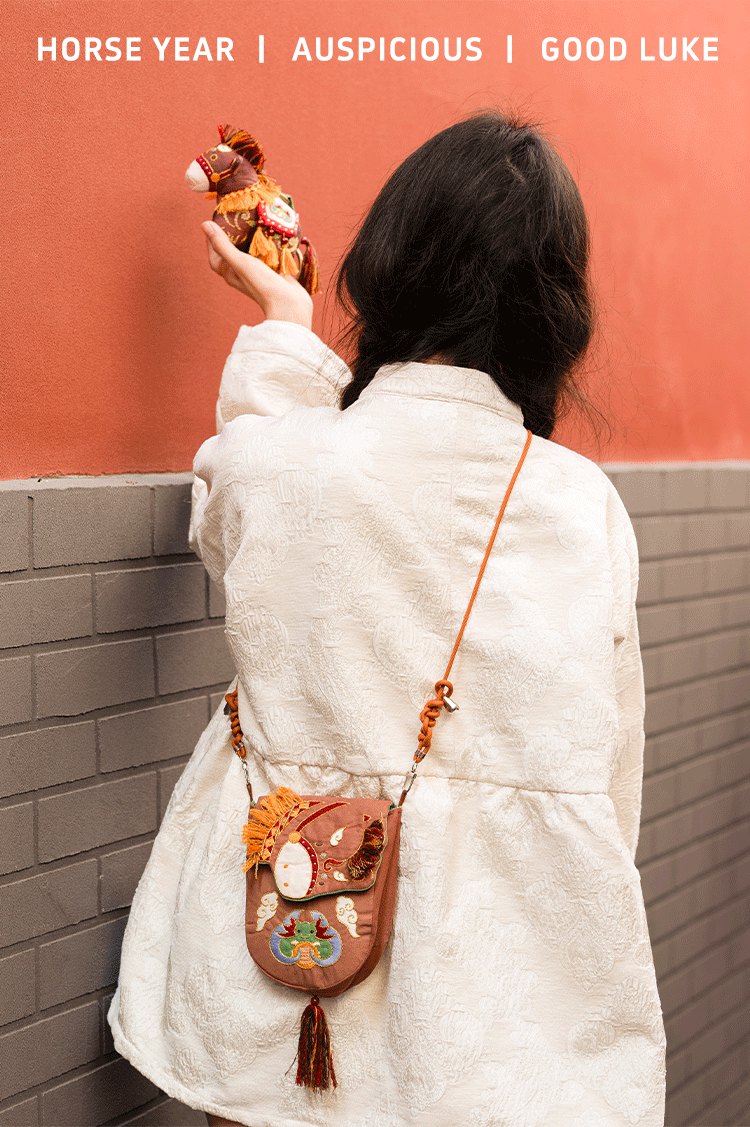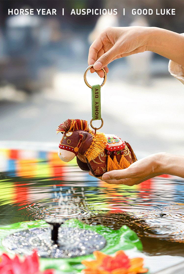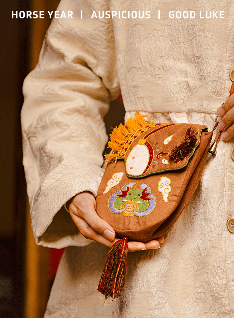 哈尼手工(HoneyDIY)马到成功斜挎包中国风休闲包多用途手机包马年diy刺绣组合包 马上有福吉祥挂件(材料包非成品)