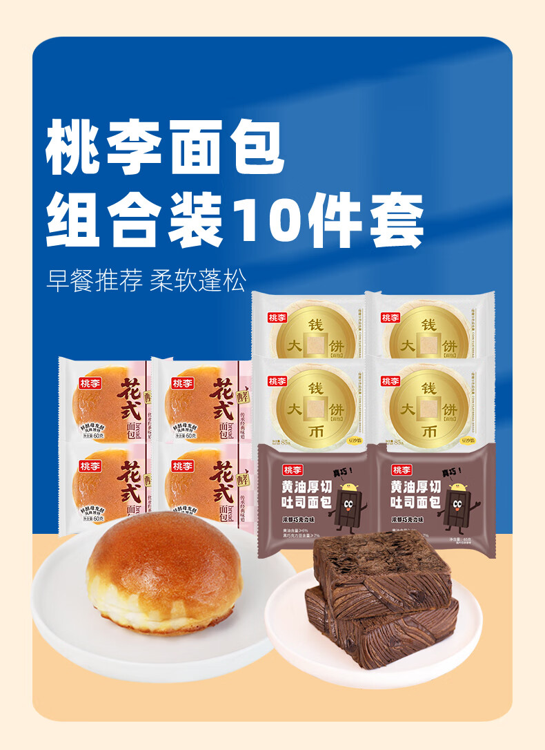 桃李组合面包710g花式黄油厚切吐司夹馅面包营养早餐休闲零食整箱面包 黄油厚切2袋+钱币4袋+花式4袋